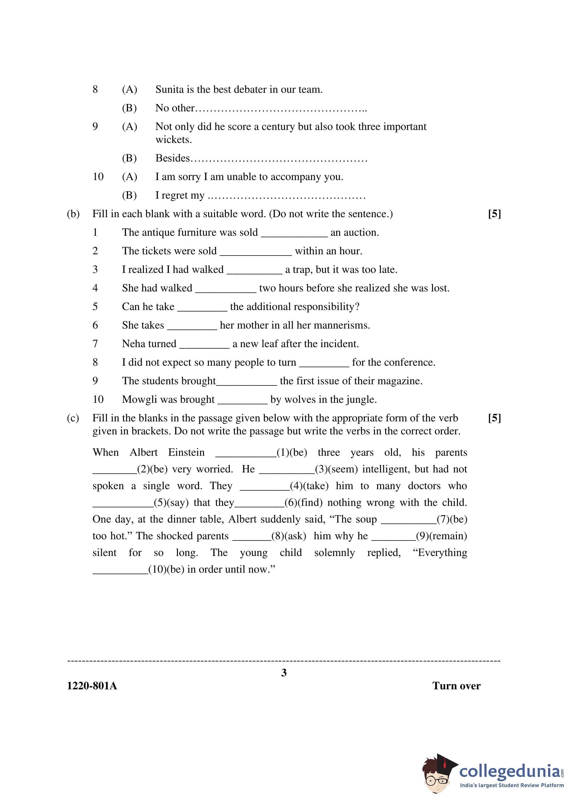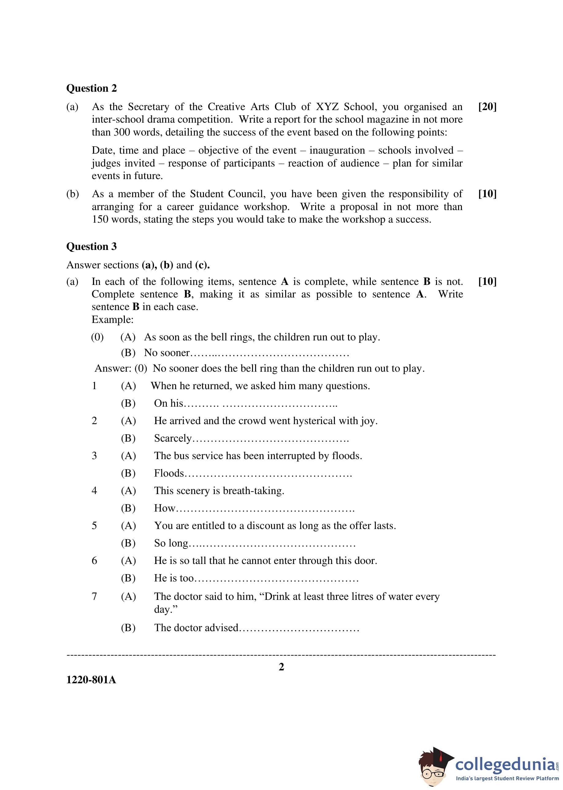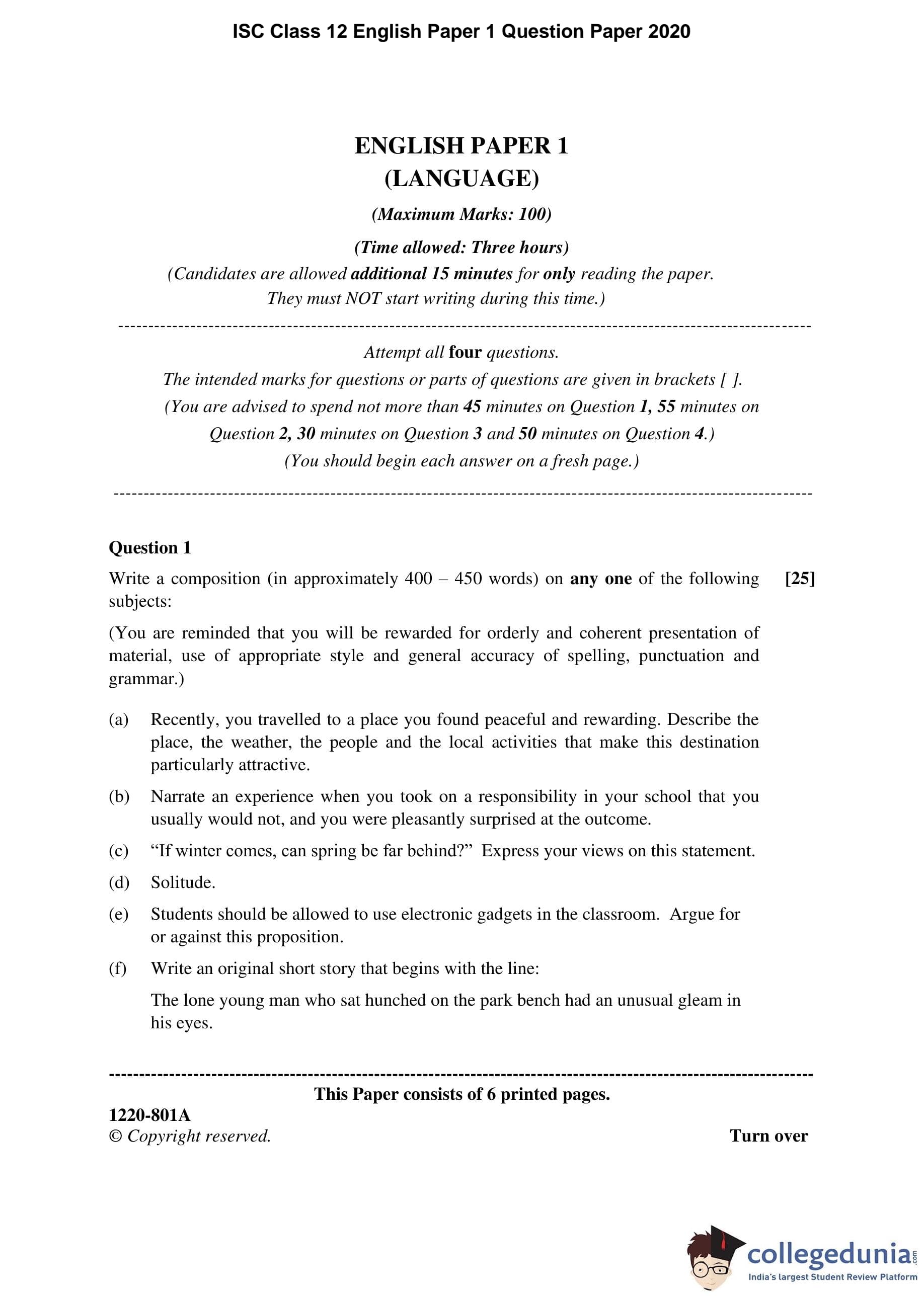ISC Class 12 English Paper 1 Question Paper 2020 with Answer Key