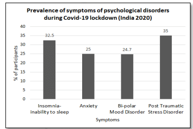 Prevalence of symptoms: Insomnia - 32.5%, Anxiety - 25%, Bi-polar Mood Disor-