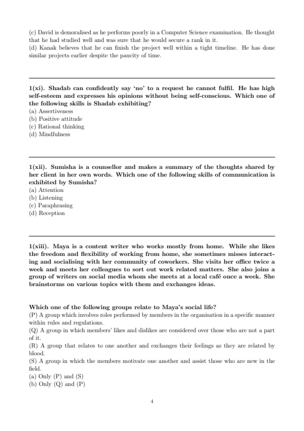 Shadab can confidently say ‘no’ to a request he cannot fulfil. He has high self-esteem and expresses his opinions without being self-conscious. Which one of the following skills is Shadab exhibiting?