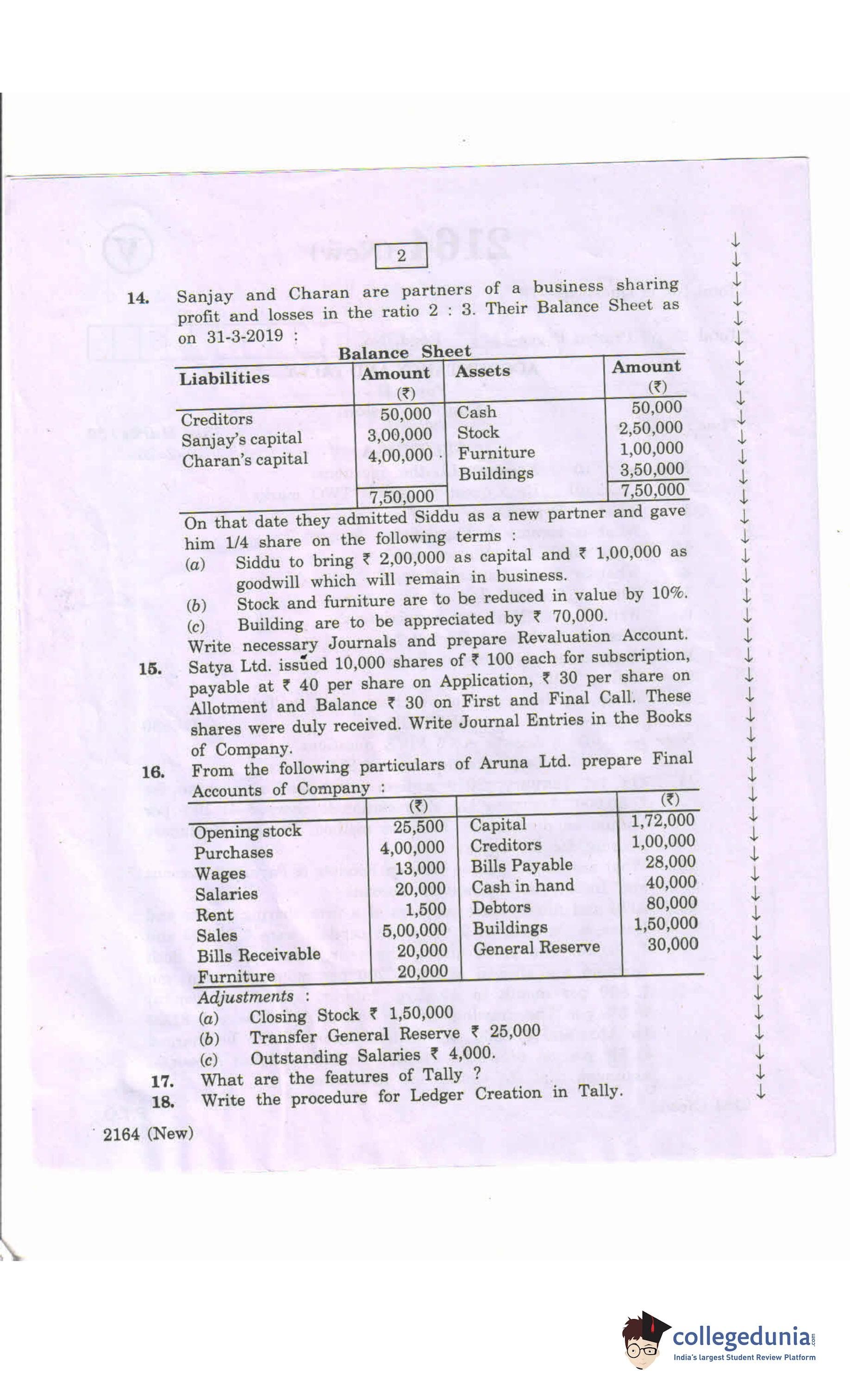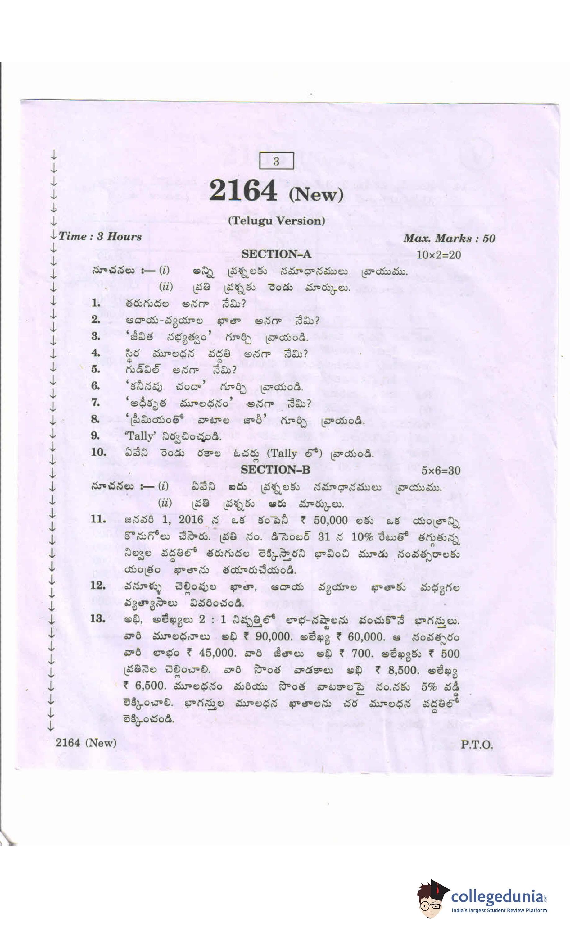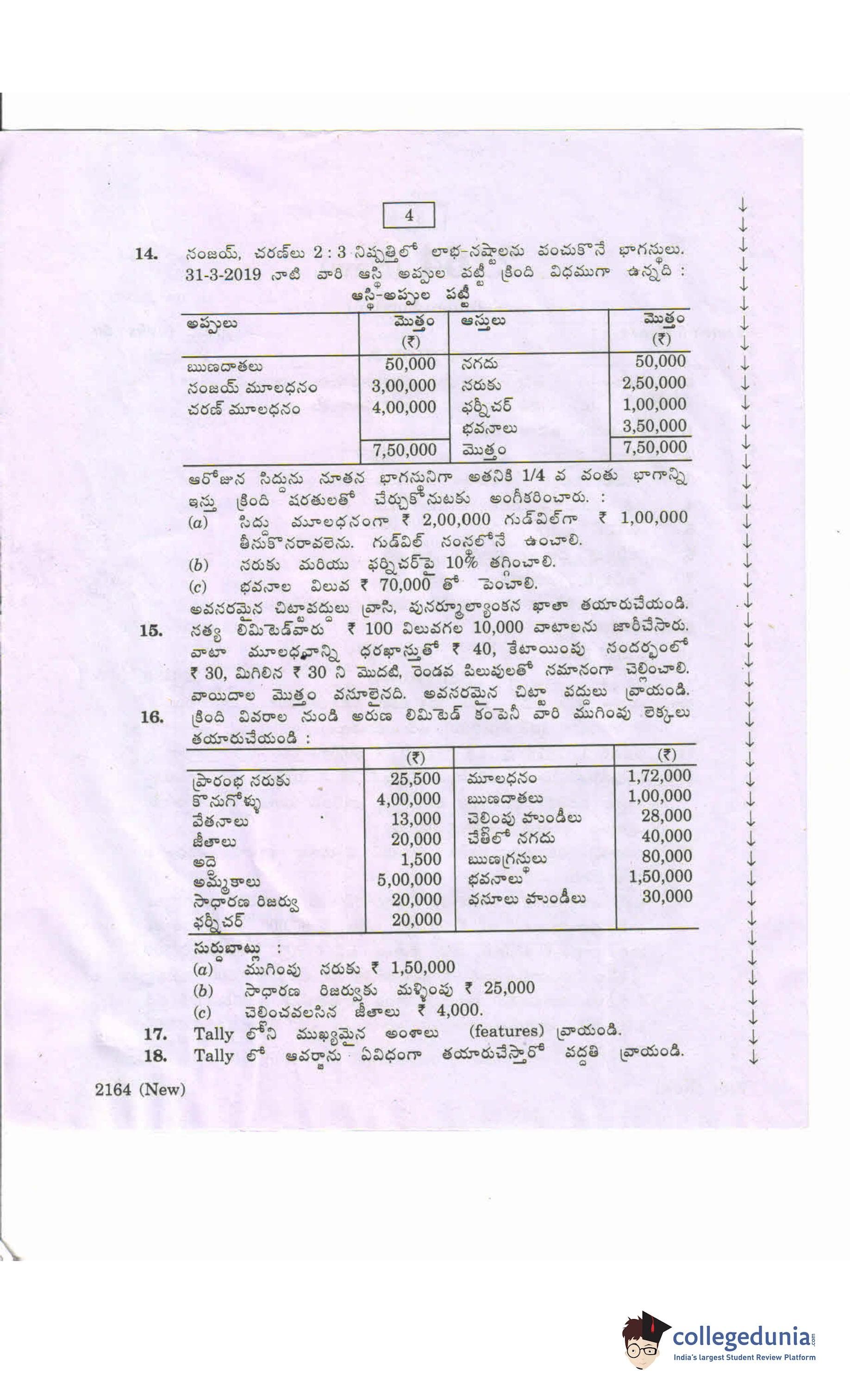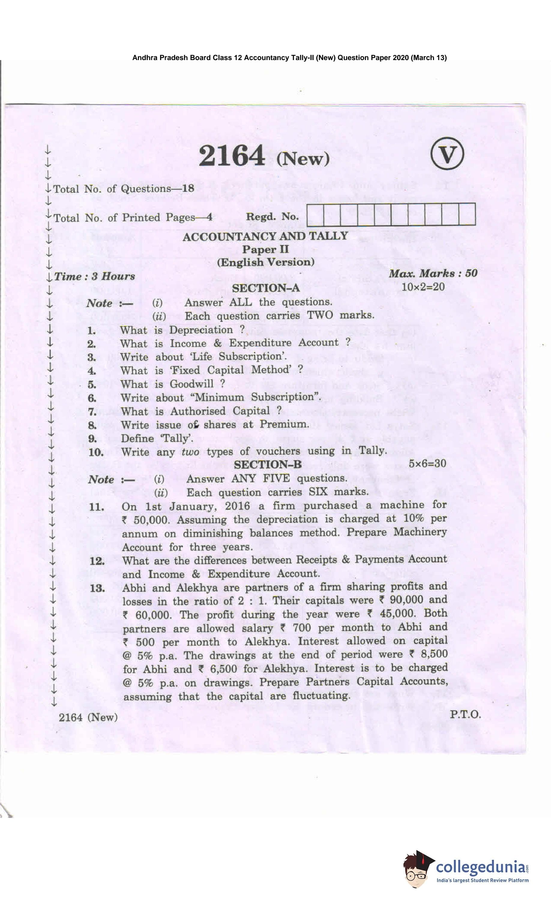 AP Intermediate 2nd year Accountancy Tally (New) Question Paper 2020 with Answer Key (March 13)