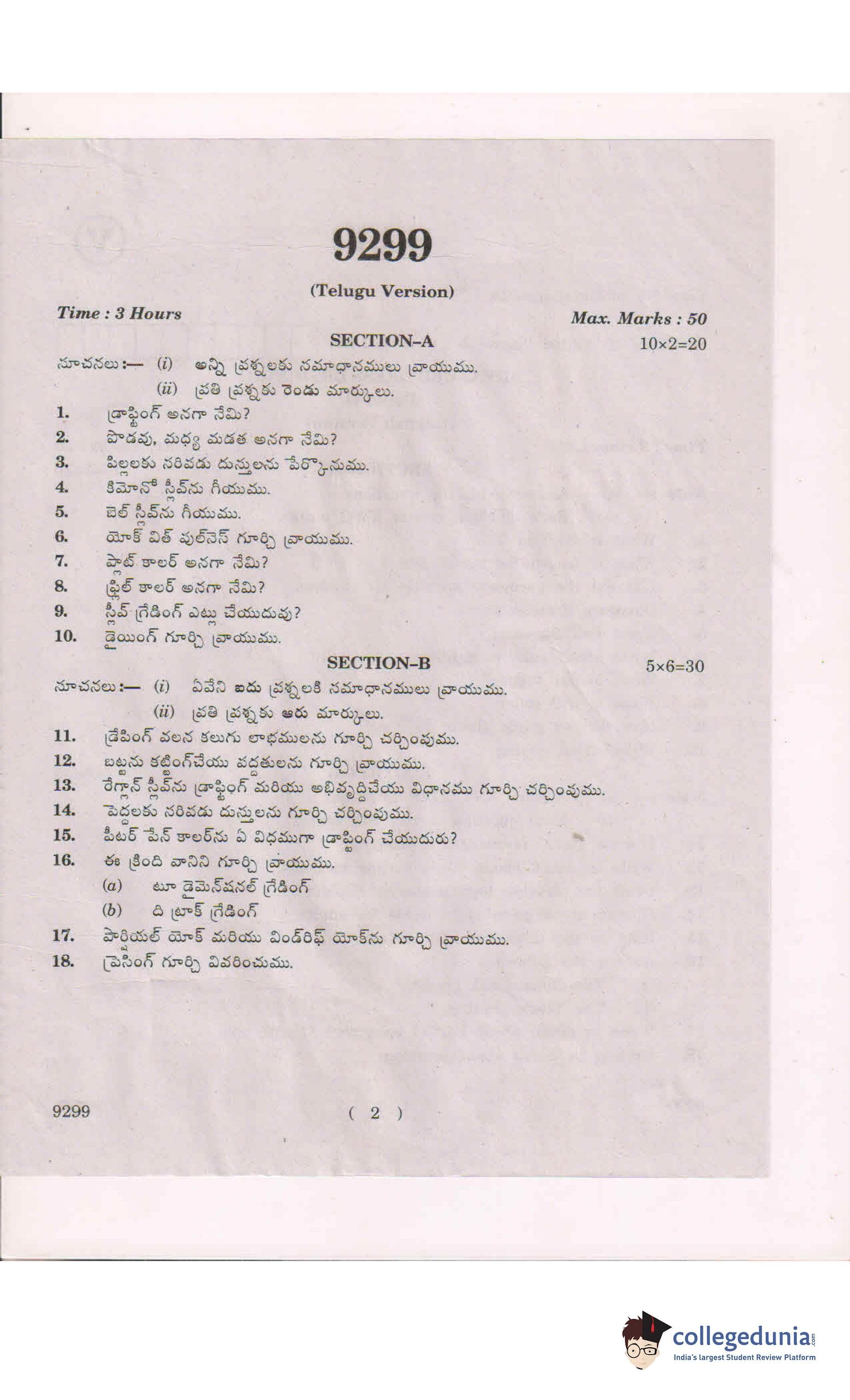 AP Intermediate 2nd year Advanced Dress Designing Question Paper 2019 with Answer Key is available for download. The exam was conducted by the Andhra Pradesh Board of Intermediate Education (APBIE) . The medium of paper was English and Telugu.The question paper comprised a total of 18 questions divided among 2 sections.