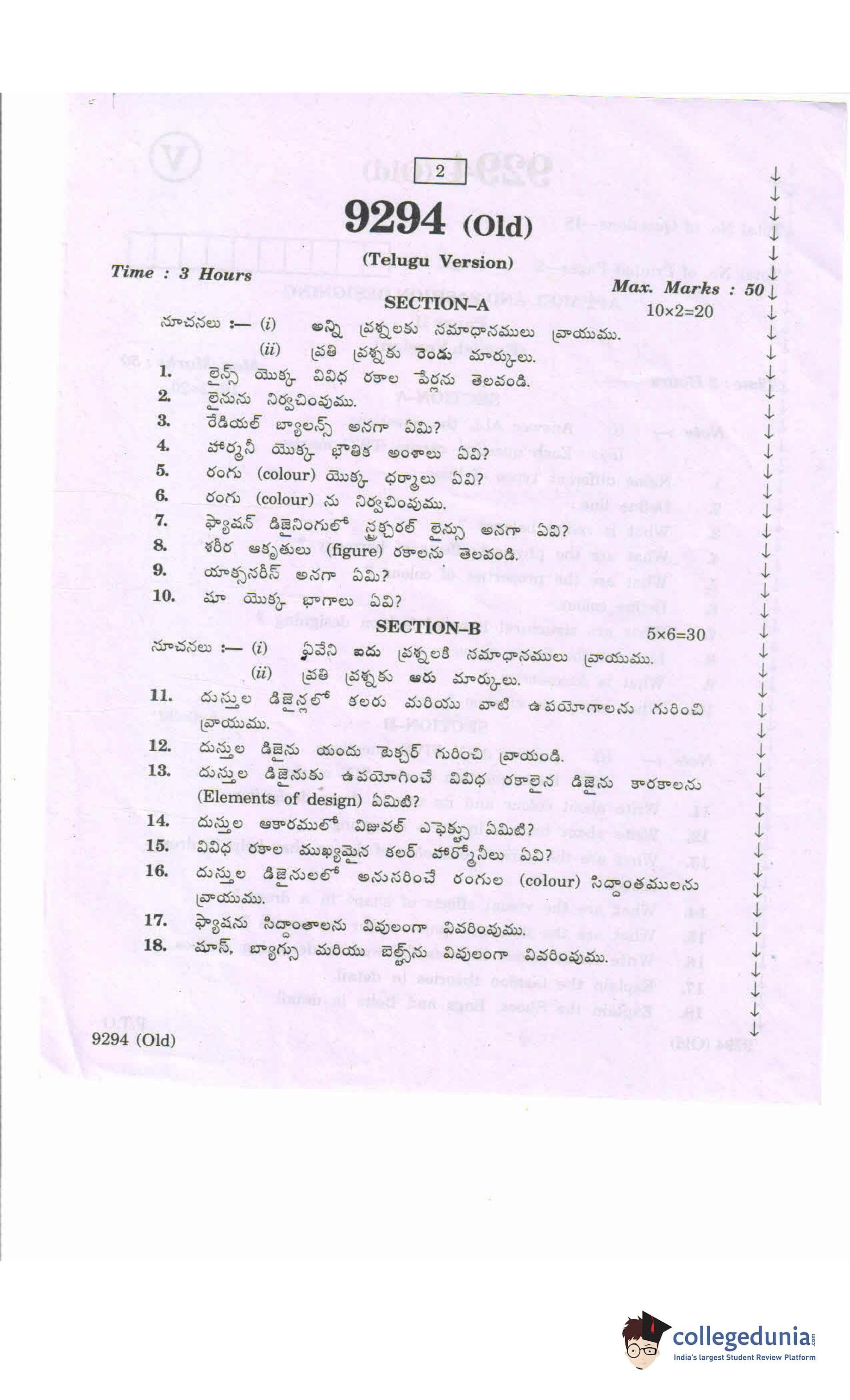 AP Intermediate 2nd year Apparel Fashion Designing (Old) Question Paper 2020 with Answer Key (March 16)