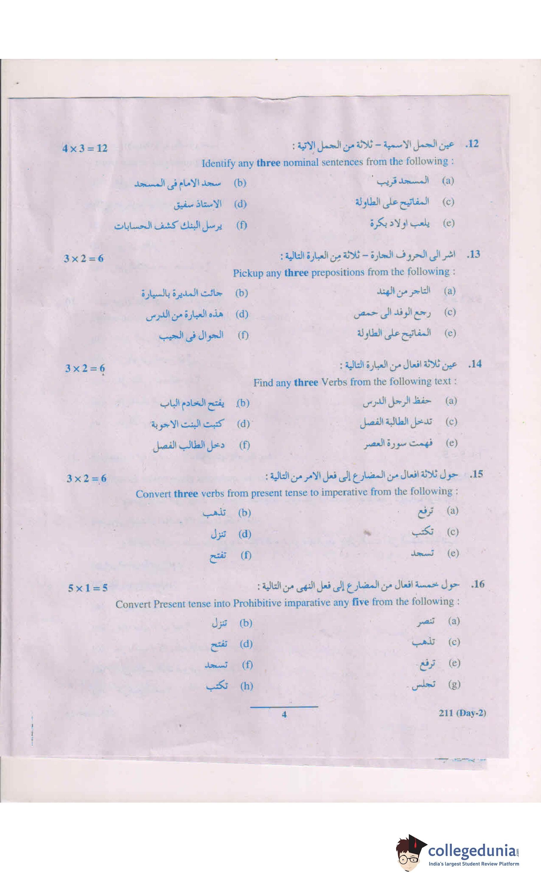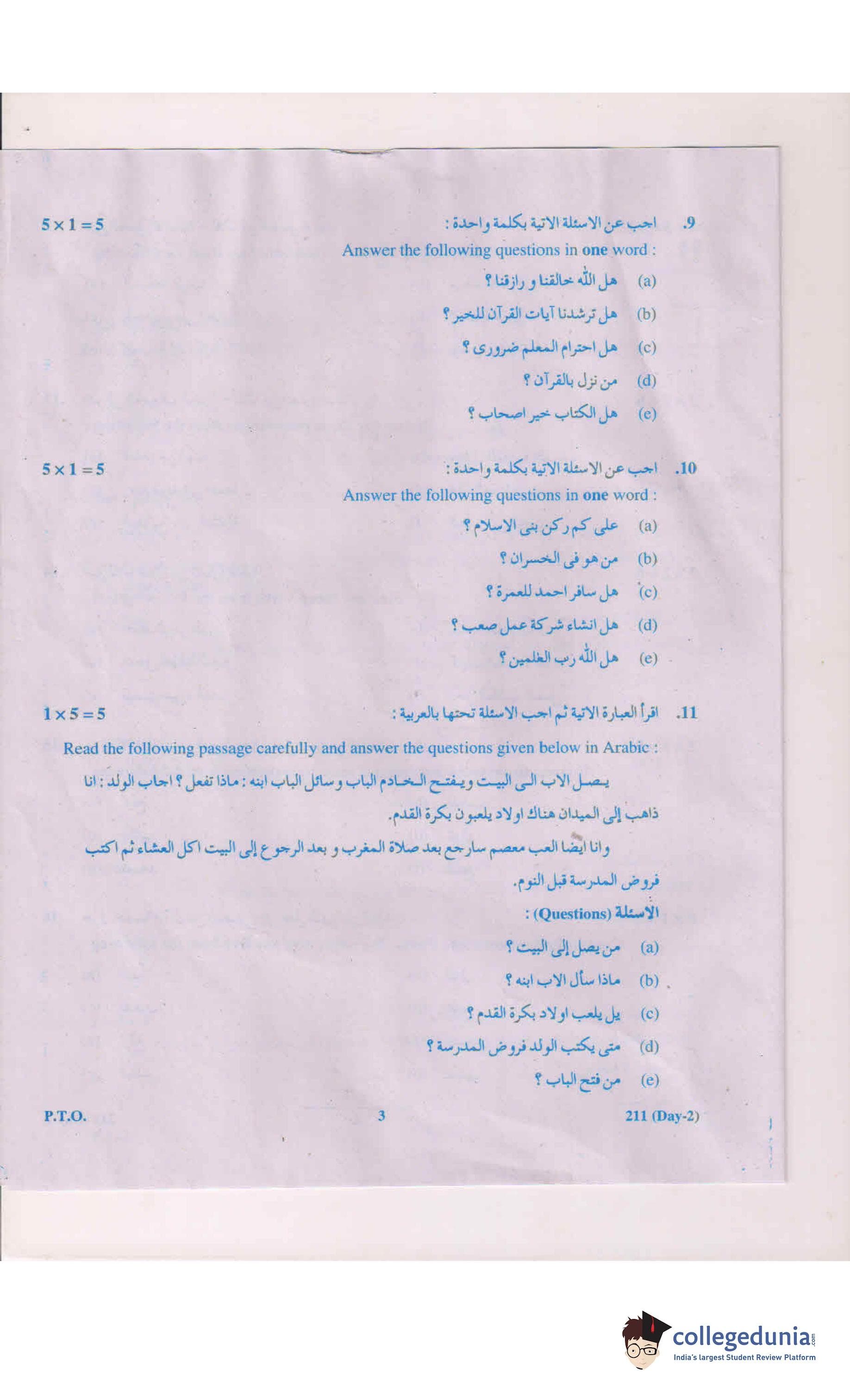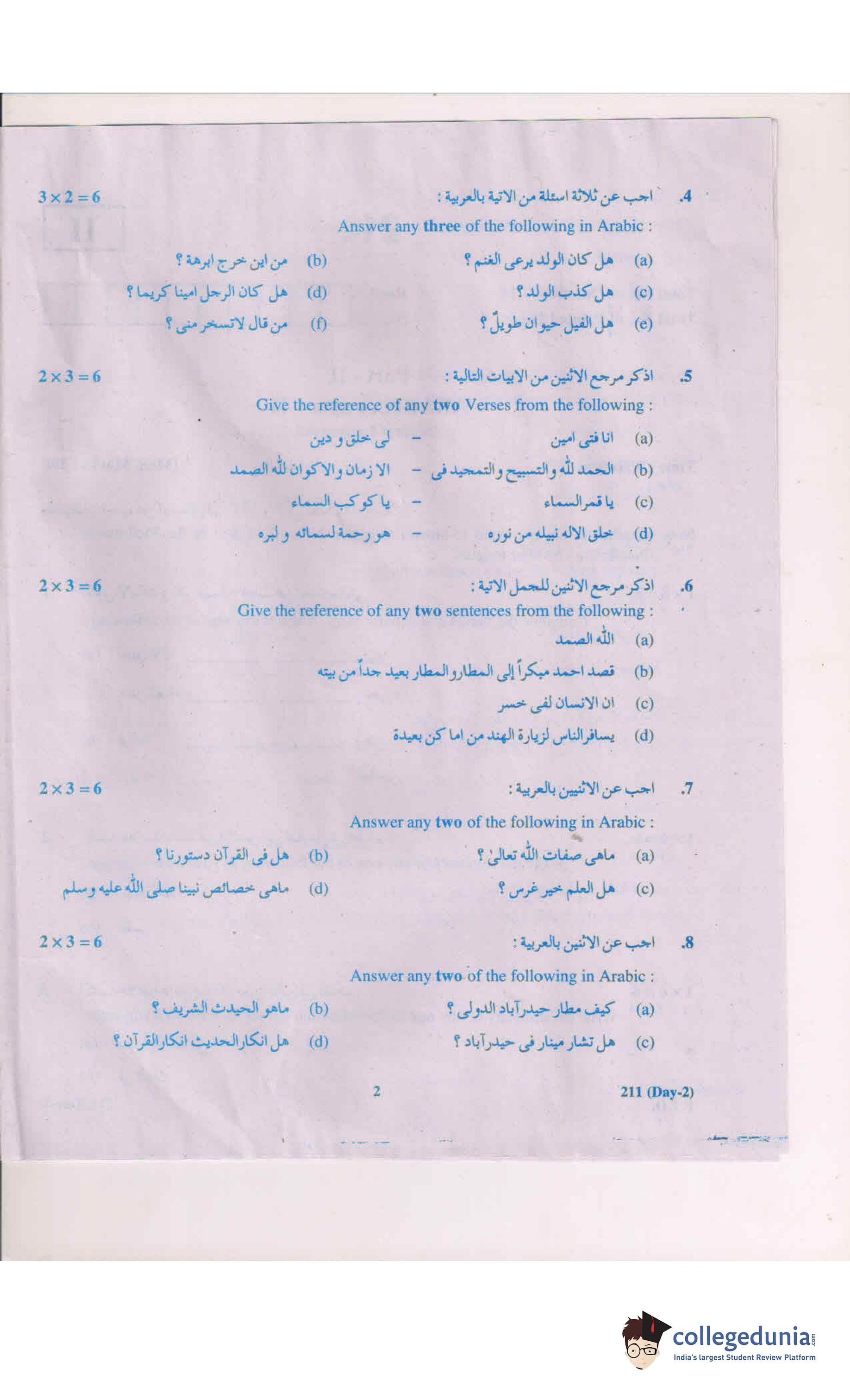 AP Intermediate 2nd year Arabic Question Paper 2019 with Answer Key 211 is available for download. The exam was conducted by the Andhra Pradesh Board of Intermediate Education (APBIE) on February 28, 2019 in the Morning Session 9 AM to 12 PM. The medium of paper was English and Arabic.The question paper comprised a total of 16 questions.