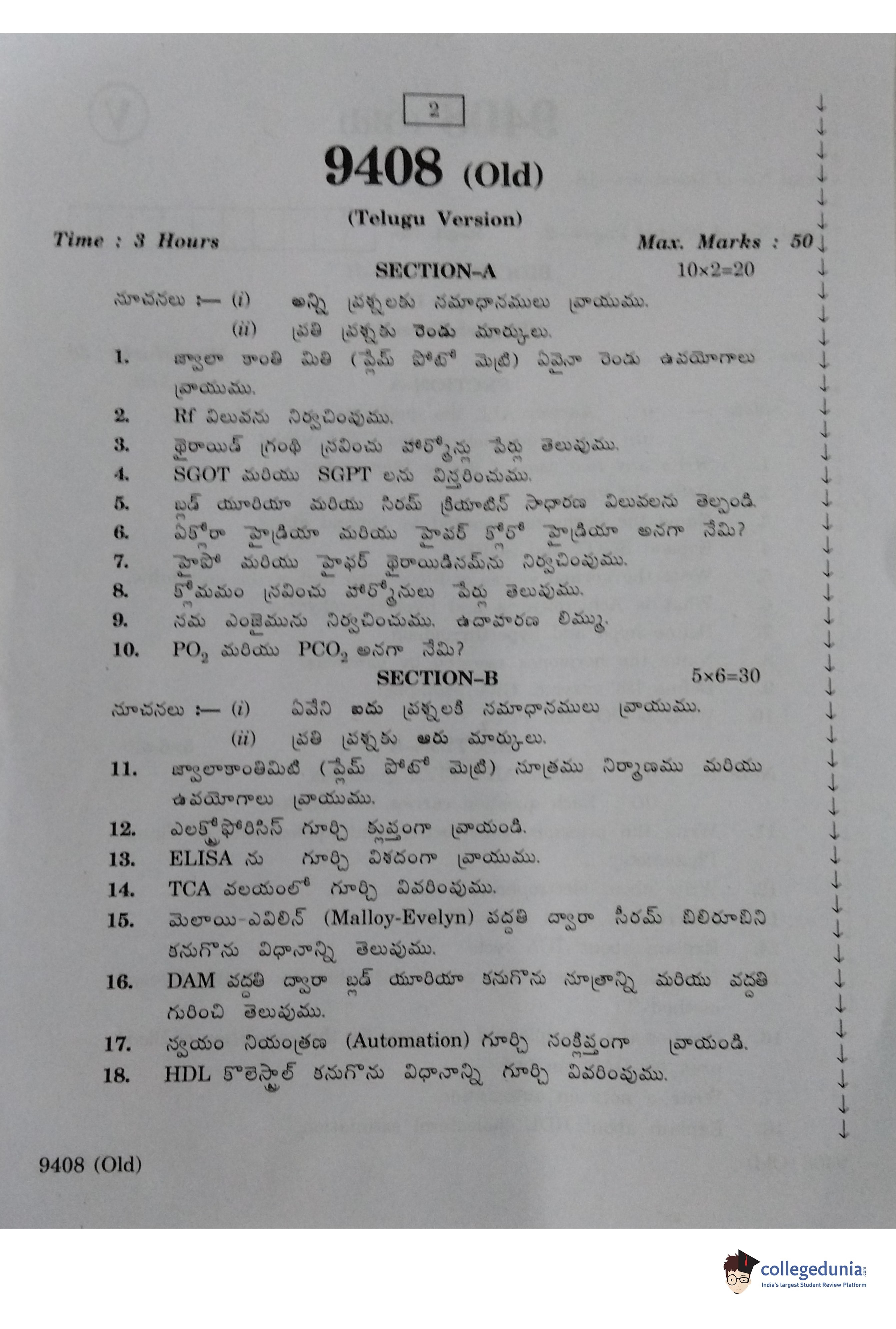 AP Intermediate 2nd year Bio Chemistry (Old) Question Paper 2020 with Answer Key is available for download. The exam was conducted by the Andhra Pradesh Board of Intermediate Education (APBIE) on March 11, 2020 in the Morning Session 9 AM to 12 PM. The medium of paper was English and Telugu. The question paper comprised a total of 18 questions divided among 2 sections.