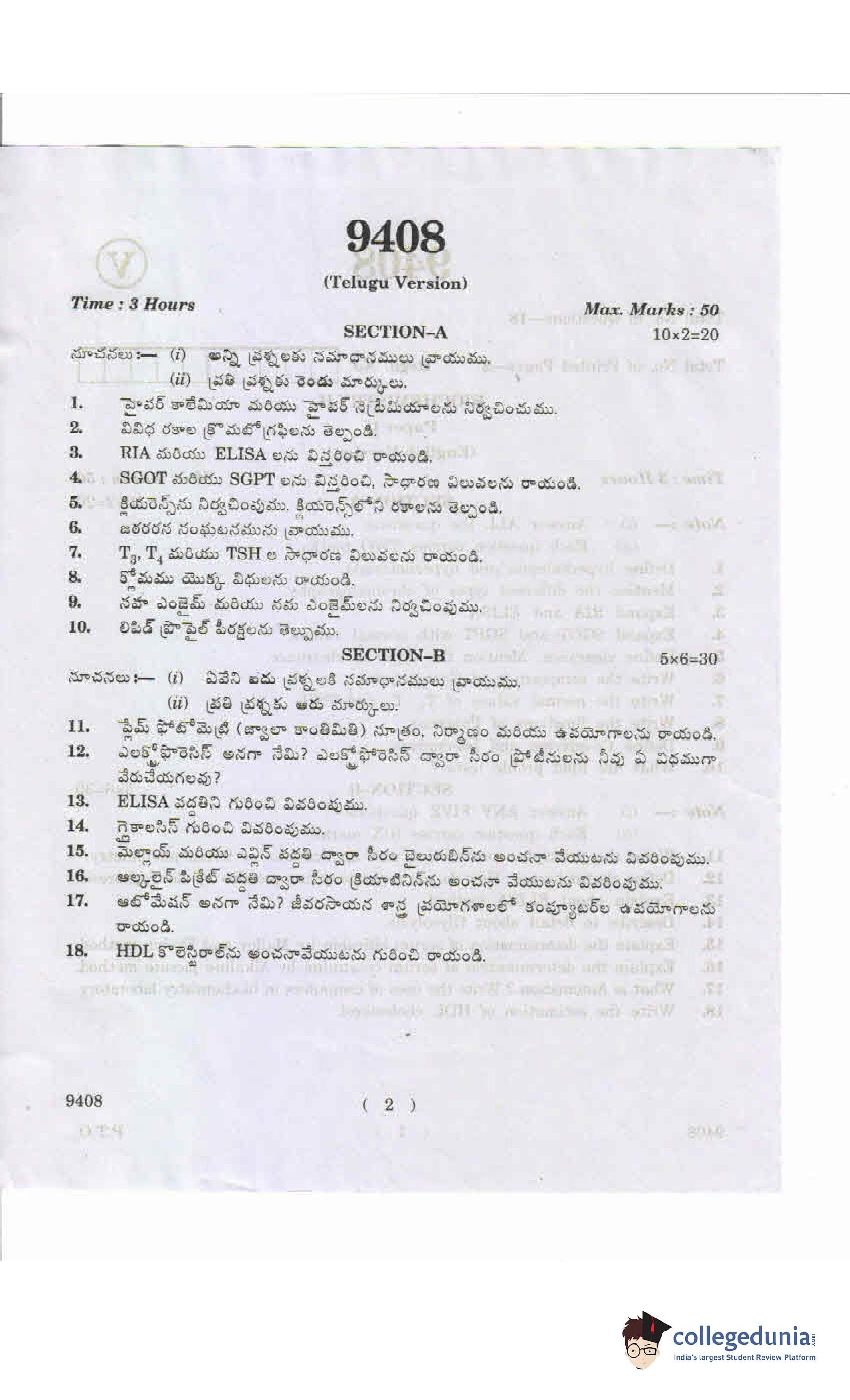 AP Intermediate 2nd year Biochemistry 9408 Supplementary Question Paper 2019