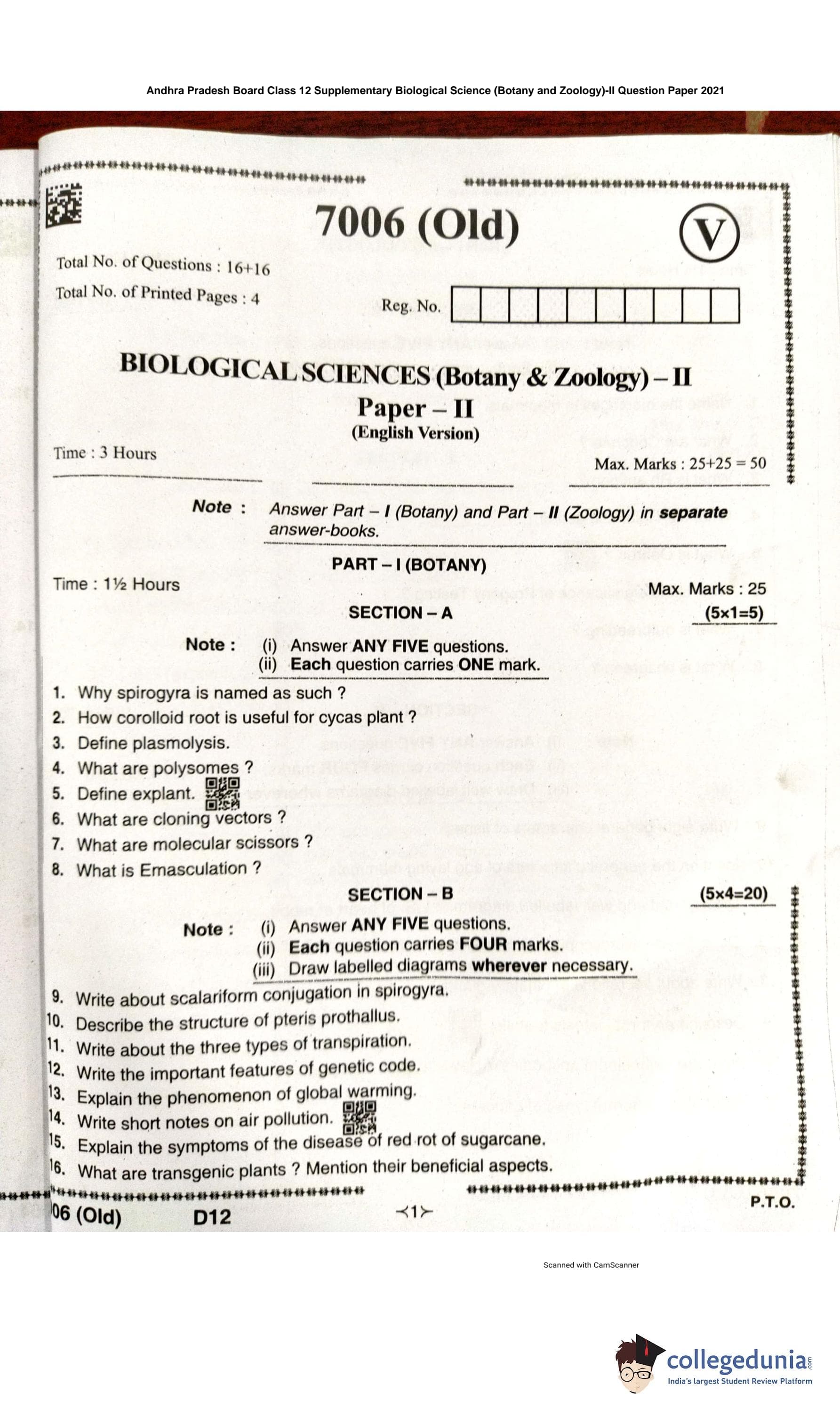 | AP Intermediate 2nd year Biological Science (Botany and Zoology) Question Paper 2021 PDF | AP Intermediate 2nd year Biological Science (Botany and Zoology) Answer Key 2021 PDF |