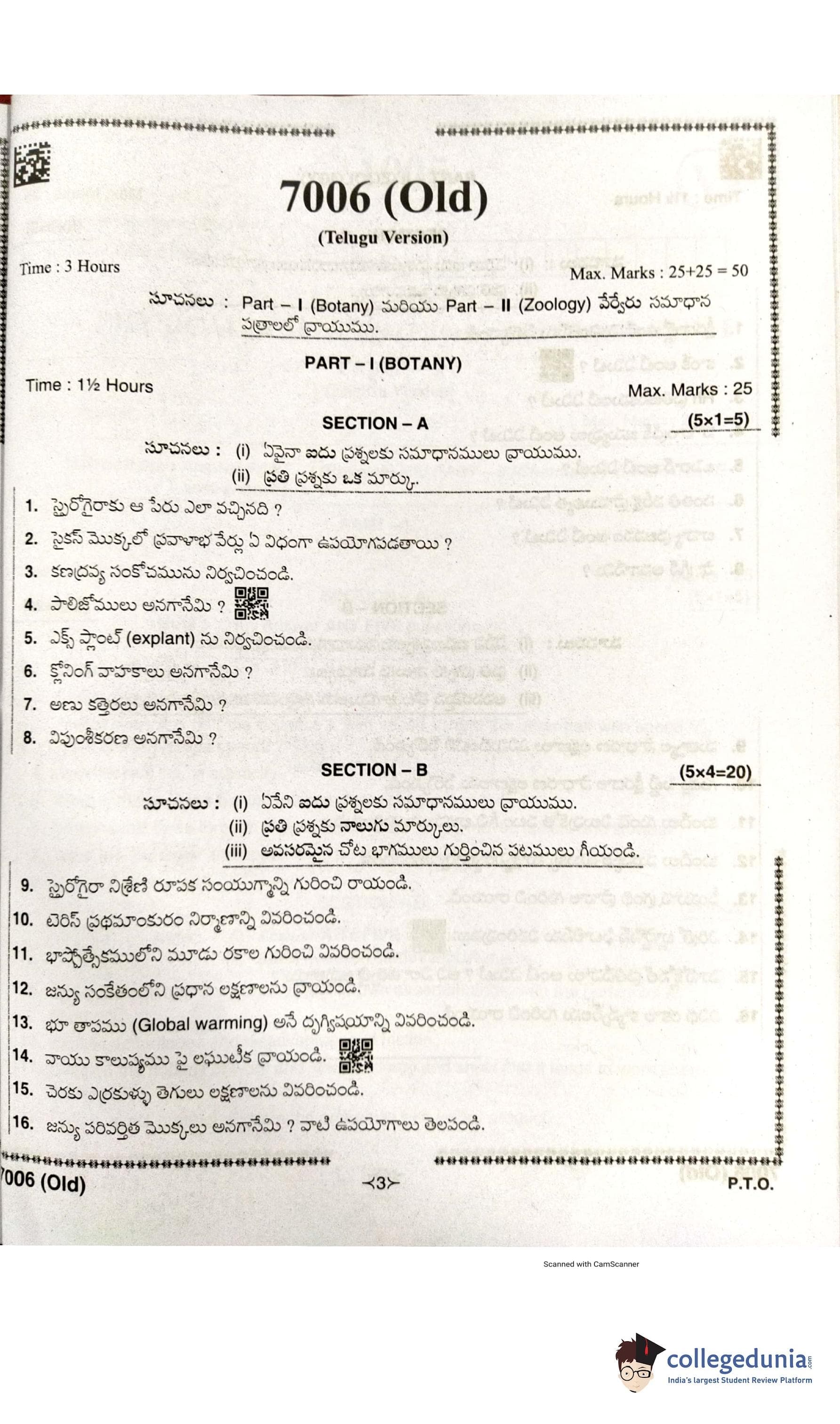 AP Intermediate 2nd year Biological Science (Botany and Zoology) Supplementary Question Paper 2021 with Answer Key is available for download. The exam was conducted by the Andhra Pradesh Board of Intermediate Education (APBIE) . The medium of paper was English and Telugu. The question paper comprised a total of 18 questions divided among 2 sections.