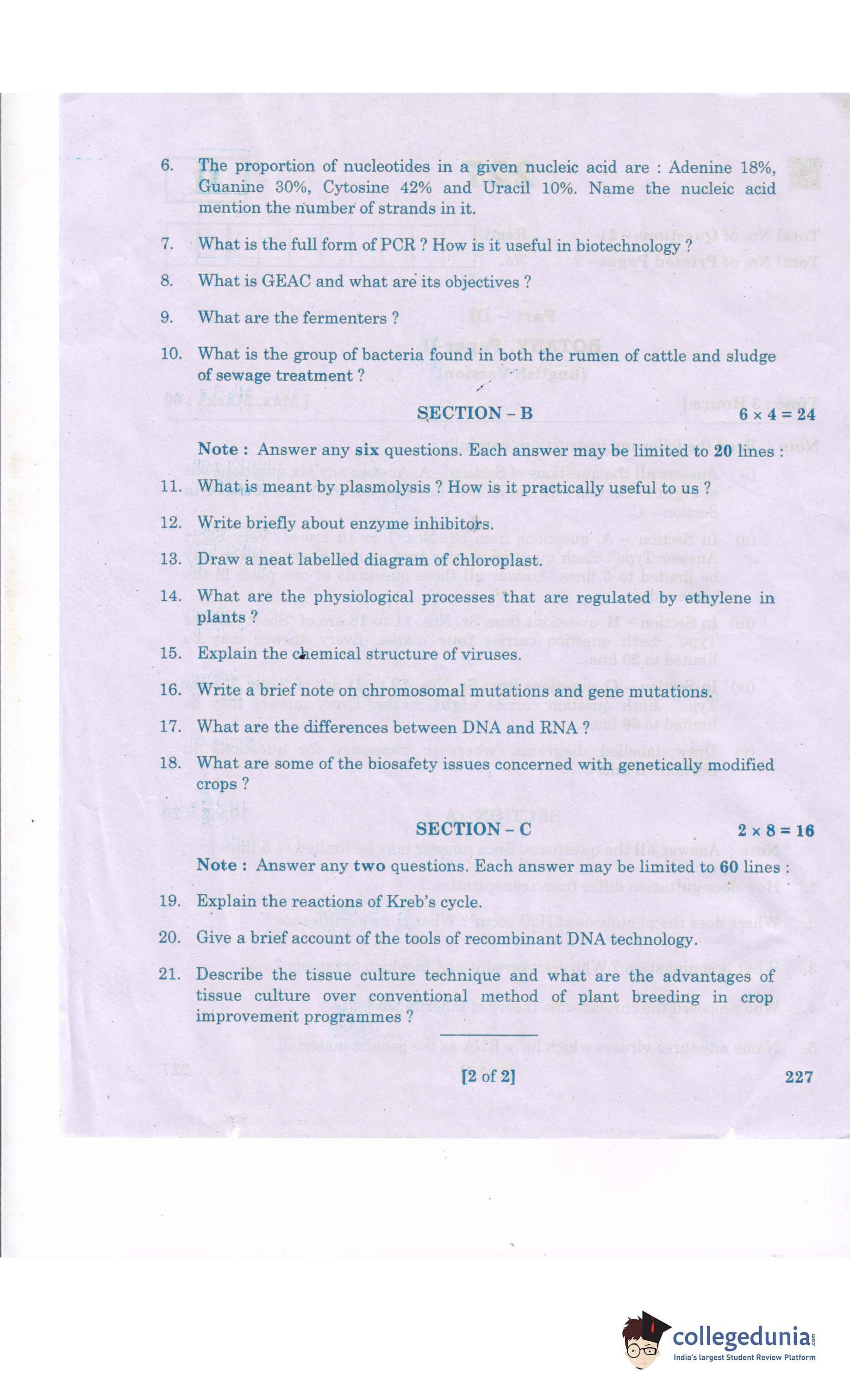 AP Intermediate 2nd year Botany Supplementary Question Paper 2021 with Answer Key II is available for download. The exam was conducted by the Andhra Pradesh Board of Intermediate Education (APBIE). The medium of paper was English. The question paper comprised a total of 21 questions divided among 3 sections.
