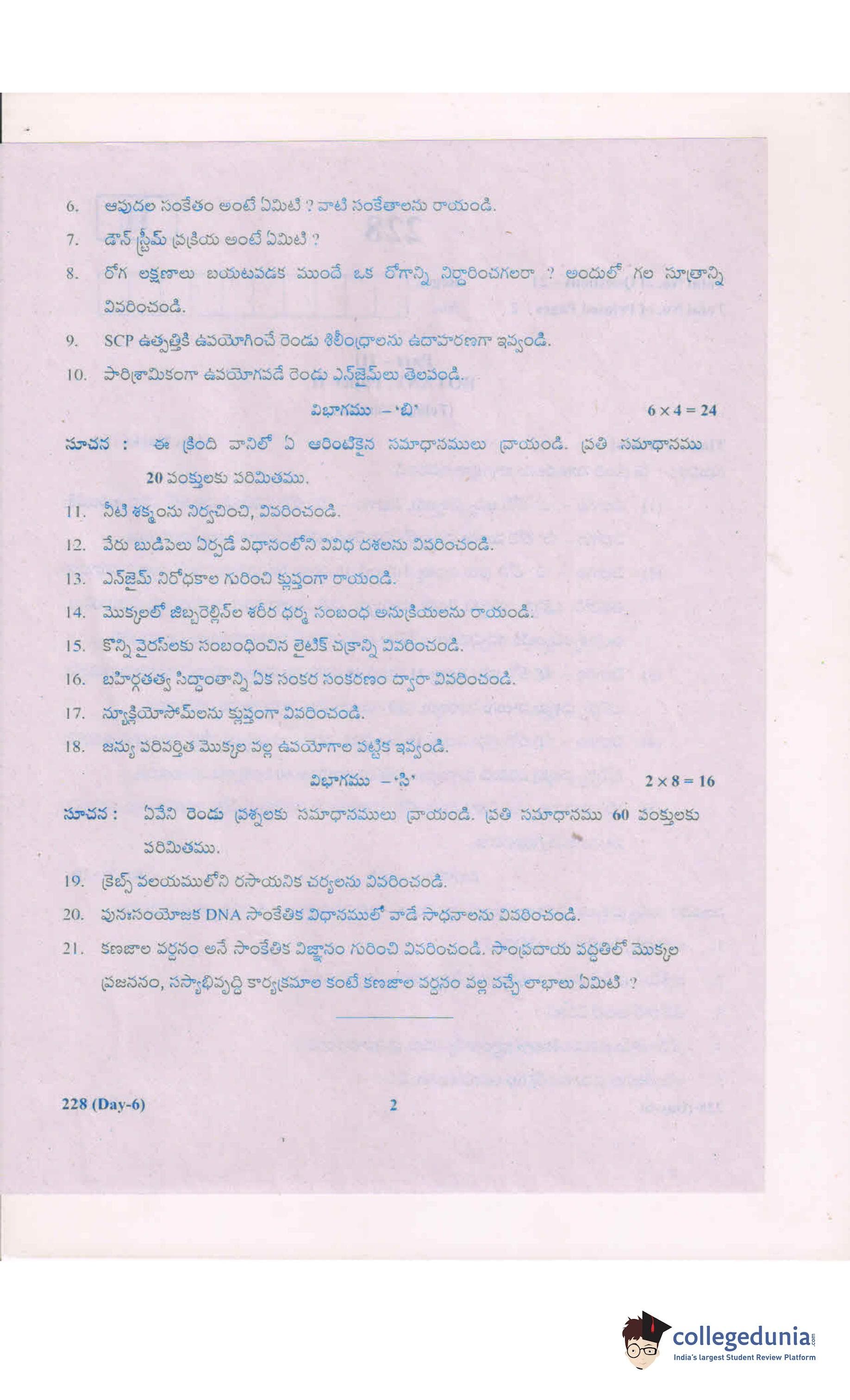 AP Intermediate 2nd year Botany (Telugu) 228 Question Paper 2019 with Answer Key (March 6)