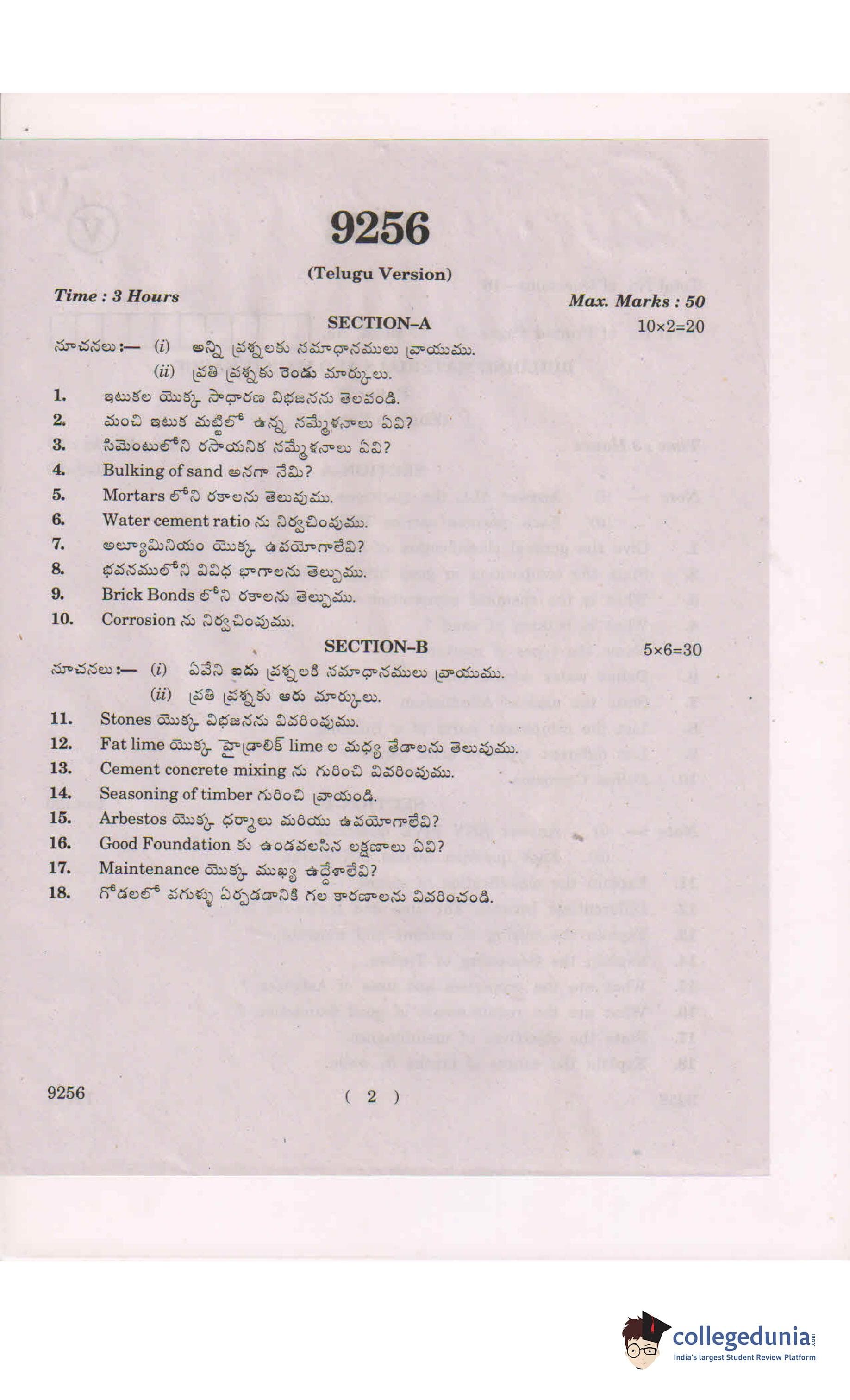 AP Intermediate 2nd year Building Materials and Maintenance Question Paper 2019 with Answer Key