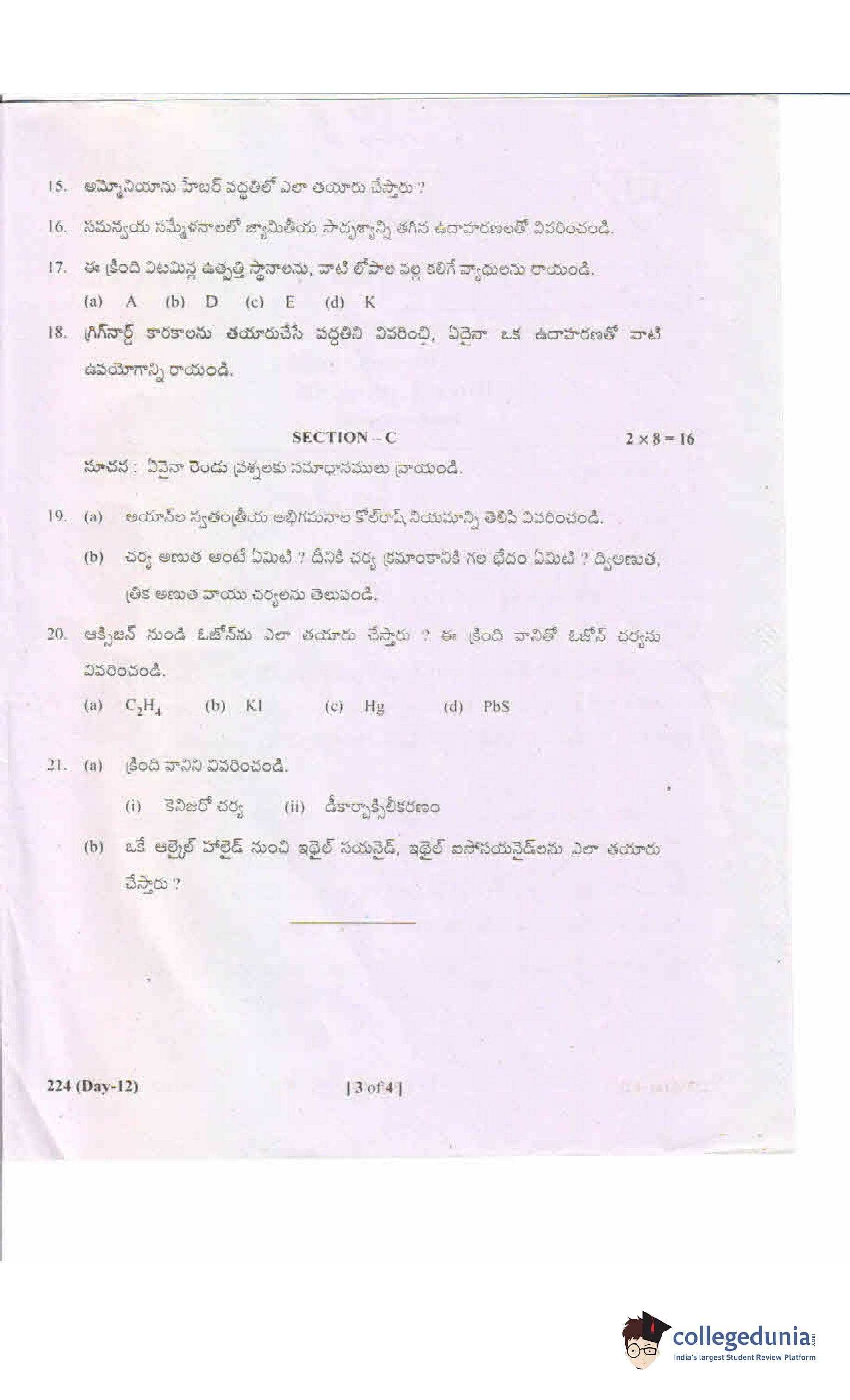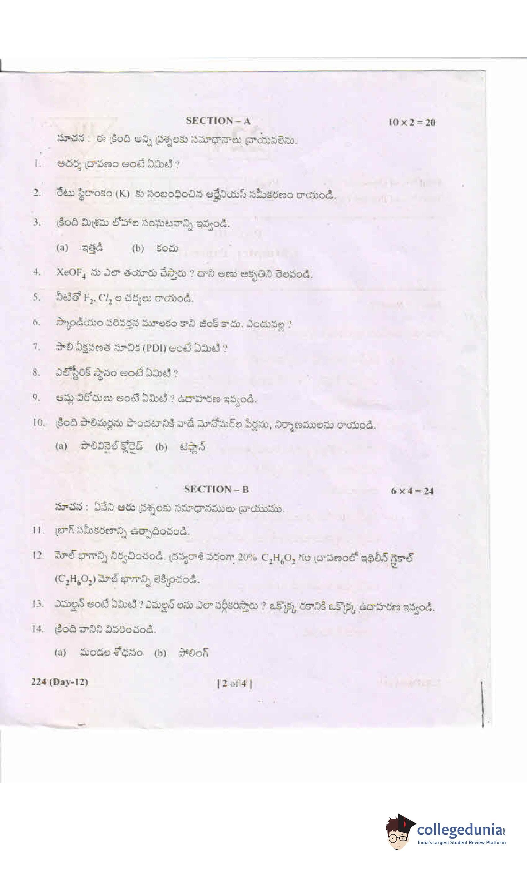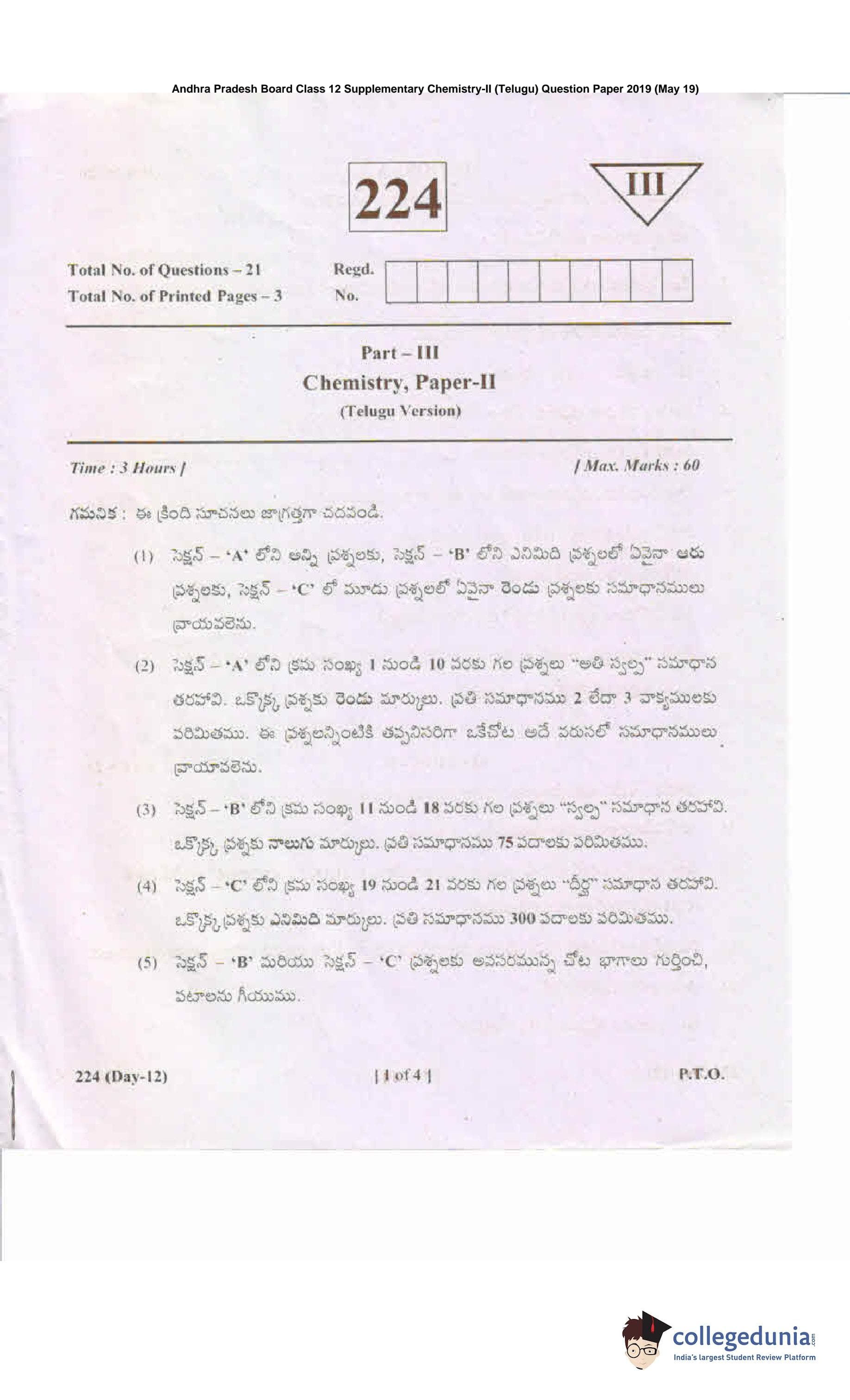 AP Intermediate 2nd year Chemistry (Telugu) 224 Supplementary Question Paper 2019 (May 19)