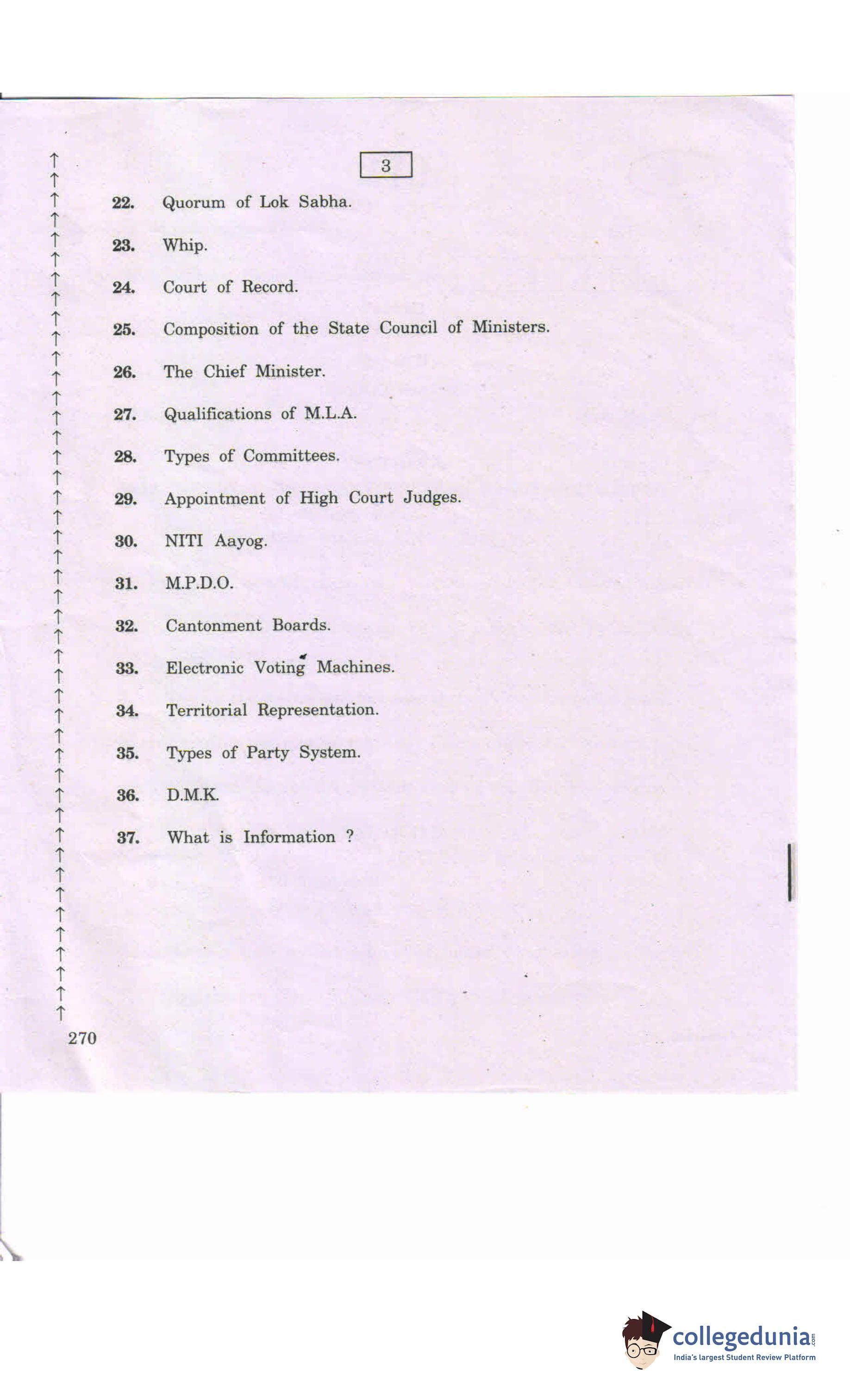 AP Intermediate 2nd year Civics 270 Question Paper 2020 with Answer Key (March 11)