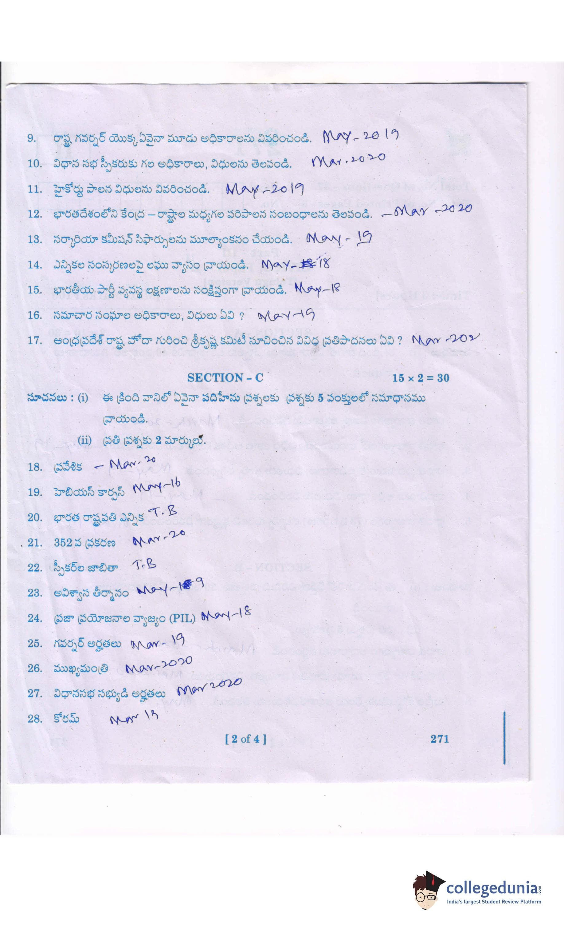 AP Intermediate 2nd year Civics (Telugu) Supplementary Question Paper 2021 with Answer Key II is available for download. The exam was conducted by the Andhra Pradesh Board of Intermediate Education (APBIE). The medium of paper was Telugu. The question paper comprised a total of 37 questions divided among 3 sections.