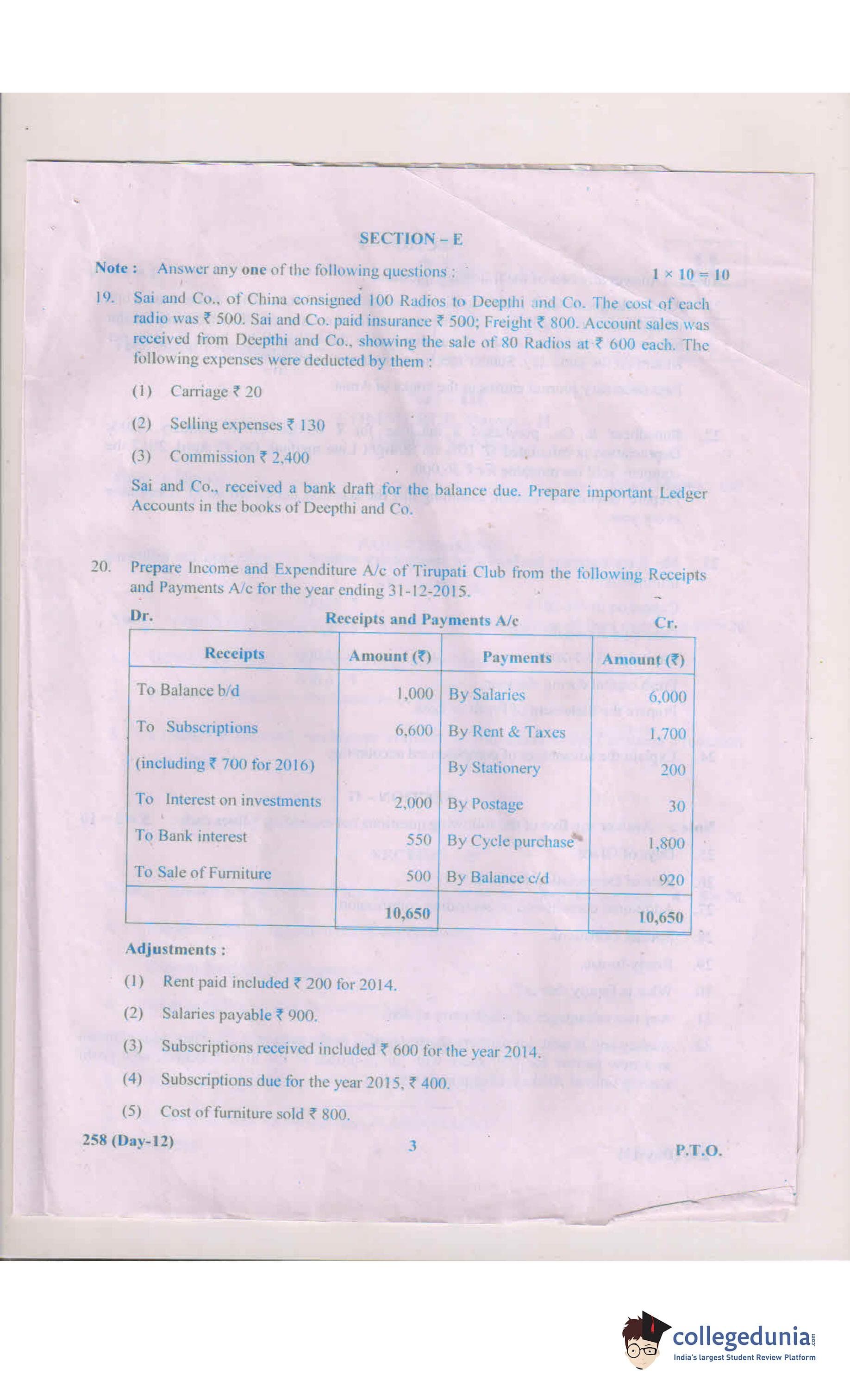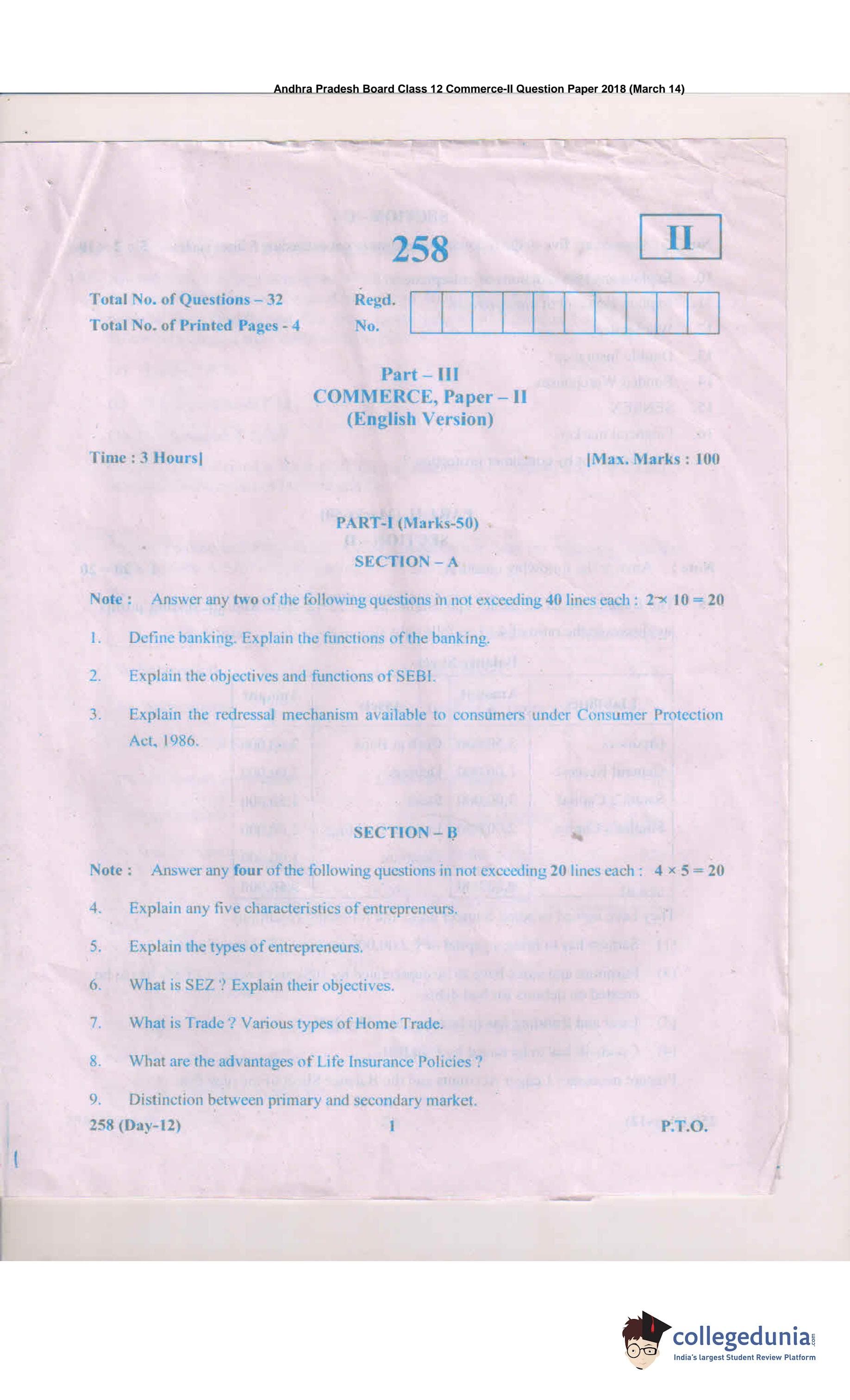 AP Intermediate 2nd year Commerce 258 Question Paper 2018 with Answer Key (March 14)
