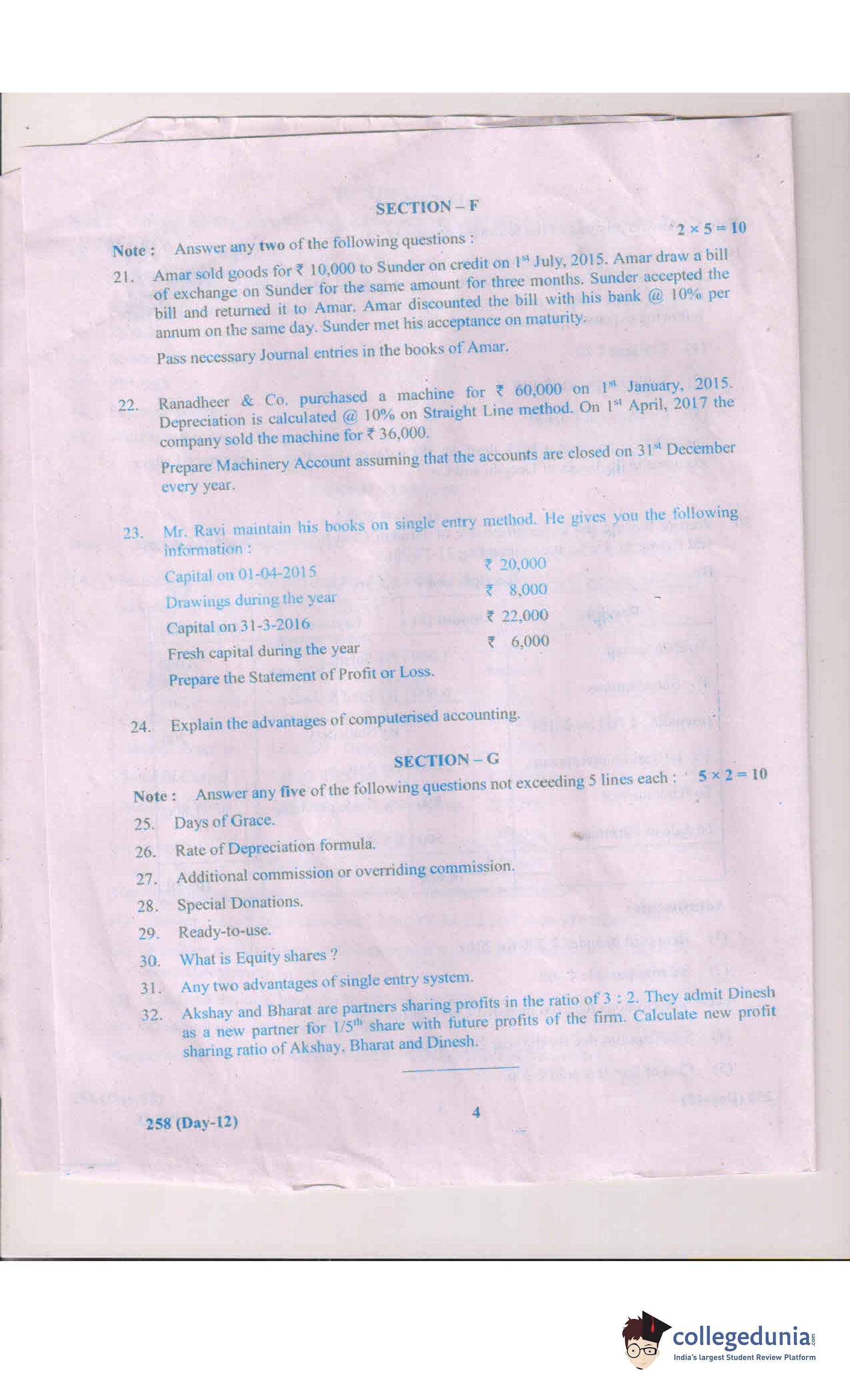 AP Intermediate 2nd year Commerce Question Paper 2018 with Answer Key 258 is available for download. The exam was conducted by the Andhra Pradesh Board of Intermediate Education (APBIE) on March 14, 2018 in the Morning Session 9 AM to 12 PM. The medium of paper was English.The question paper comprised a total of 32 questions divided among 7 sections.