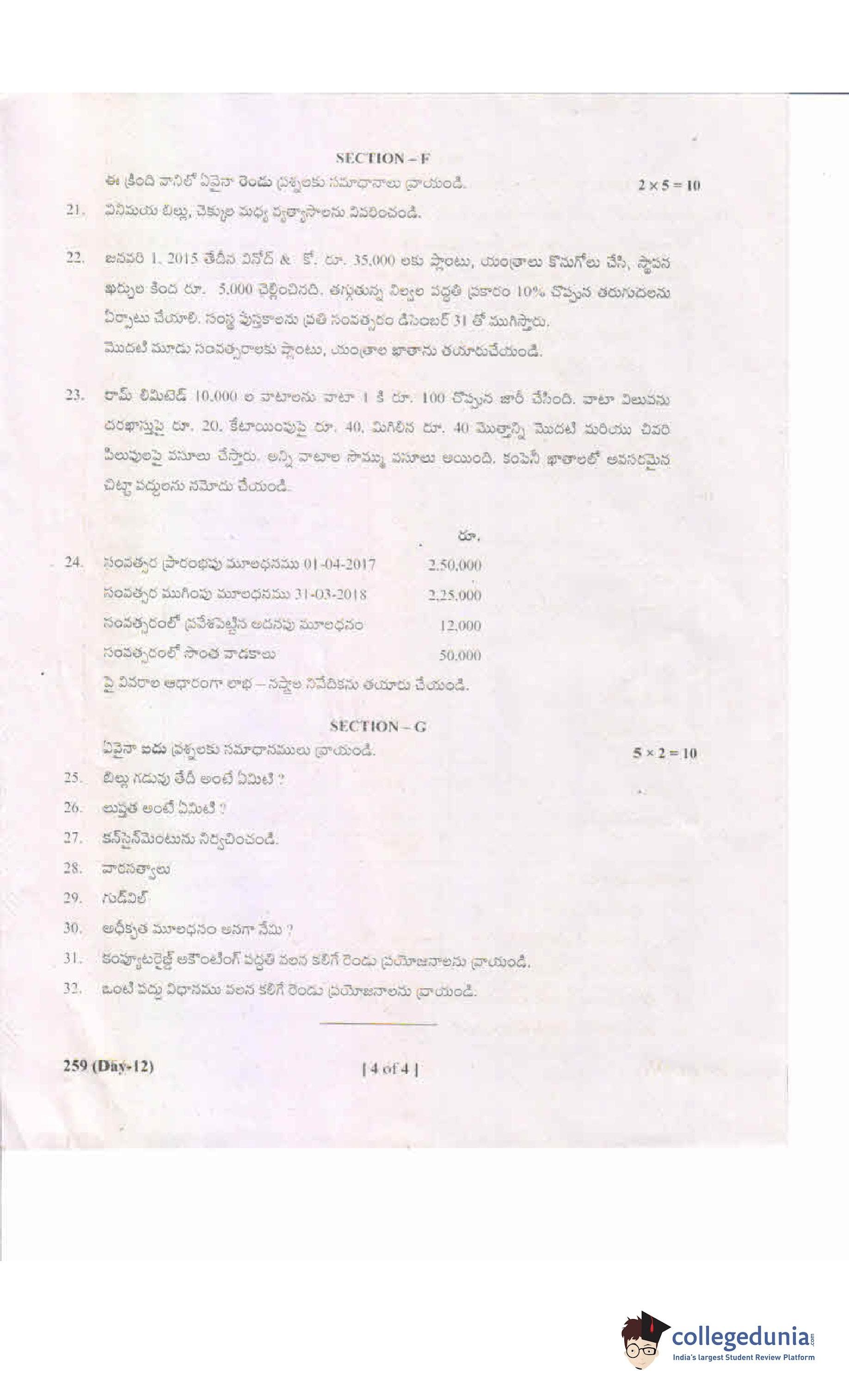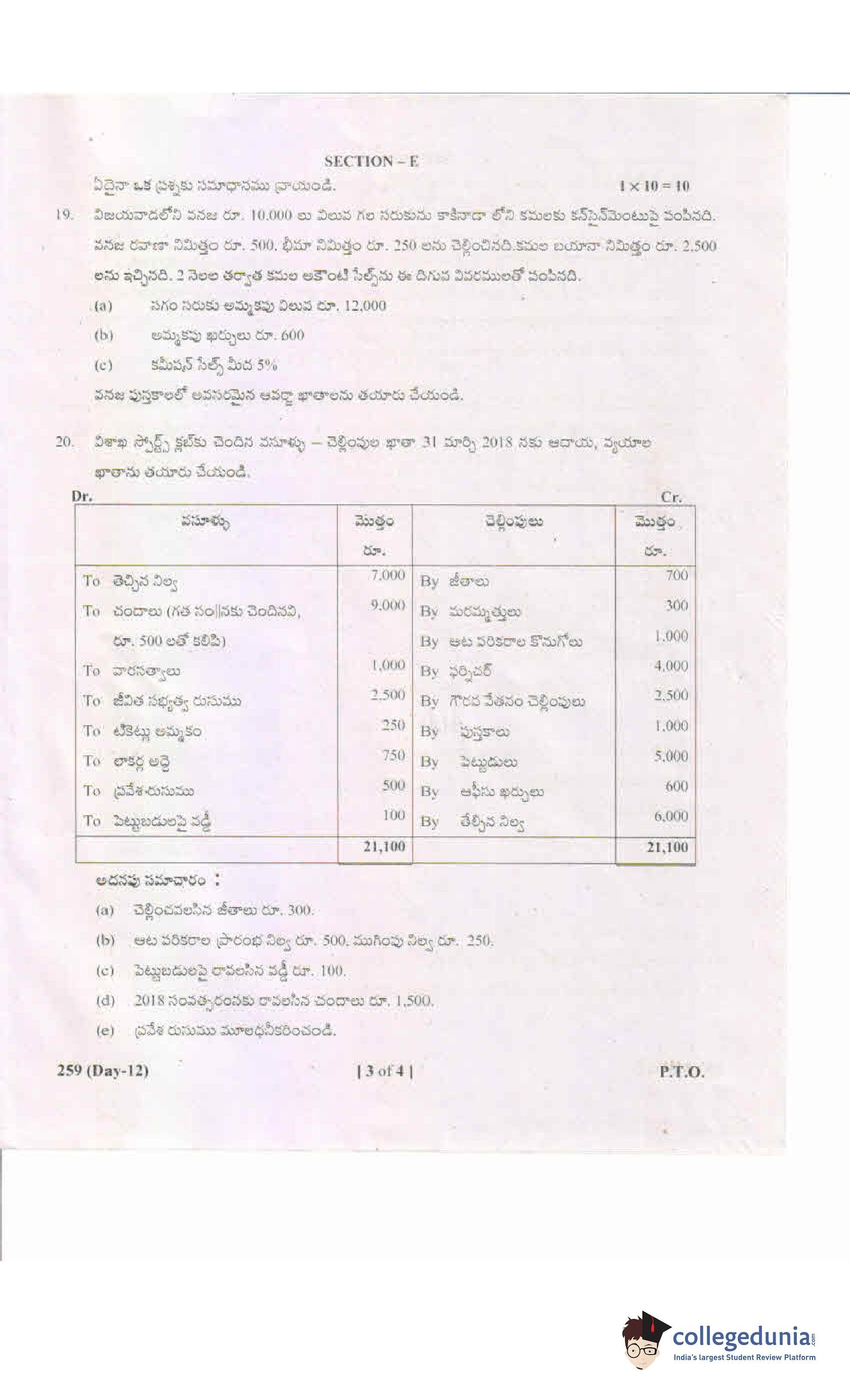 AP Intermediate 2nd year Commerce (Telugu) 259 Supplementary Question Paper 2019 (May 19)
