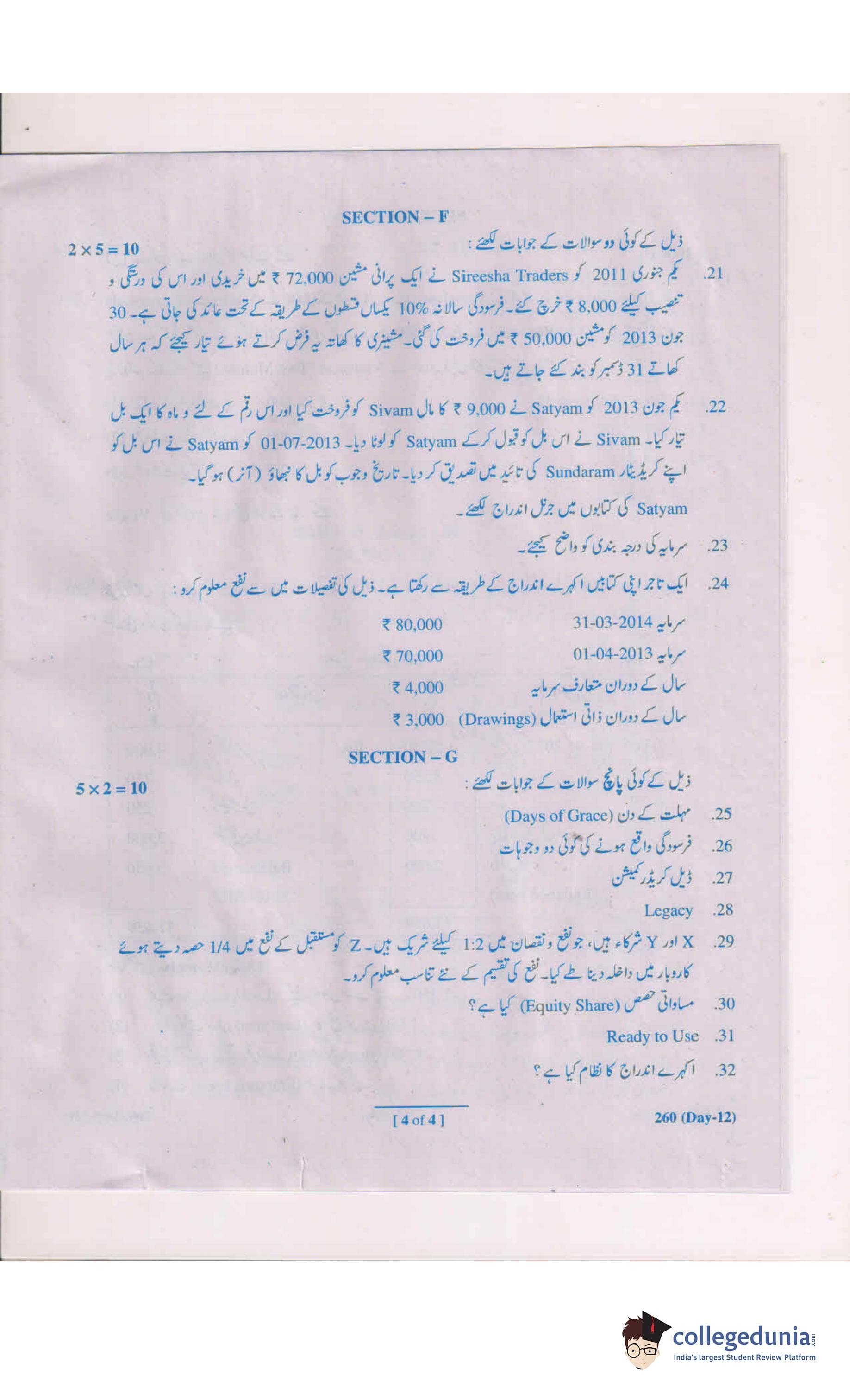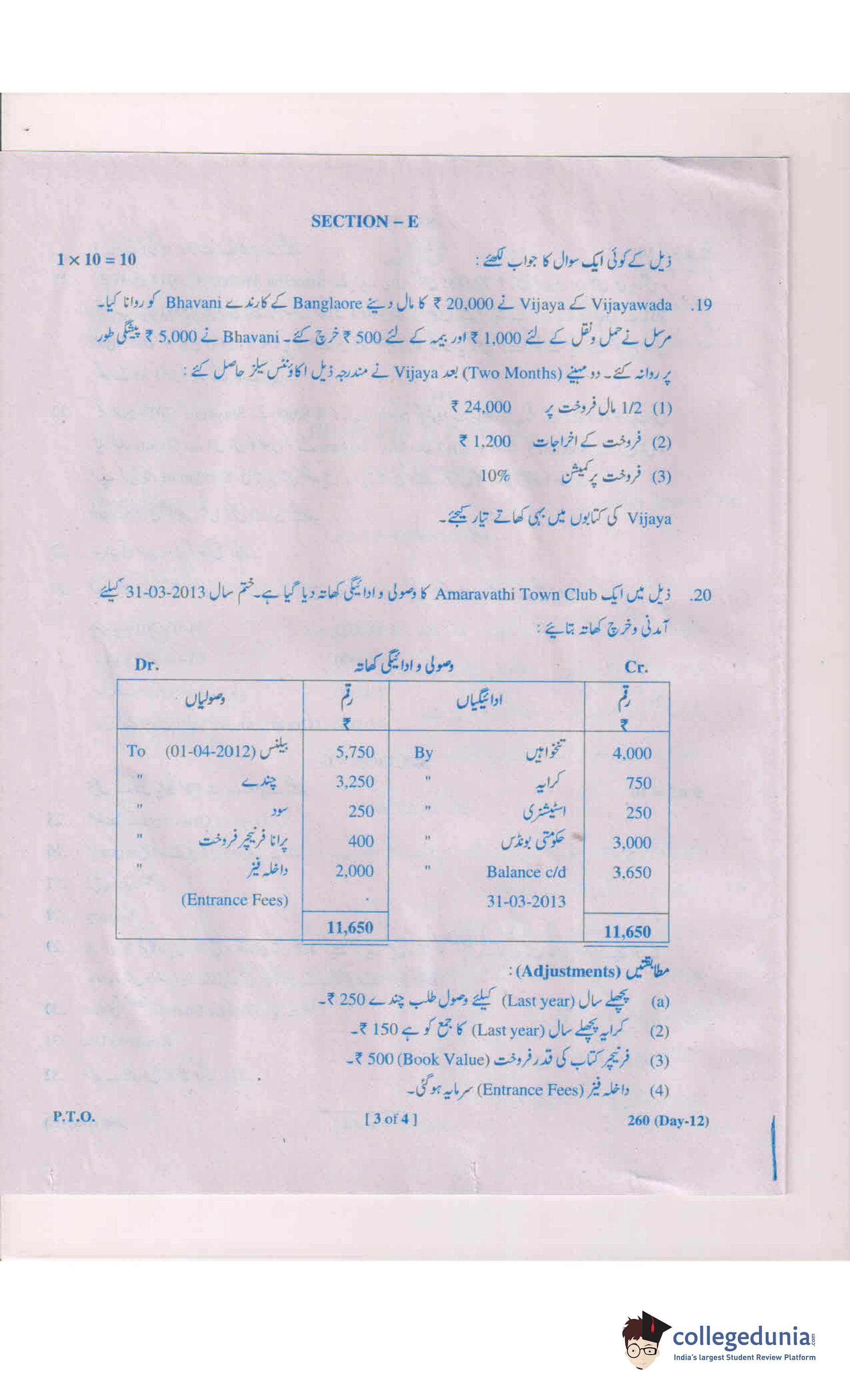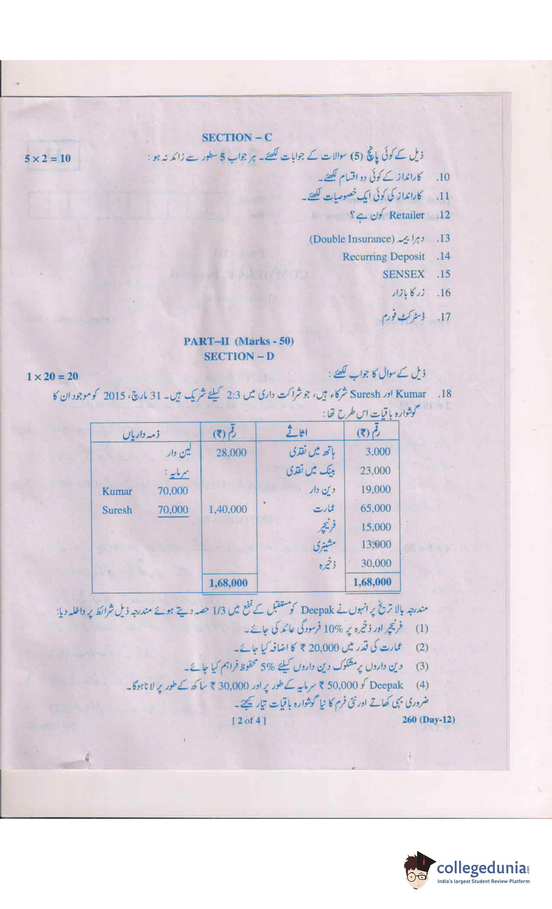 AP Intermediate 2nd year Commerce (Urdu) 260 Question Paper 2019 with Answer Key (March 13)