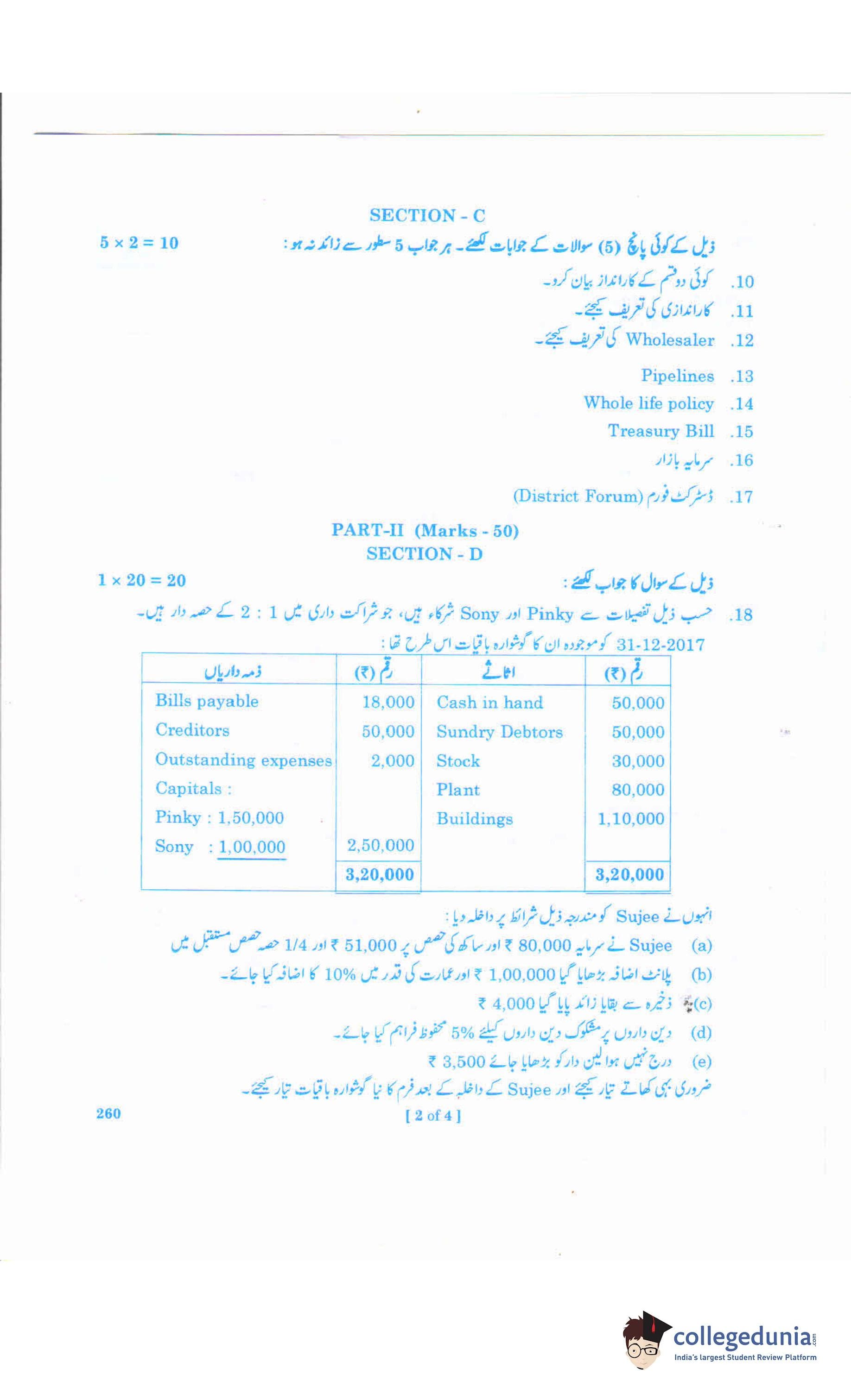 AP Intermediate 2nd year Commerce (Urdu) 260 Question Paper 2020 with Answer Key (March 18)