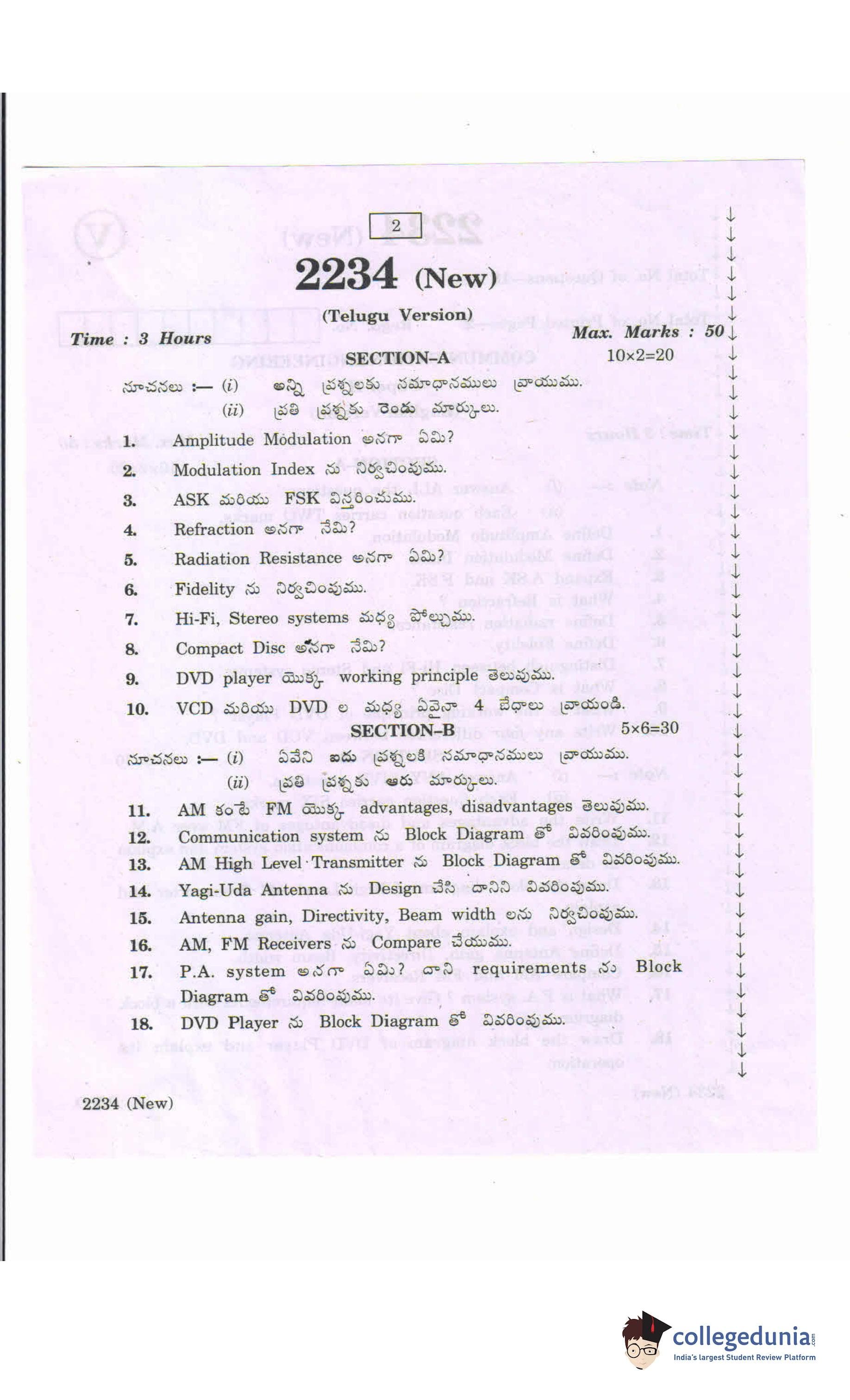 | AP Intermediate 2nd year Communication Engineering (New) Question Paper 2020 PDF | AP Intermediate 2nd year Communication Engineering (New) Answer Key 2020 PDF |
