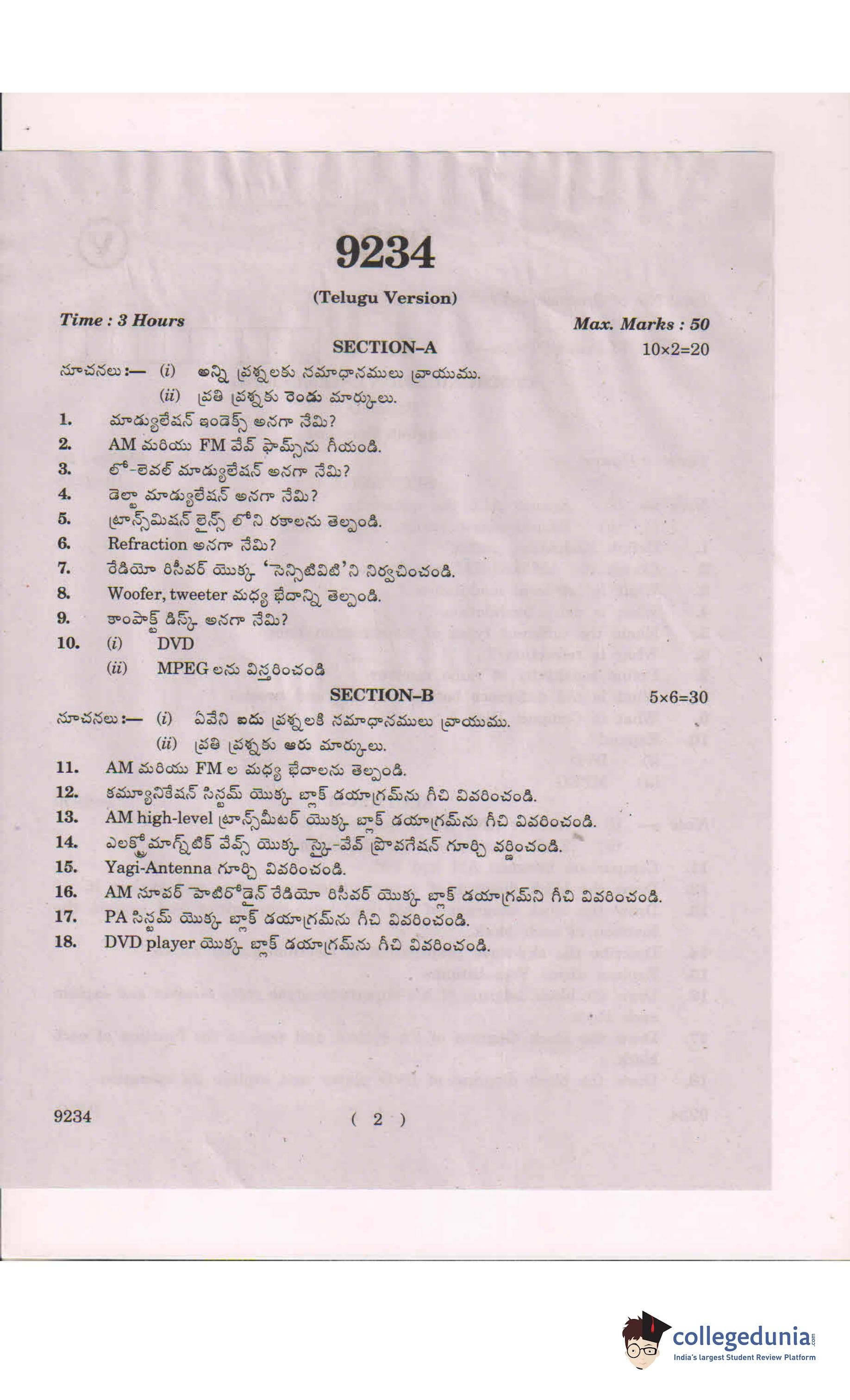 AP Intermediate 2nd year Communication Engineering Question Paper 2019 with Answer Key is available for download. The exam was conducted by the Andhra Pradesh Board of Intermediate Education (APBIE) . The medium of paper was English and Telugu.The question paper comprised a total of 18 questions divided among 2 sections.