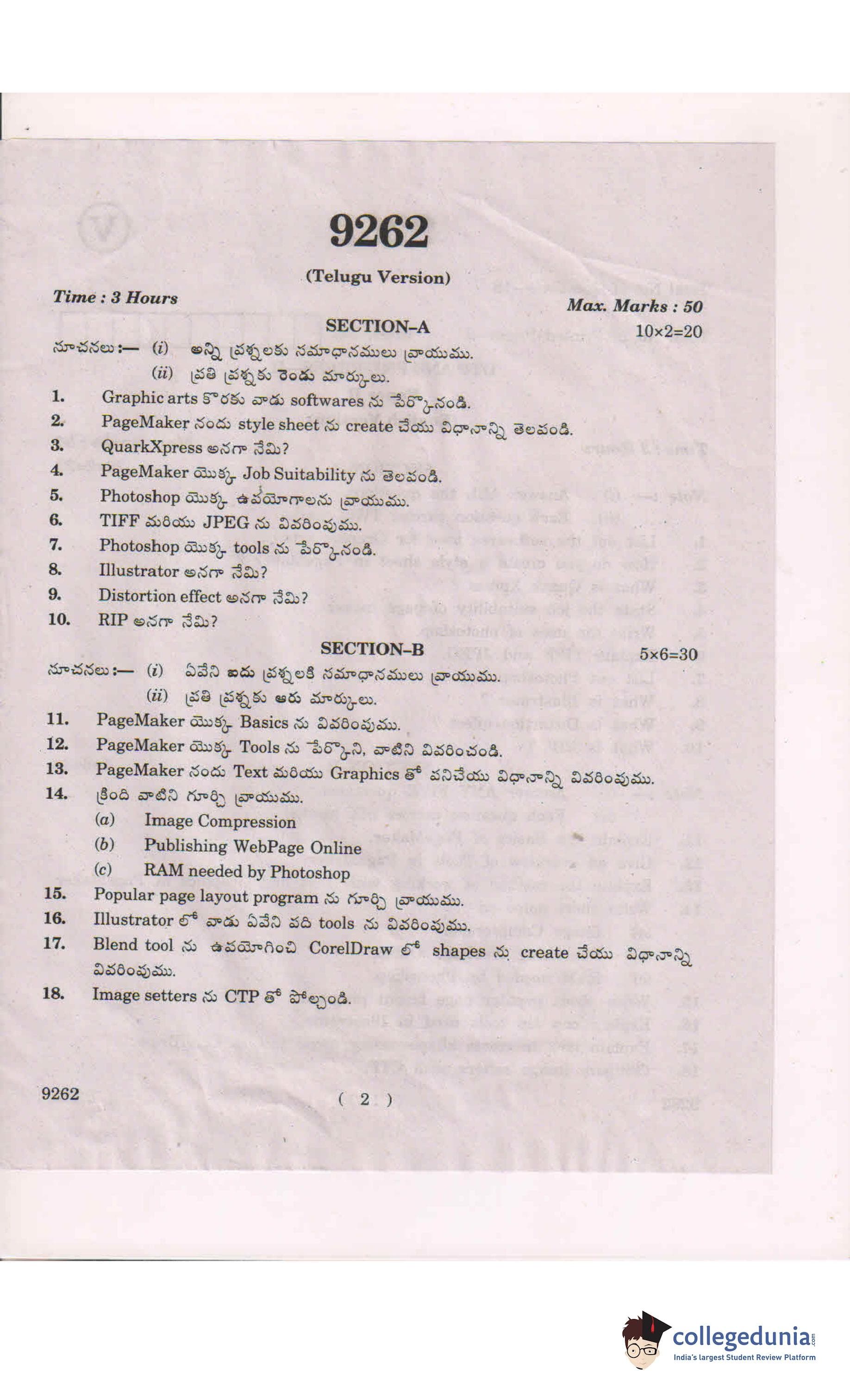 AP Intermediate 2nd year DTP and Pre-Press Question Paper 2019 with Answer Key