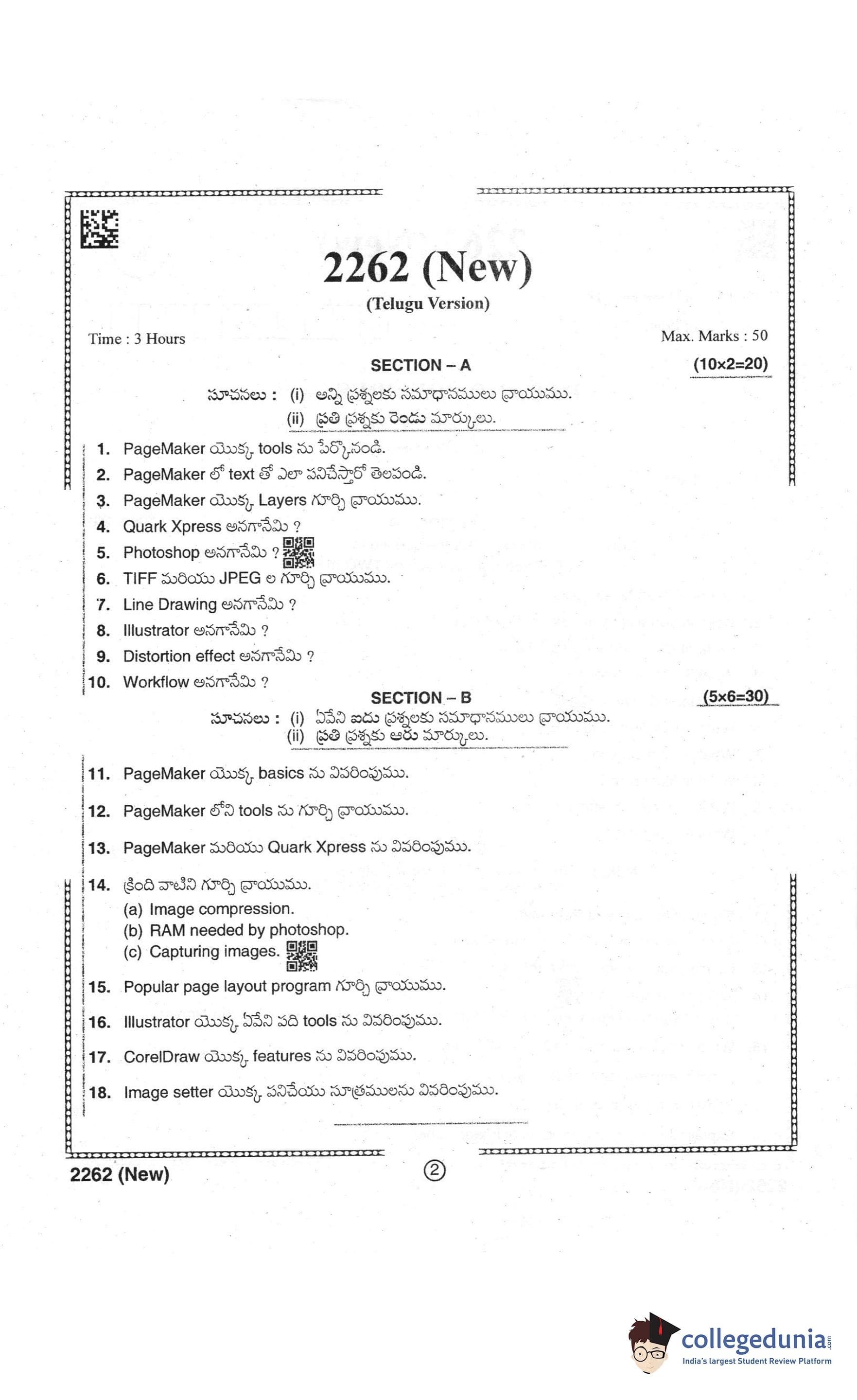 AP Intermediate 2nd year DTP Pre Press (New) Supplementary Question Paper 2021 with Answer Key is available for download. The exam was conducted by the Andhra Pradesh Board of Intermediate Education (APBIE) . The medium of paper was English and Telugu. The question paper comprised a total of 18 questions divided among 2 sections.