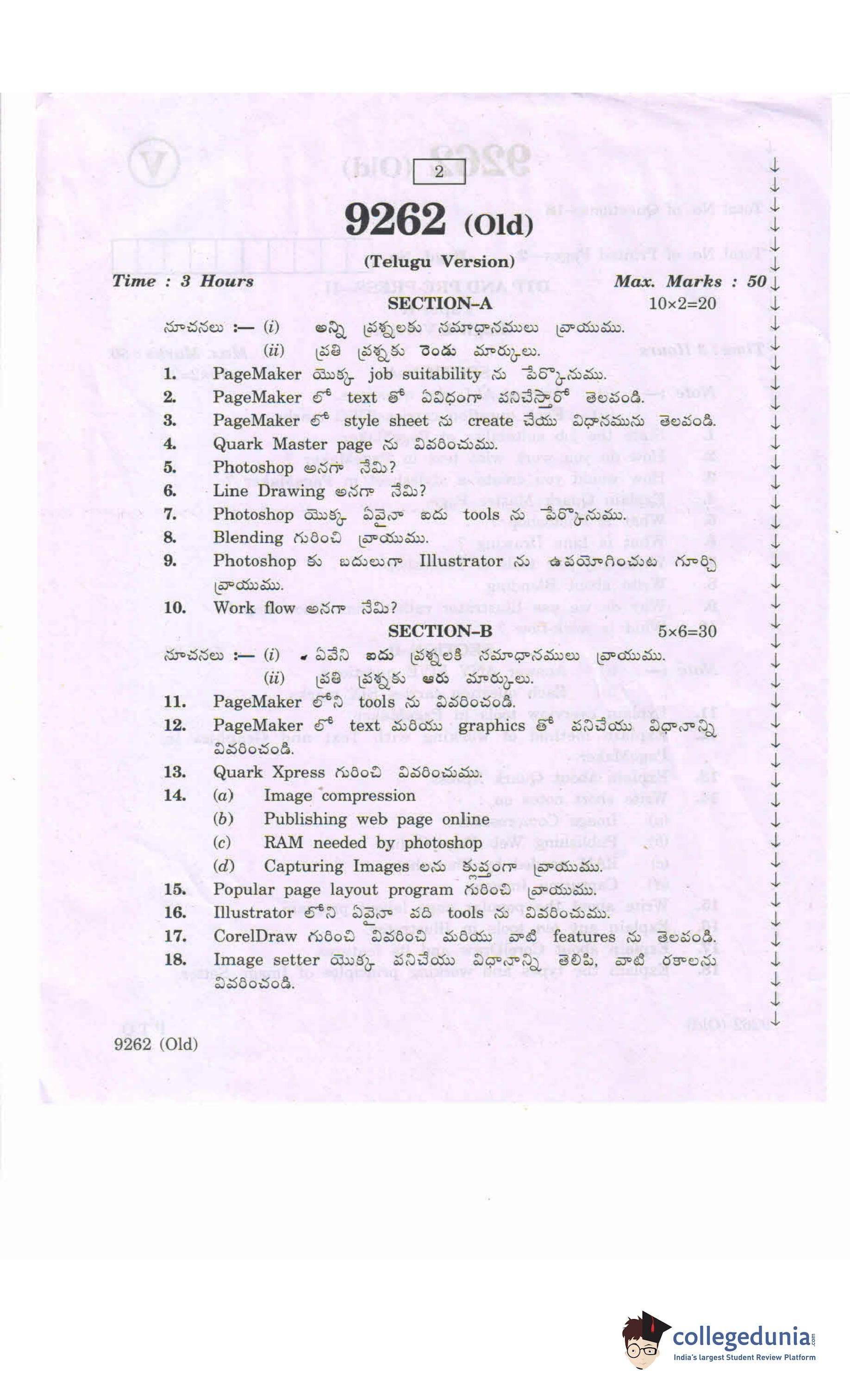 AP Intermediate 2nd year DTP PrePress (Old) Question Paper 2020 with Answer Key (March 11)