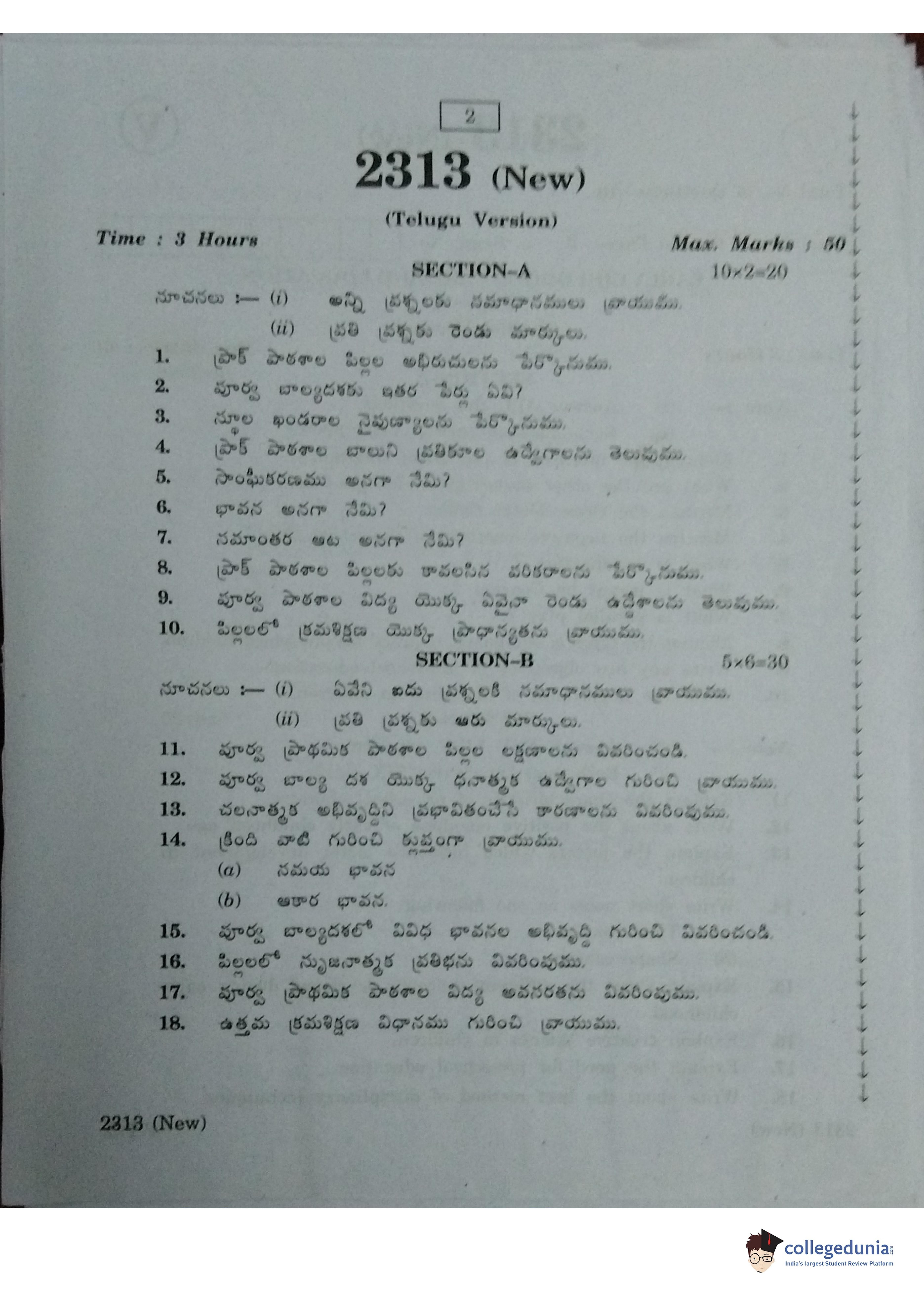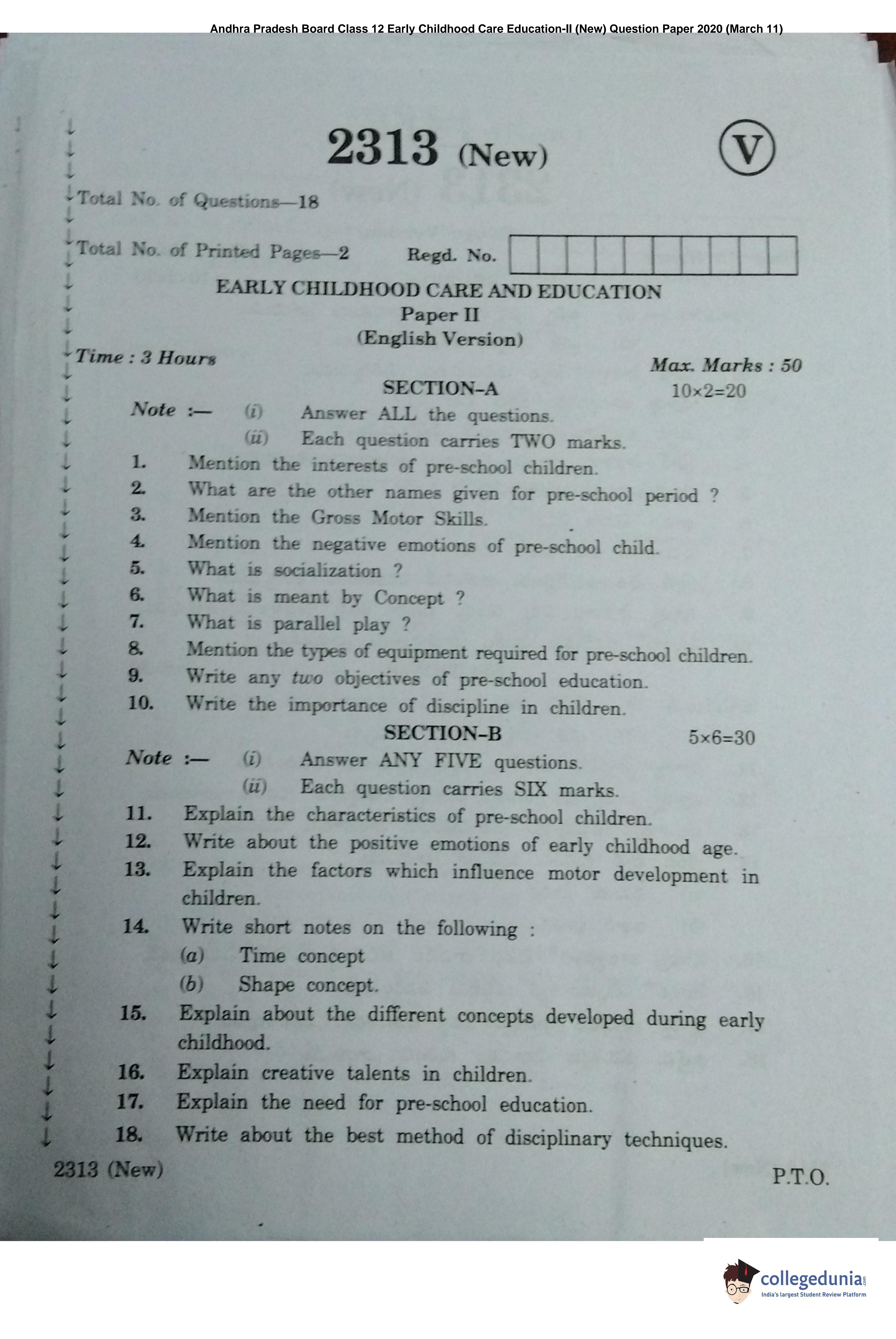 AP Intermediate 2nd year Early Childhood Care Education (New) Question Paper 2020 with Answer Key (March 11)
