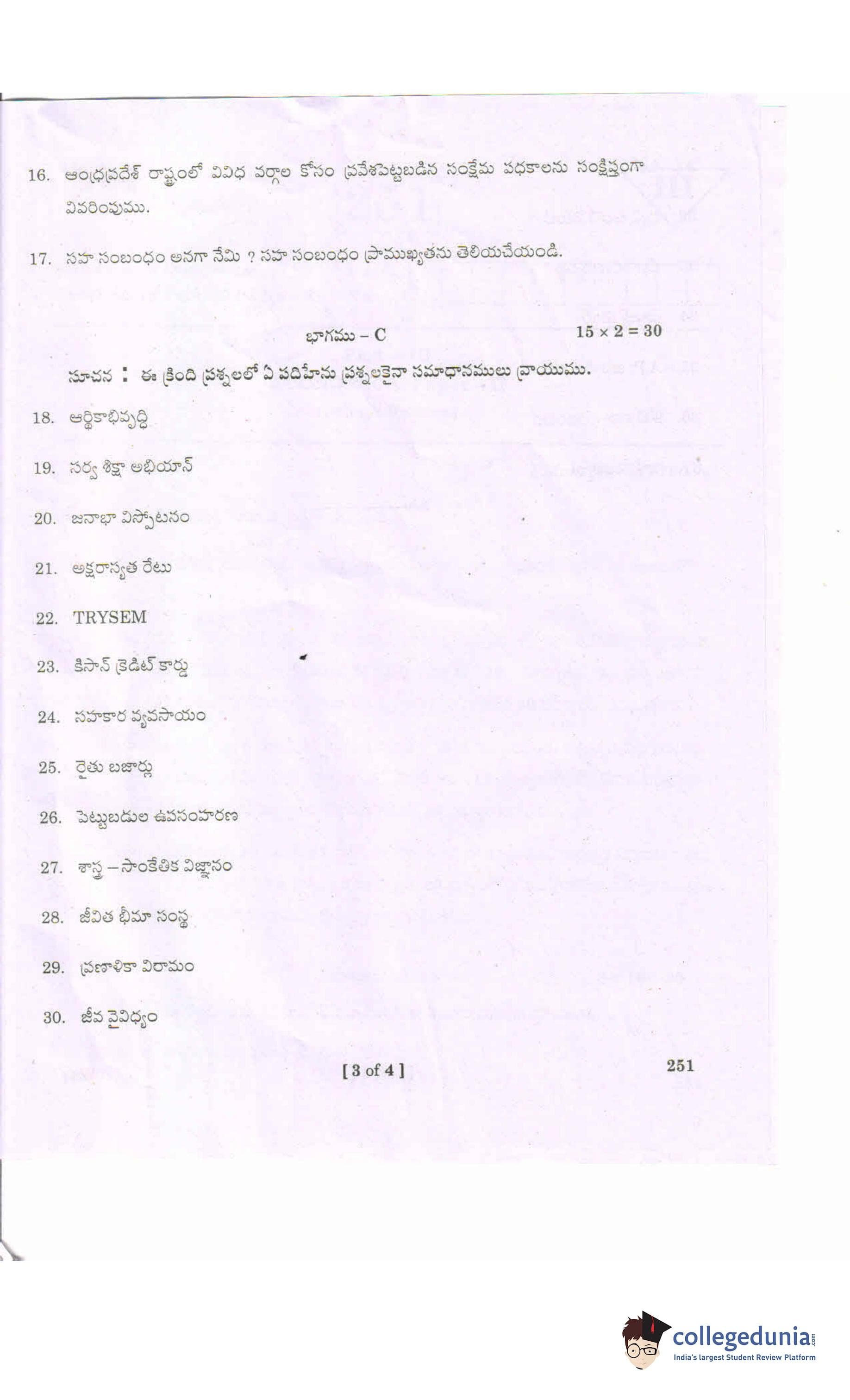 AP Intermediate 2nd year Economics (Telugu) 251 Question Paper 2020 with Answer Key (March 16)