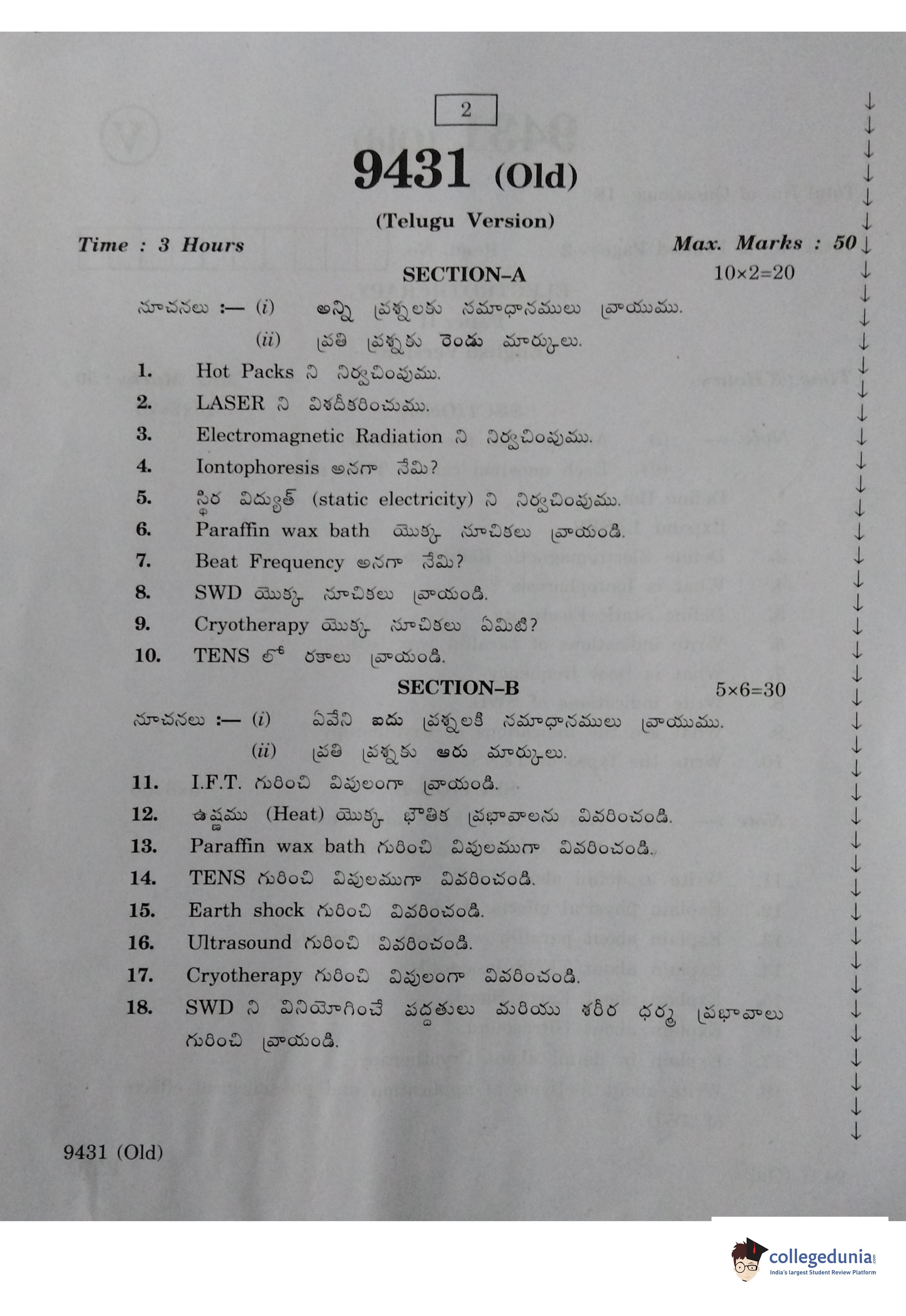 AP Intermediate 2nd year Electro Therapy (Old) Question Paper 2020 with Answer Key (March 16)
