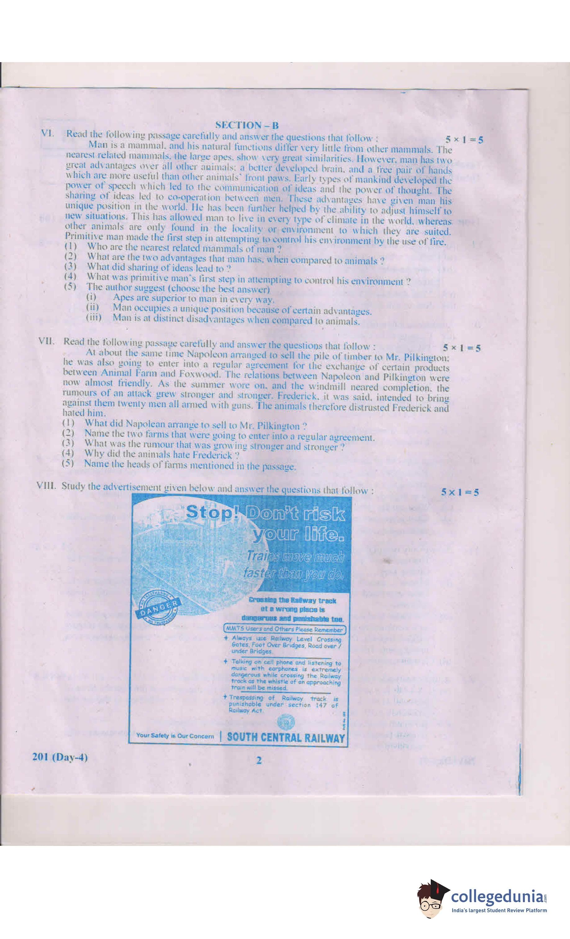 AP Intermediate 2nd year English Question Paper 2019 with Answer Key 201 is available for download. The exam was conducted by the Andhra Pradesh Board of Intermediate Education (APBIE) on March 2, 2019 in the Morning Session 9 AM to 12 PM. The medium of paper was English.The question paper comprised a total of 17 questions divided among 3 sections.