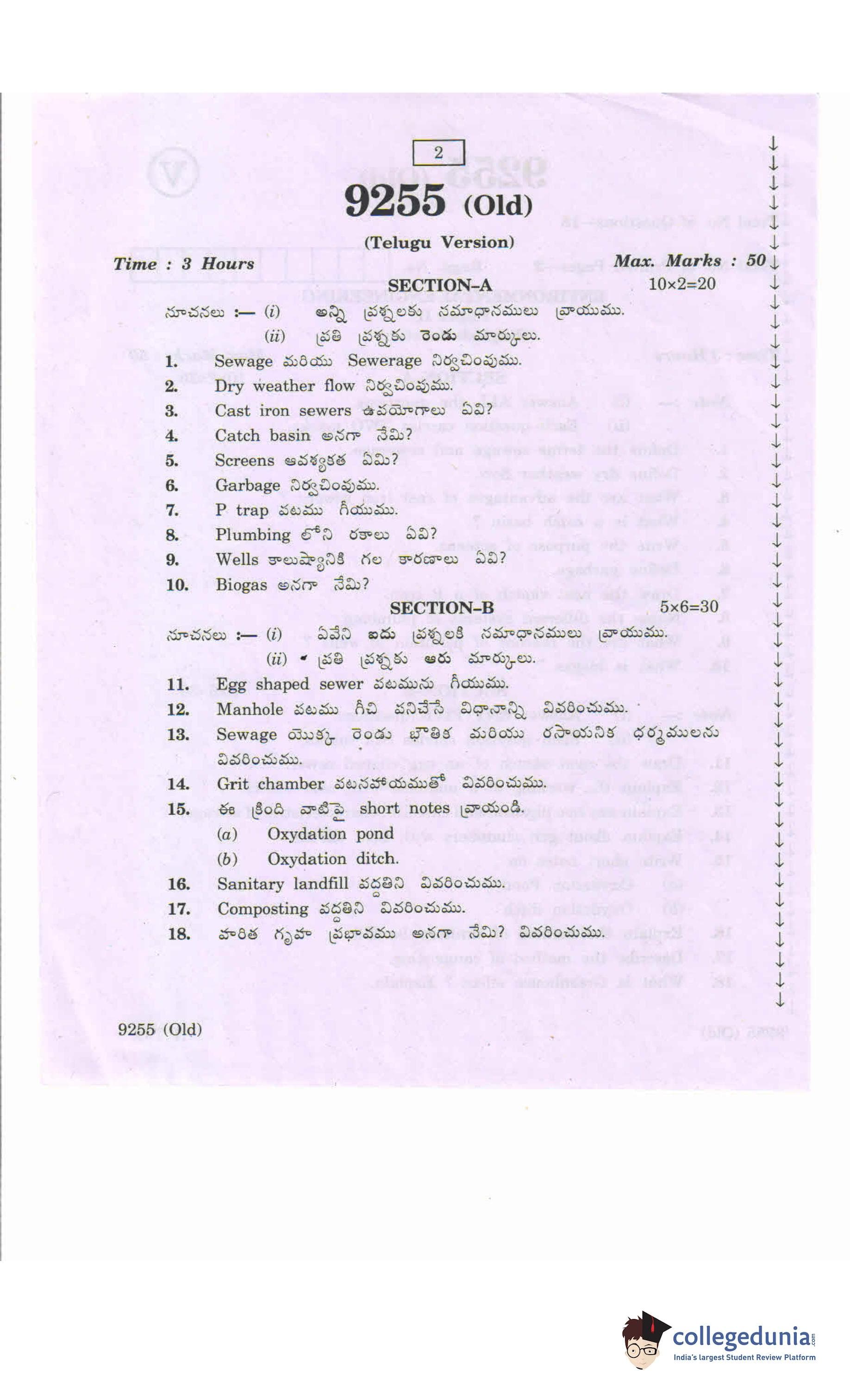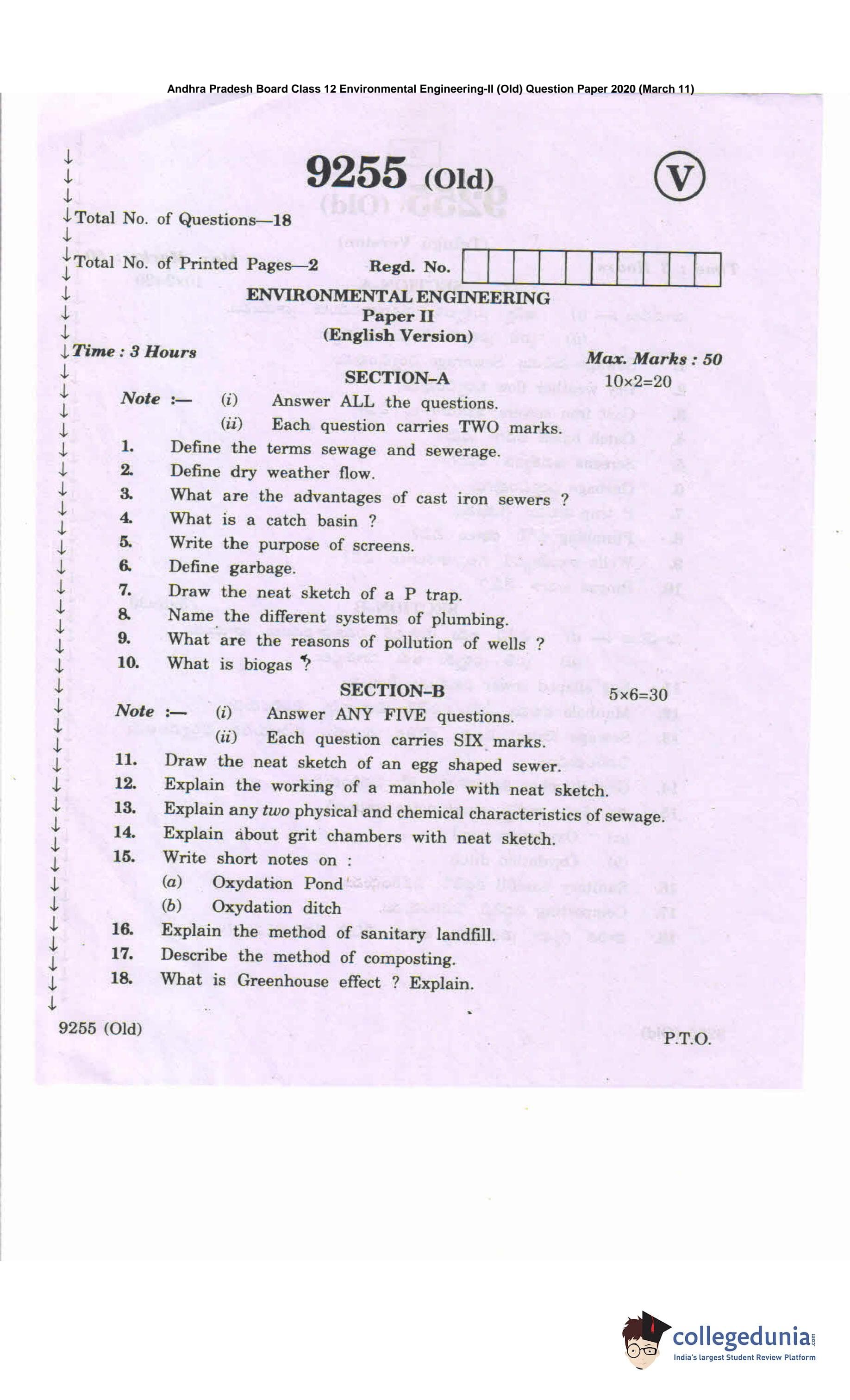 AP Intermediate 2nd year Environmental Engineering (Old) Question Paper 2020 with Answer Key (March 11)