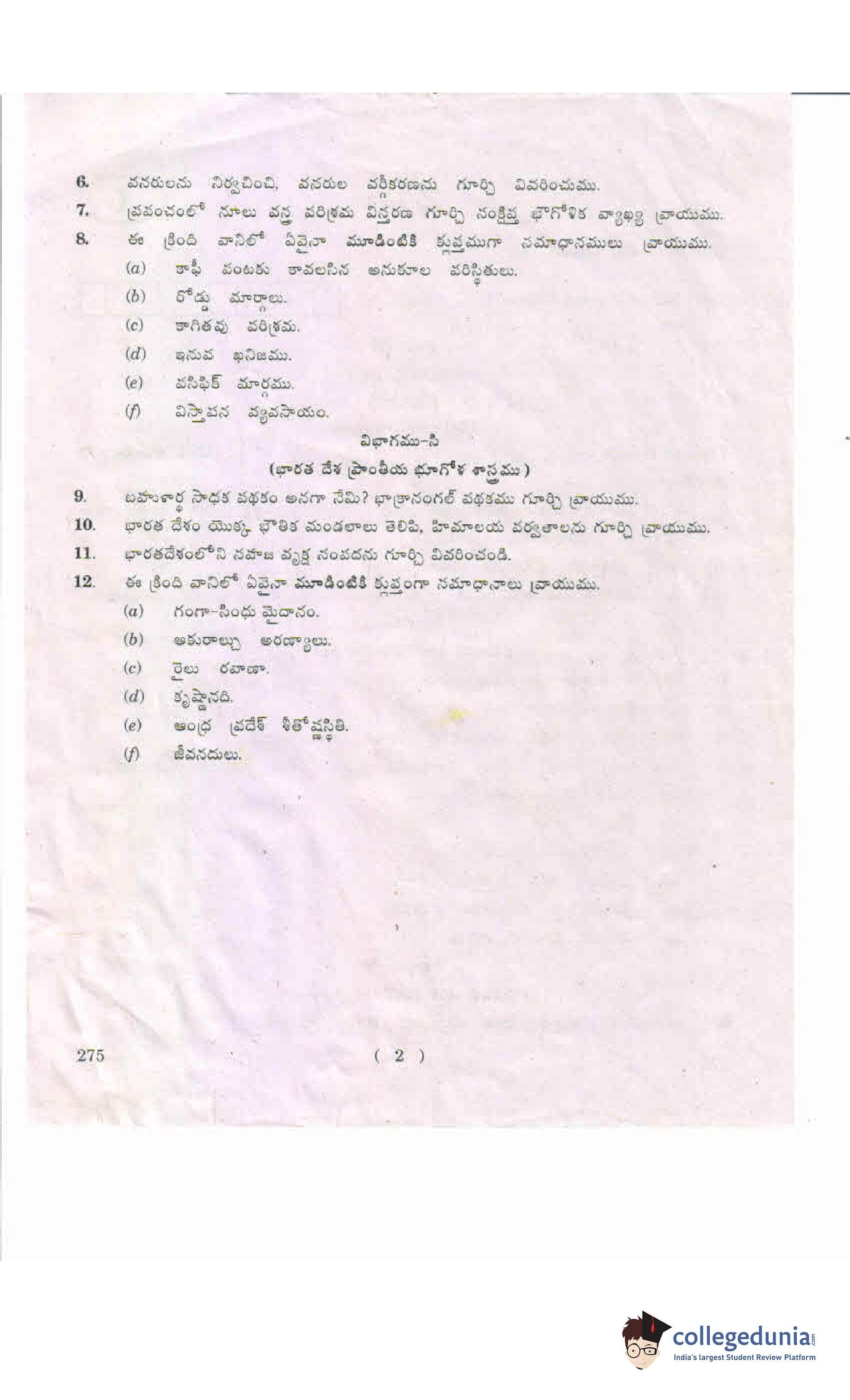 AP Intermediate 2nd year Geography (Telugu) 275 Supplementary Question Paper 2019 (May 22)
