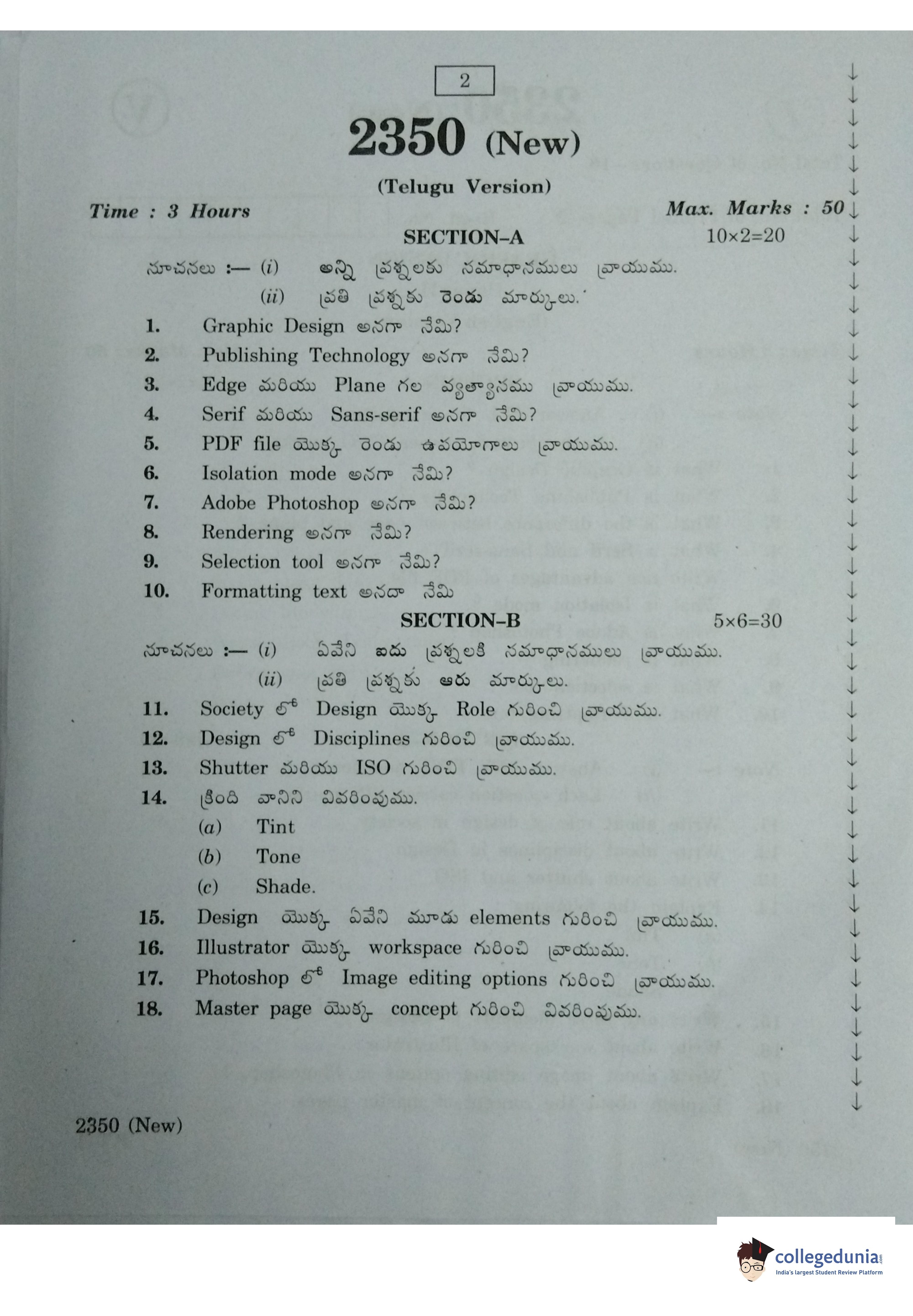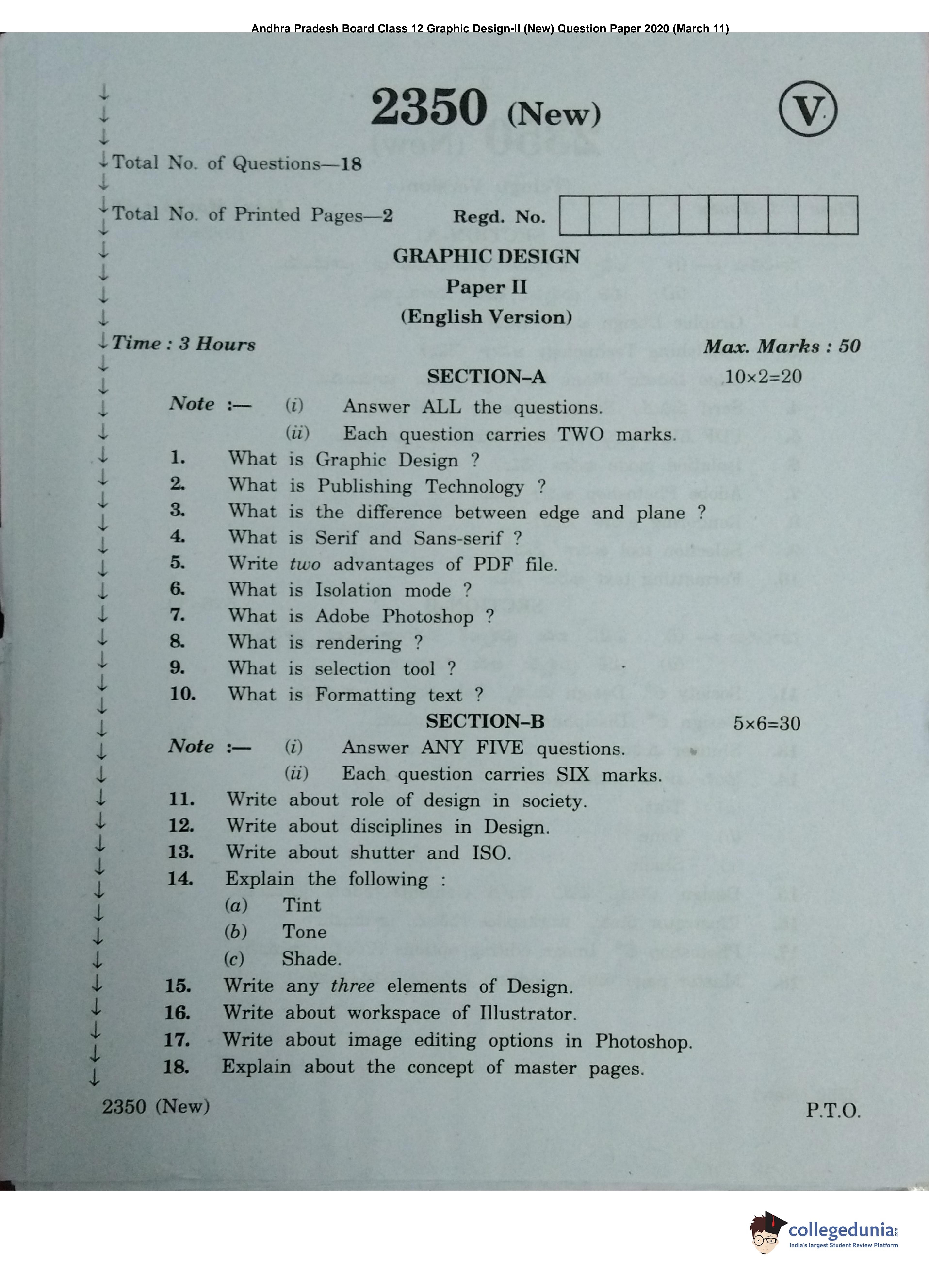 AP Intermediate 2nd year Graphic Design (New) Question Paper 2020 with Answer Key (March 11)
