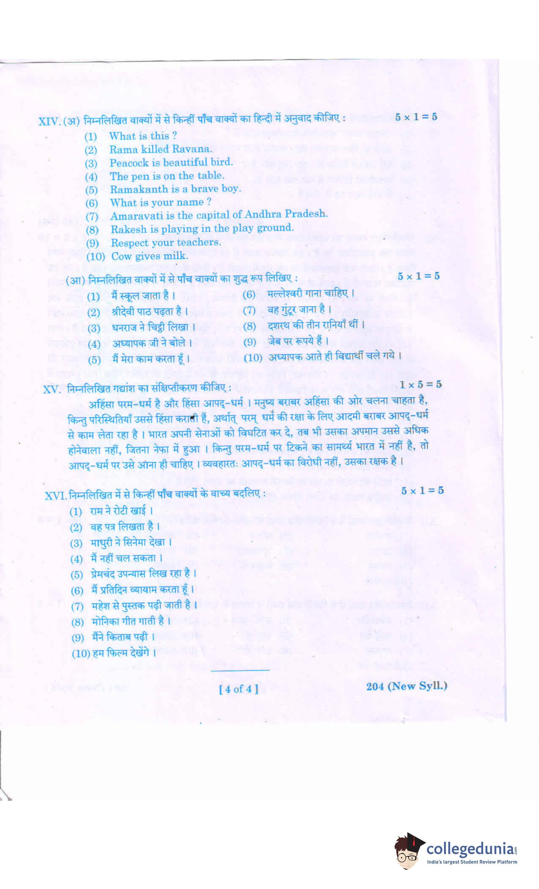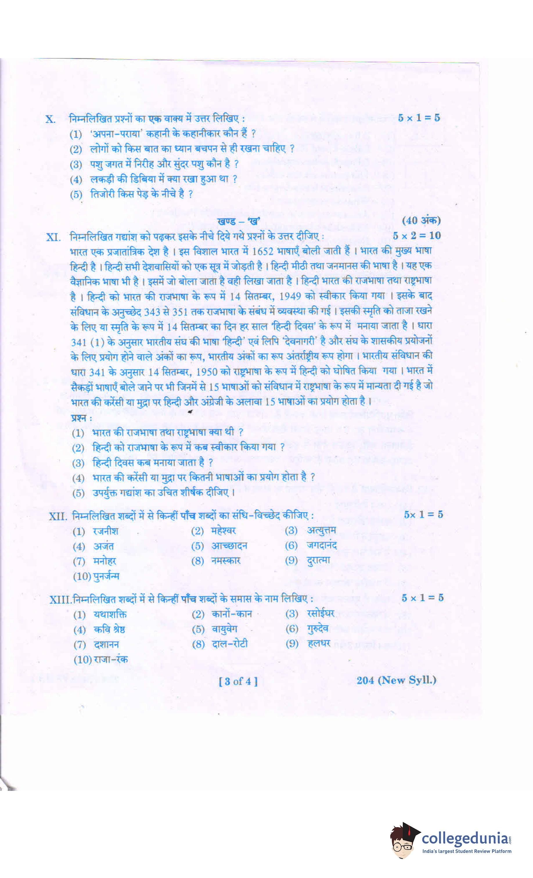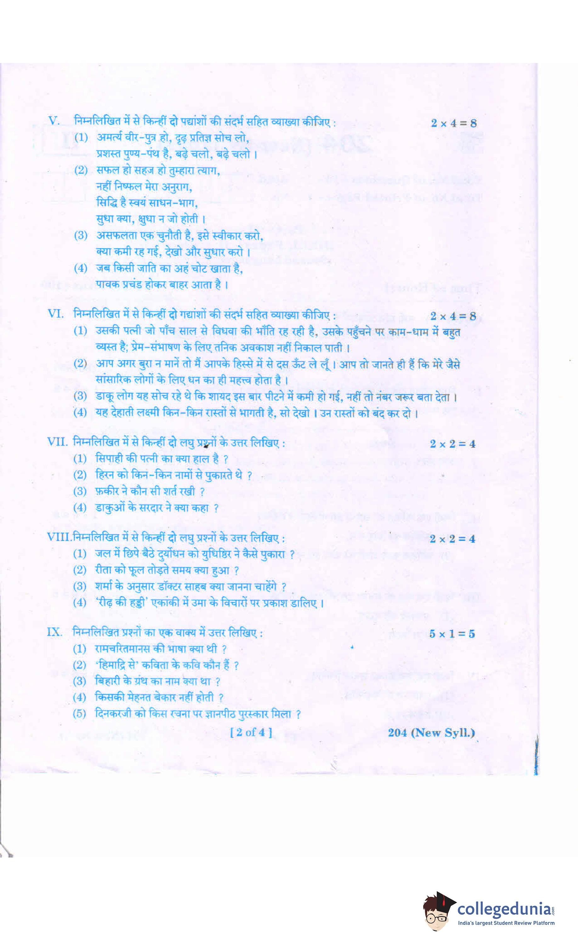 AP Intermediate 2nd year Hindi (New) 204 Question Paper 2020 with Answer Key (March 5)