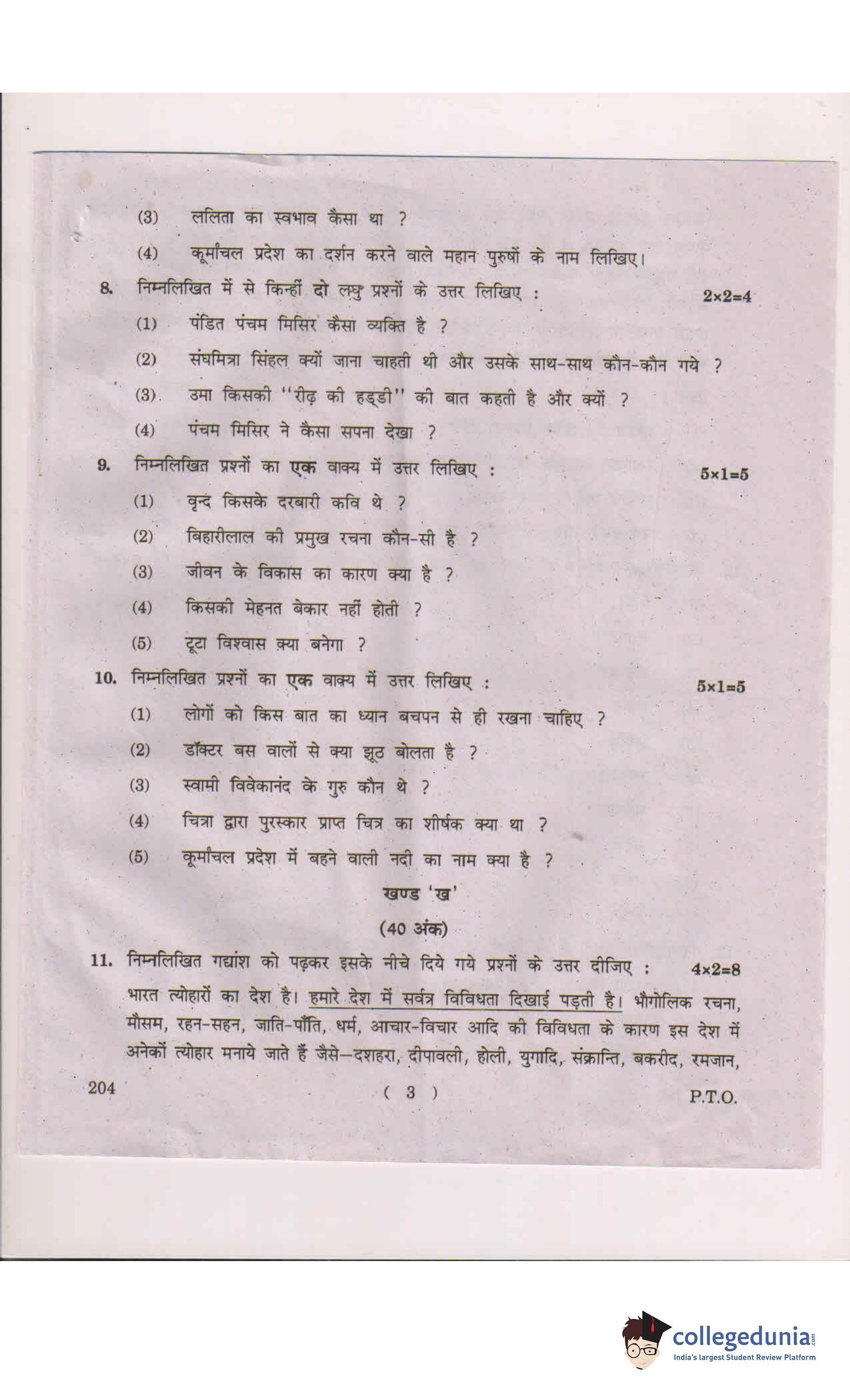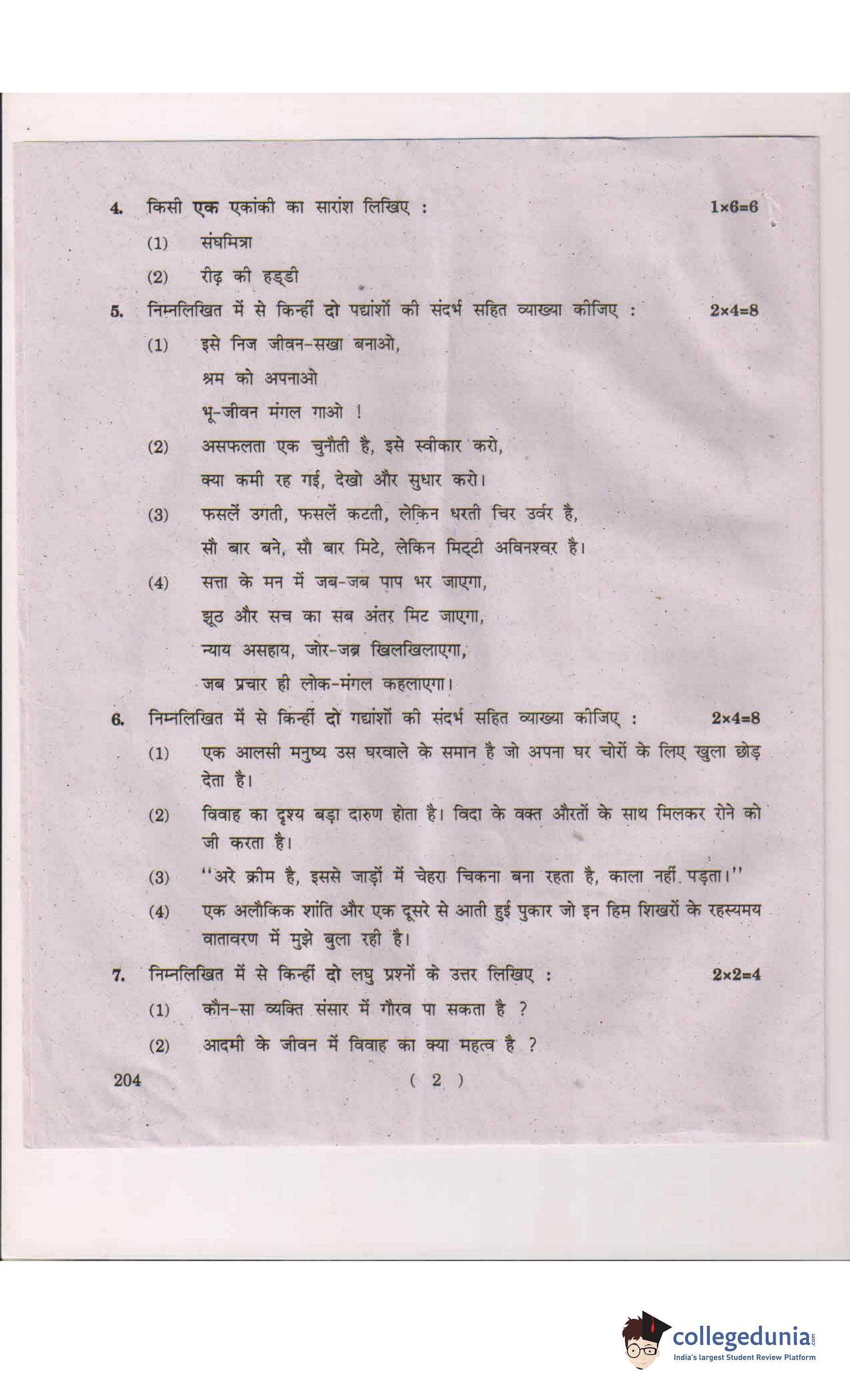AP Intermediate 2nd year Hindi Question Paper 2018 with Answer Key is available for download. The exam was conducted by the Andhra Pradesh Board of Intermediate Education (APBIE) on March 1, 2018 in the Morning Session 9 AM to 12 PM. The medium of paper was Hindi.The question paper comprised a total of 16 questions divided among 2 sections.