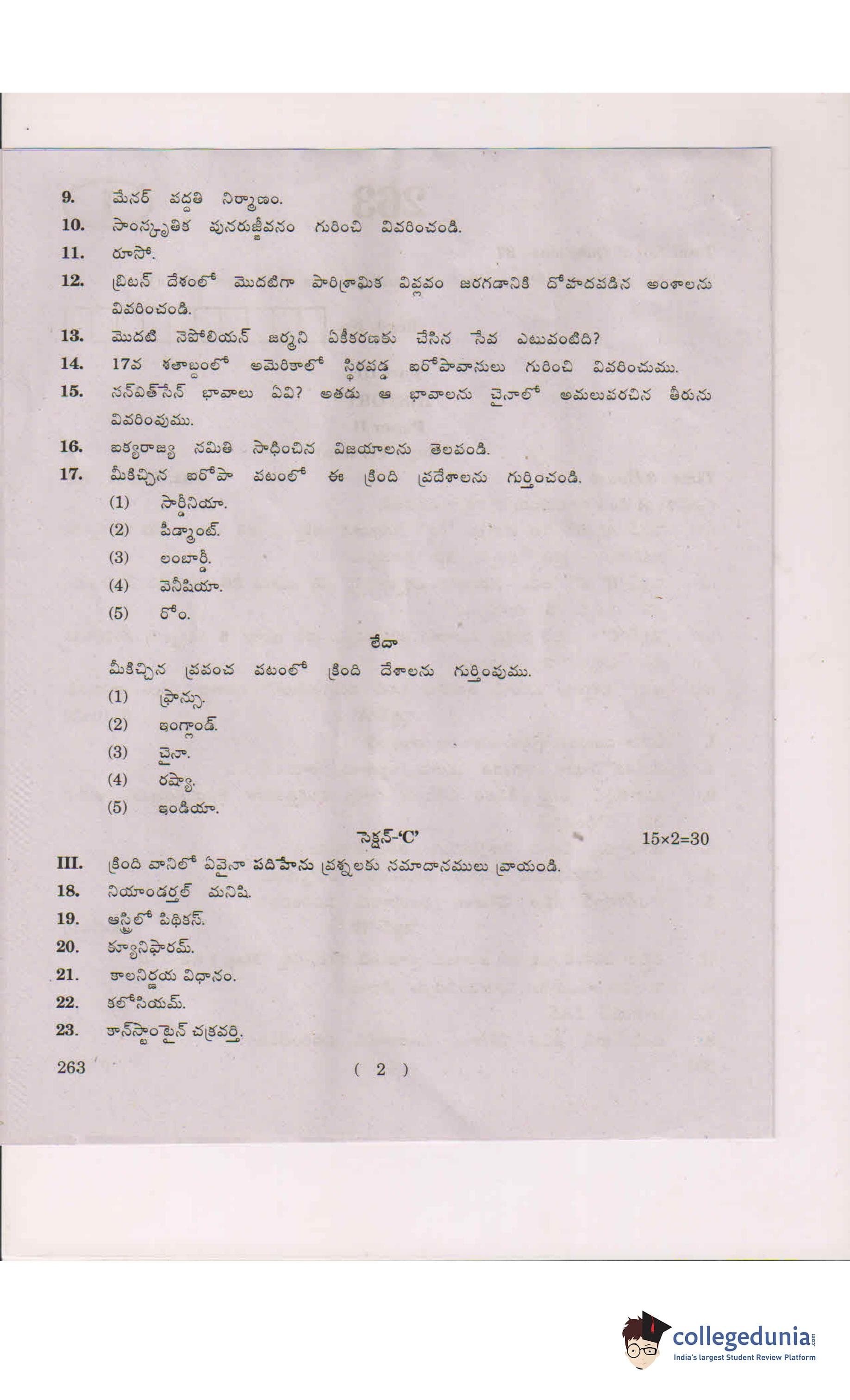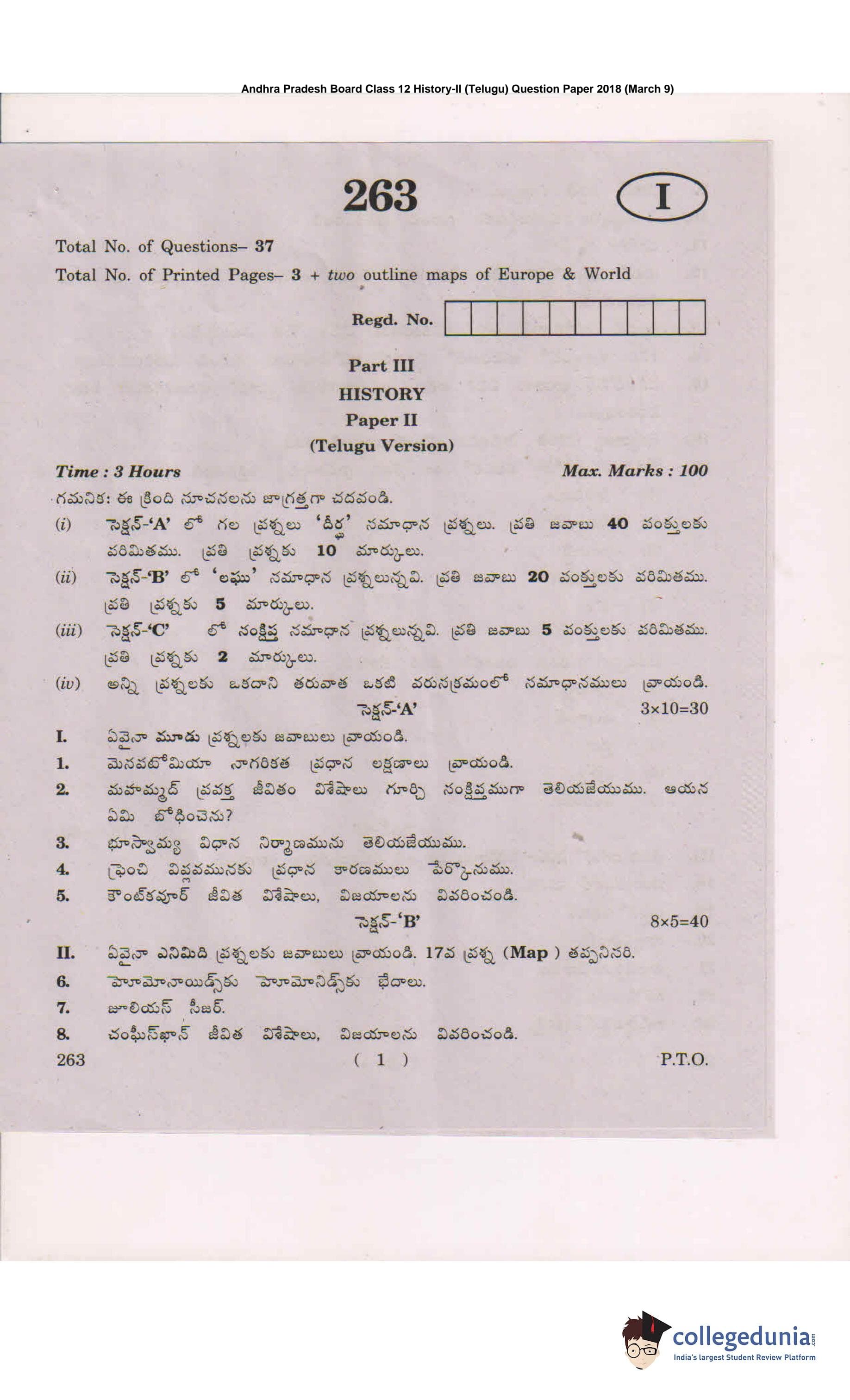 AP Intermediate 2nd year History (Telugu) Question Paper 2018 with Answer Key (March 9)