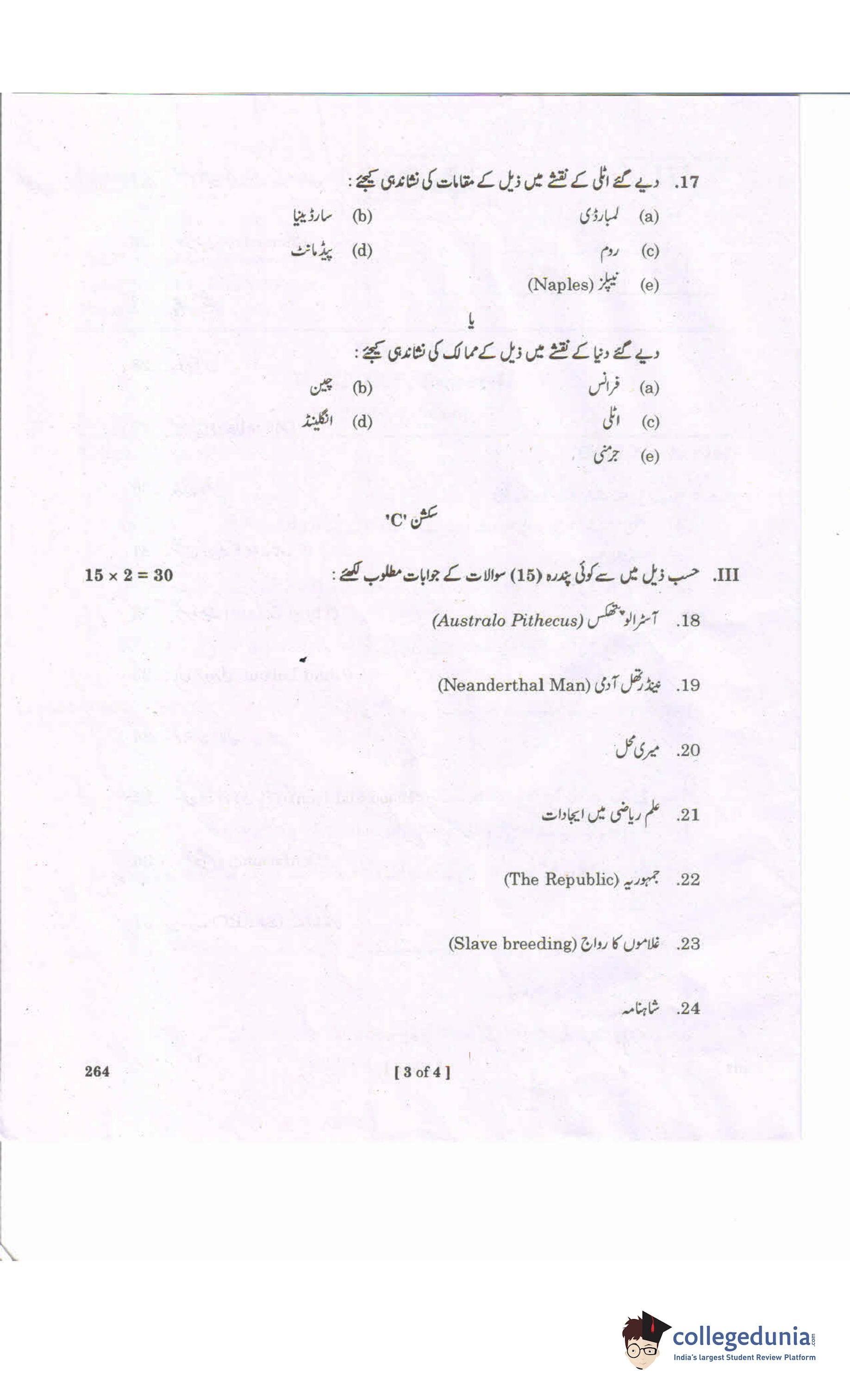 AP Intermediate 2nd year History (Urdu) 264 Question Paper 2020 with Answer Key (March 13)