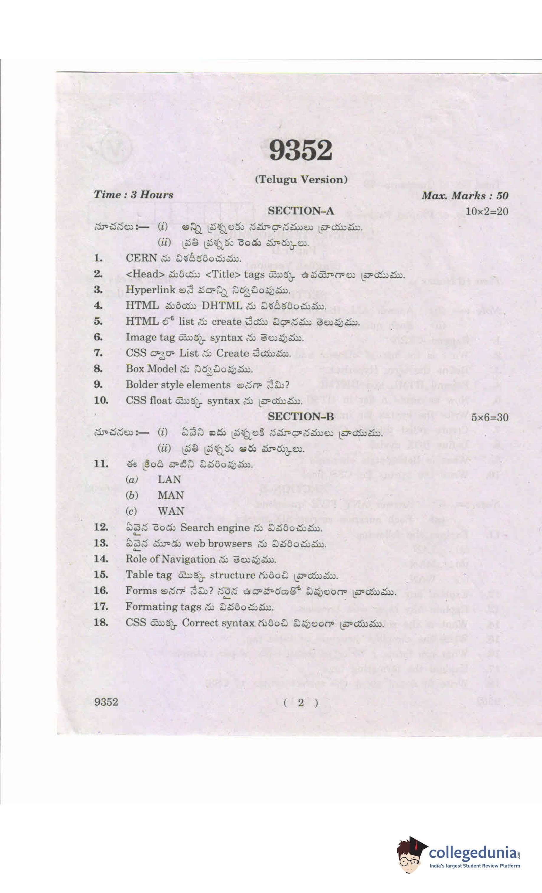 AP Intermediate 2nd year Internet Technologies Question Paper 2019 with Answer Key