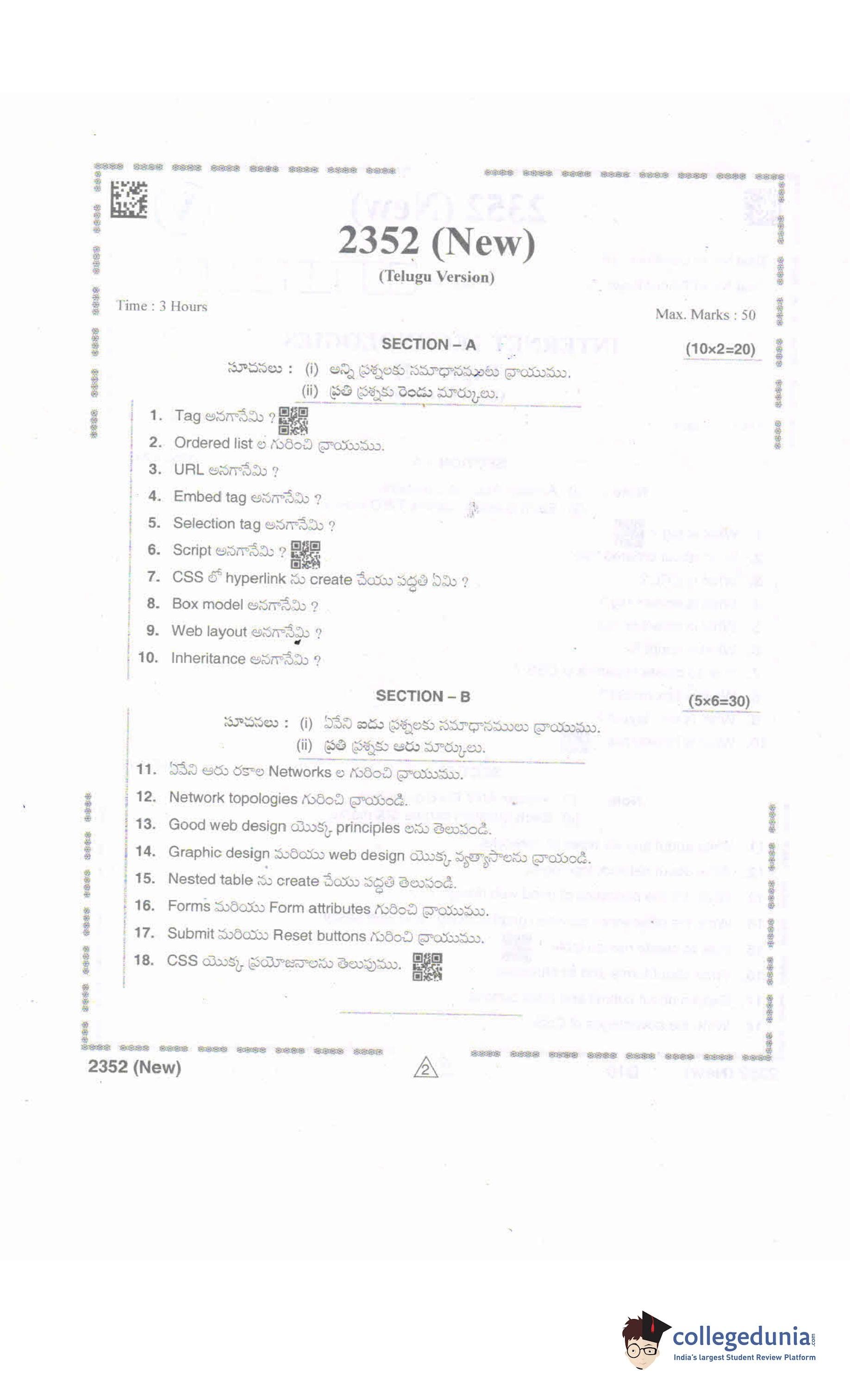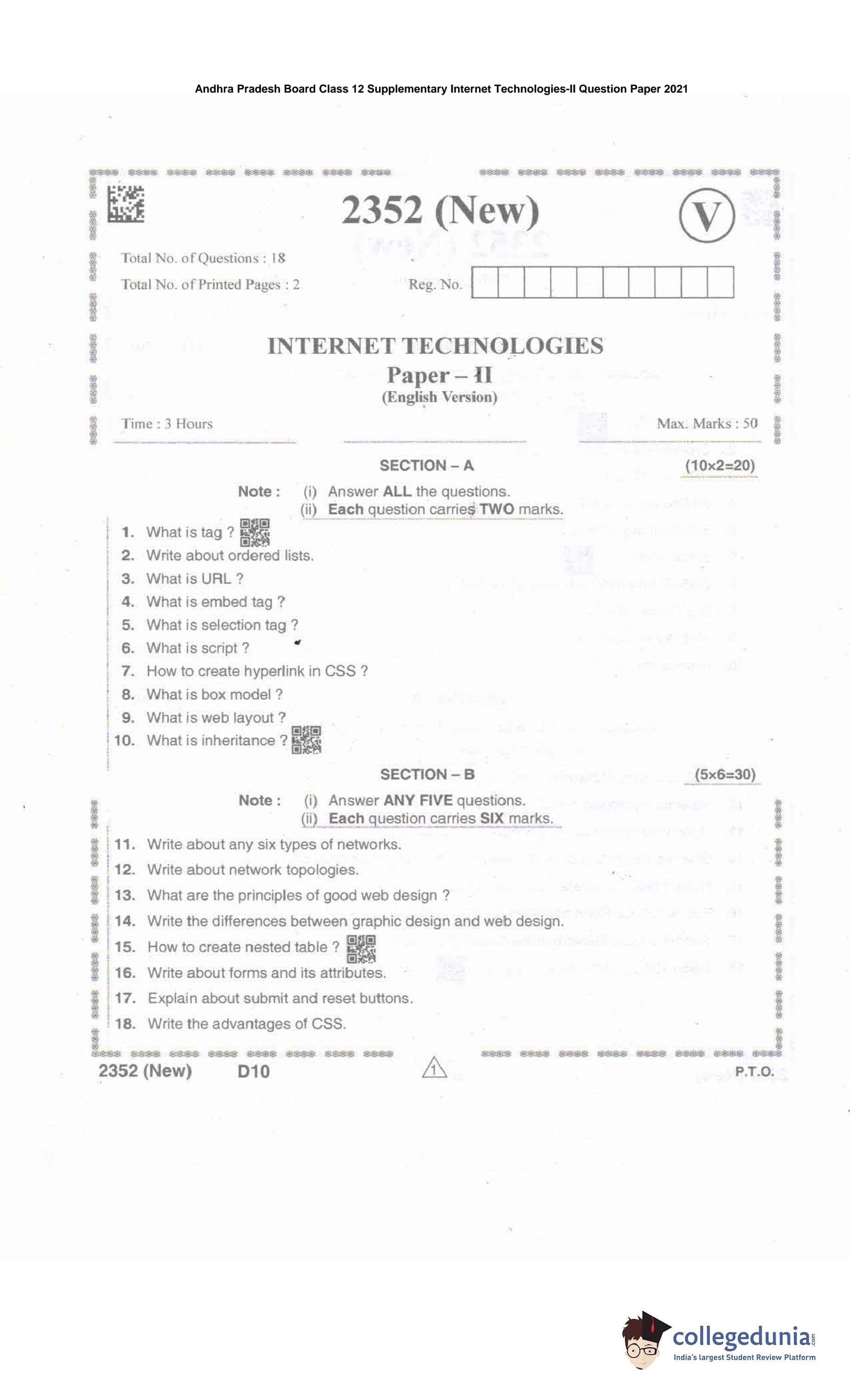 AP Intermediate 2nd year Internet Technologies Supplementary Question Paper 2021 with Answer Key is available for download. The exam was conducted by the Andhra Pradesh Board of Intermediate Education (APBIE). The medium of paper was English and Telugu. The question paper comprised a total of 18 questions divided among 2 sections.