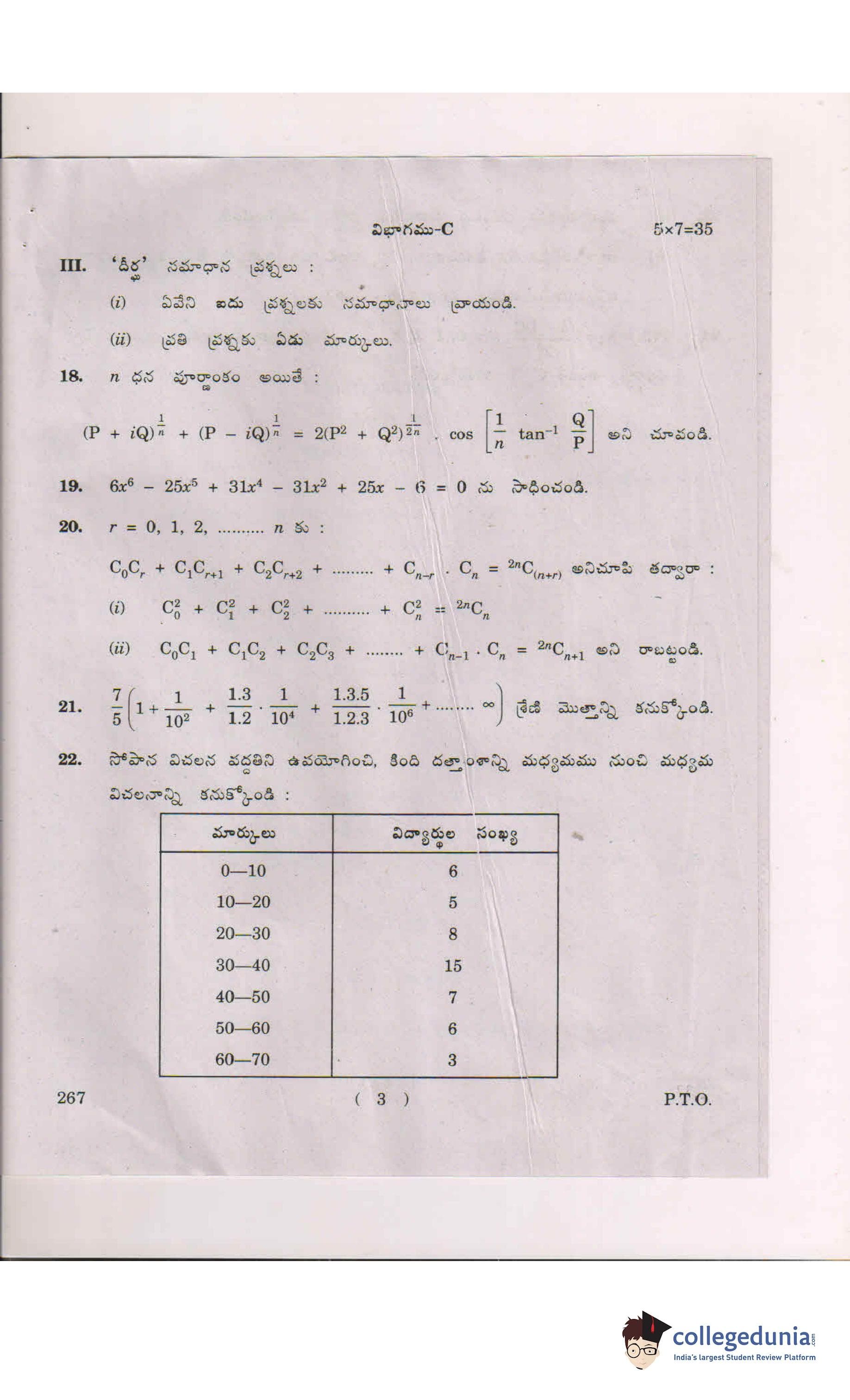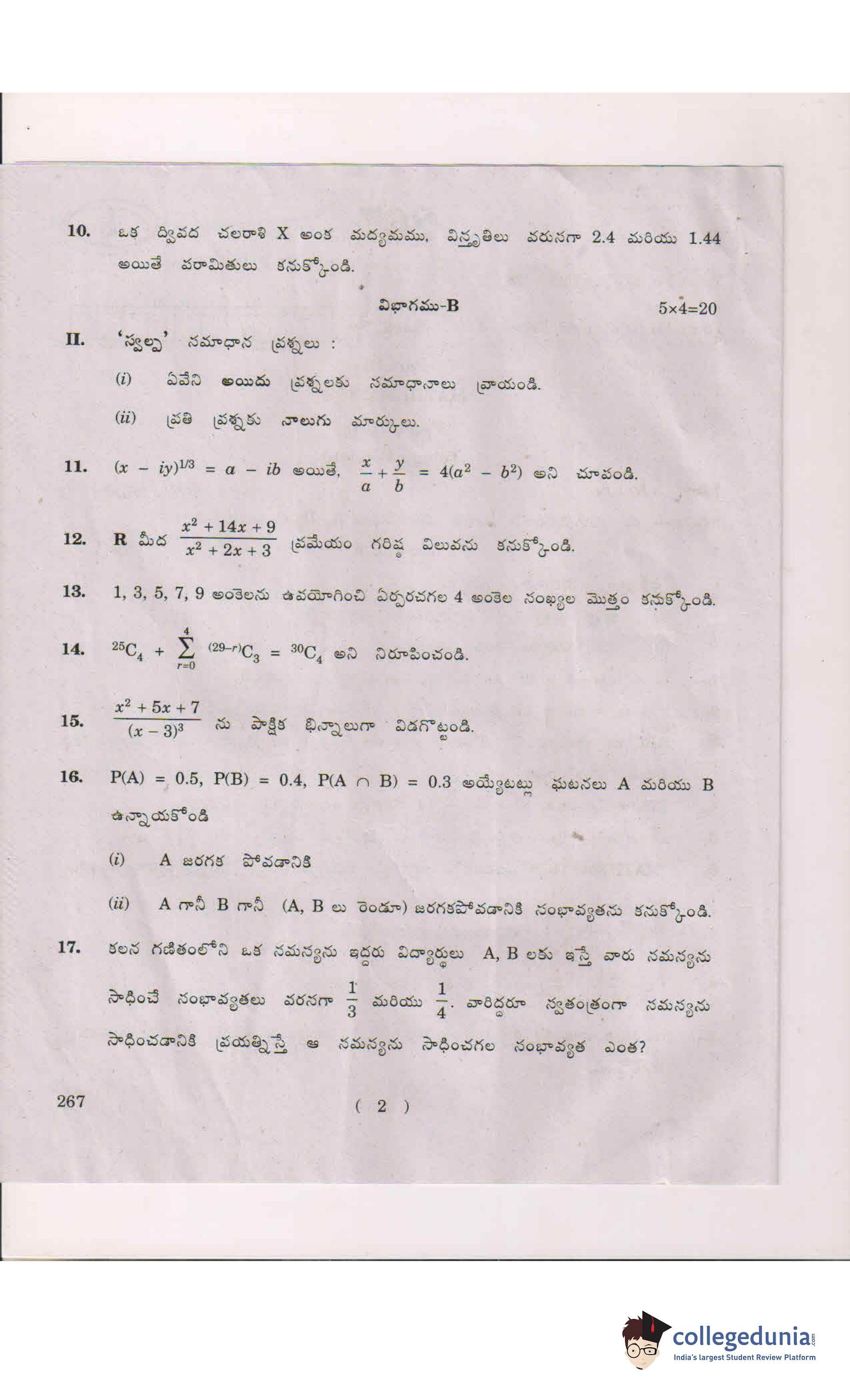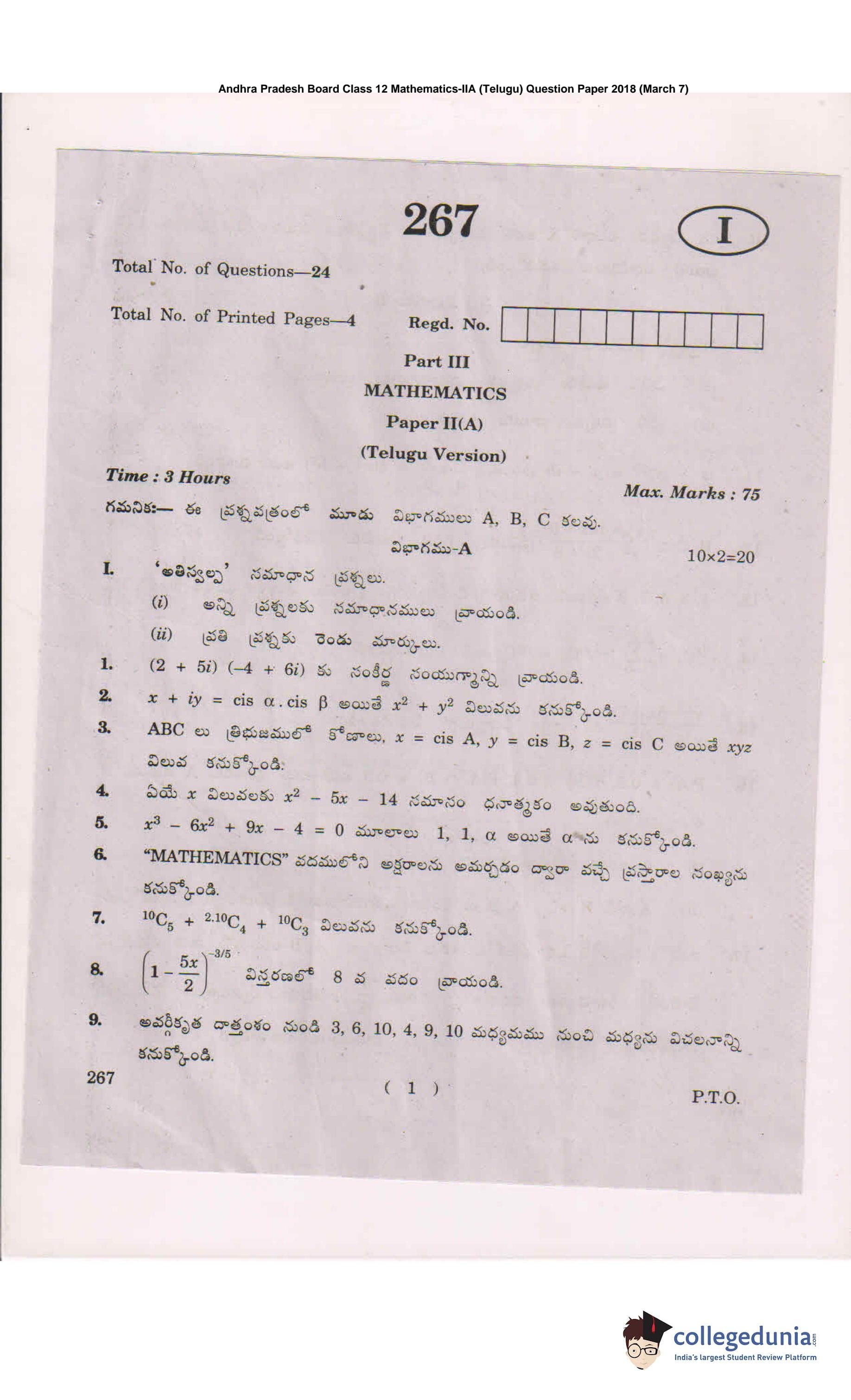 AP Intermediate 2nd year MathematicsA (Telugu) Question Paper 2018 with Answer Key (March 7)