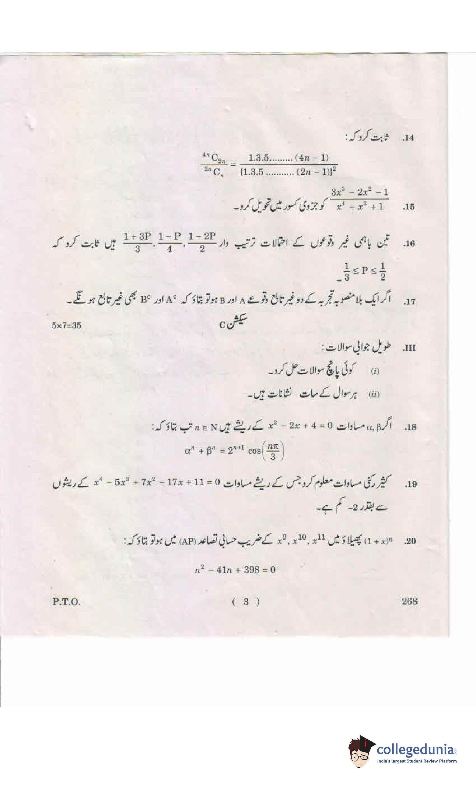 AP Intermediate 2nd year Mathematics A (Urdu) 268 Supplementary Question Paper 2019 (May 16)