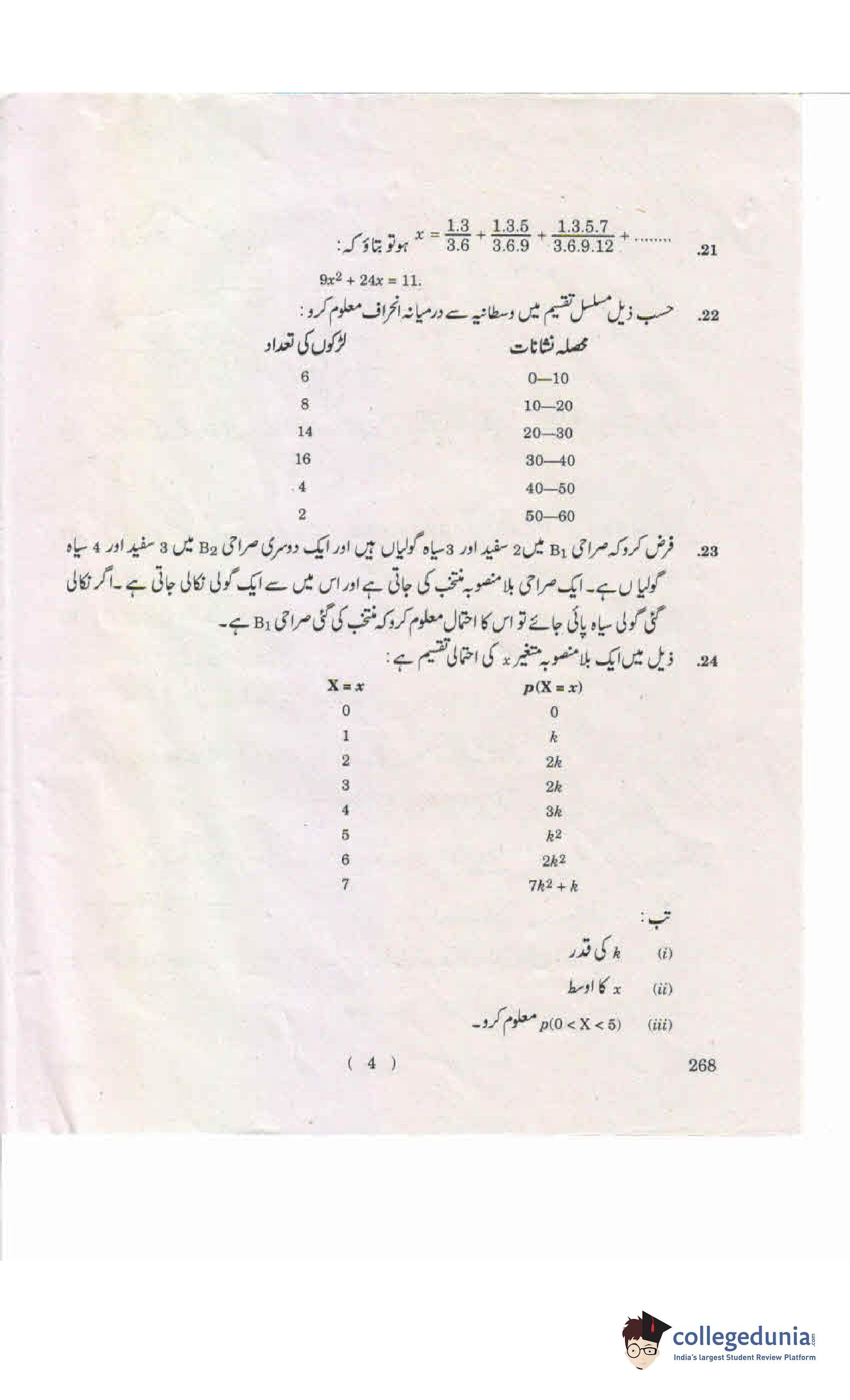 AP Intermediate 2nd year Mathematics A (Urdu) Supplementary Question Paper 2019 with Answer Key 268 is available for download. The exam was conducted by the Andhra Pradesh Board of Intermediate Education (APBIE) on May 16, 2019 in the Afternoon Session 2.30 PM to 5.30 PM. The medium of paper was Urdu. The question paper comprised a total of 24 questions divided among 3 sections.