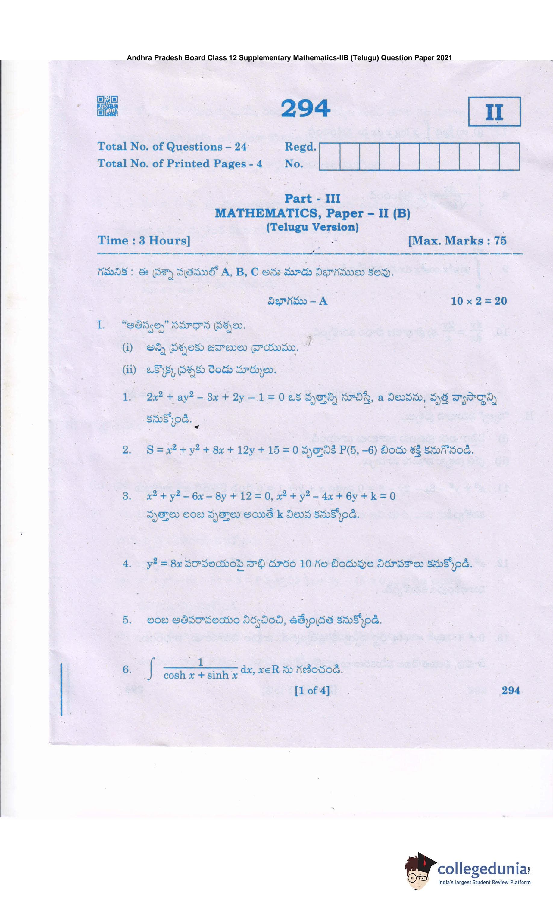 | AP Intermediate 2nd year MathematicsB (Telugu) Question Paper 2021 PDF | AP Intermediate 2nd year MathematicsB (Telugu) Answer Key 2021 PDF |