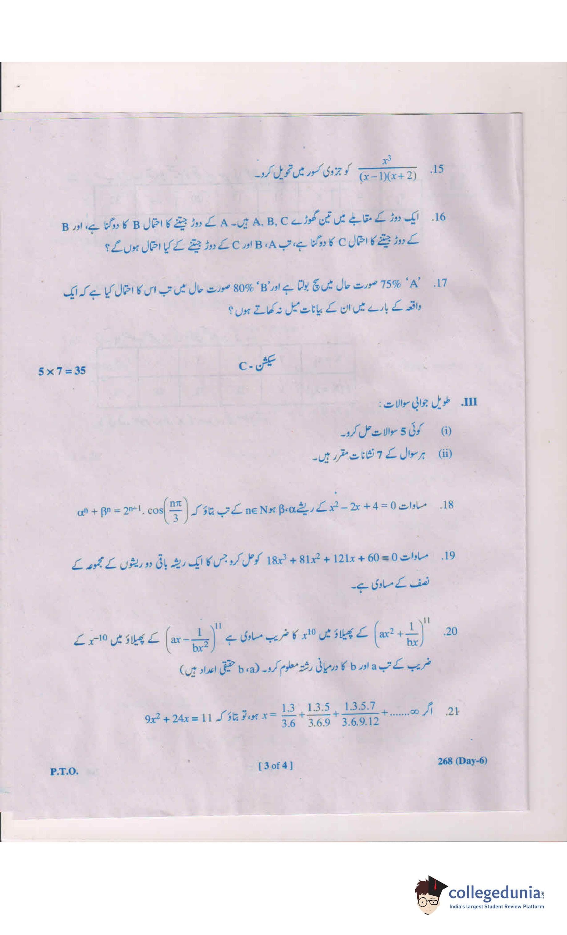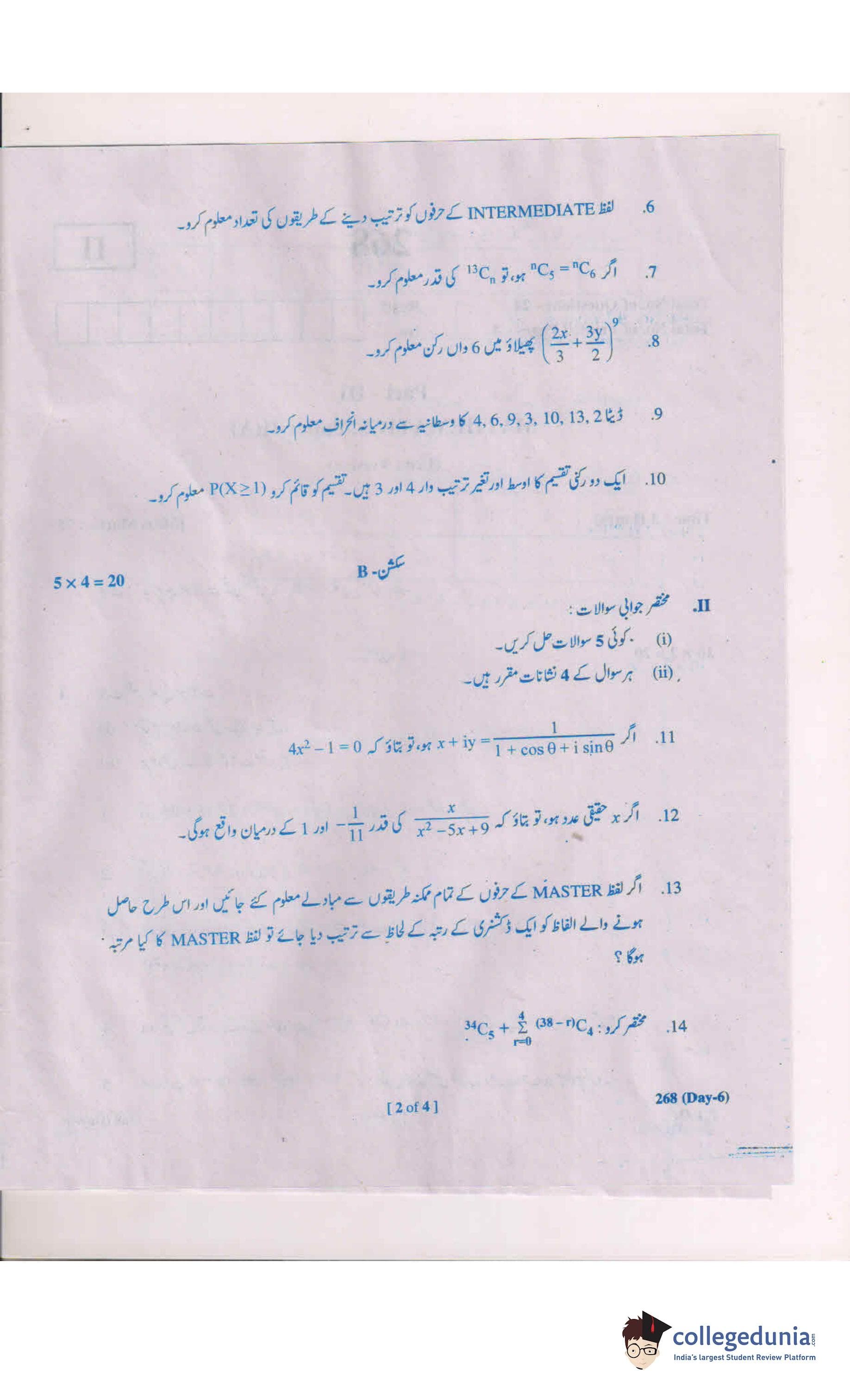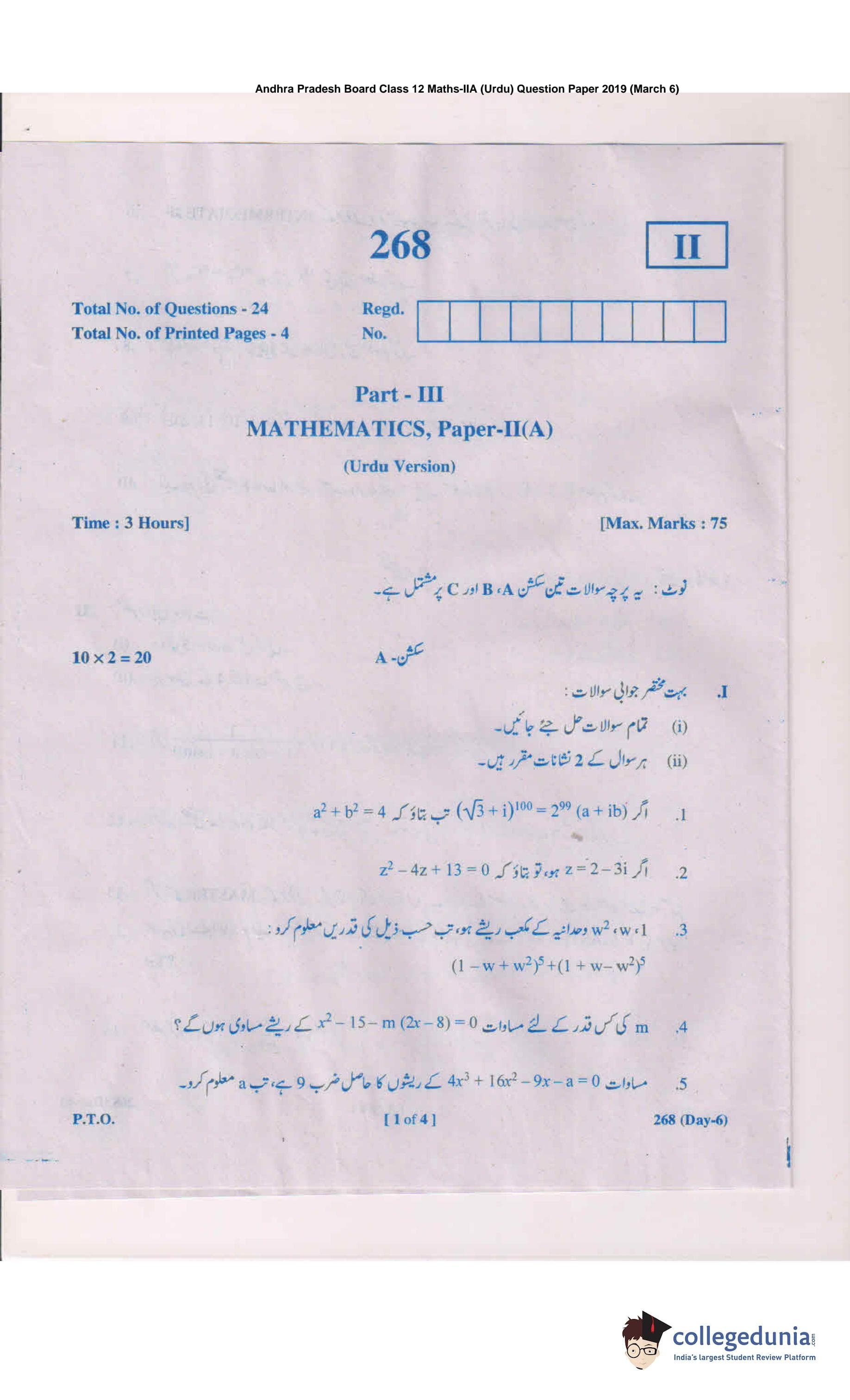 AP Intermediate 2nd year MathsA (Urdu) 268 Question Paper 2019 with Answer Key (March 6)