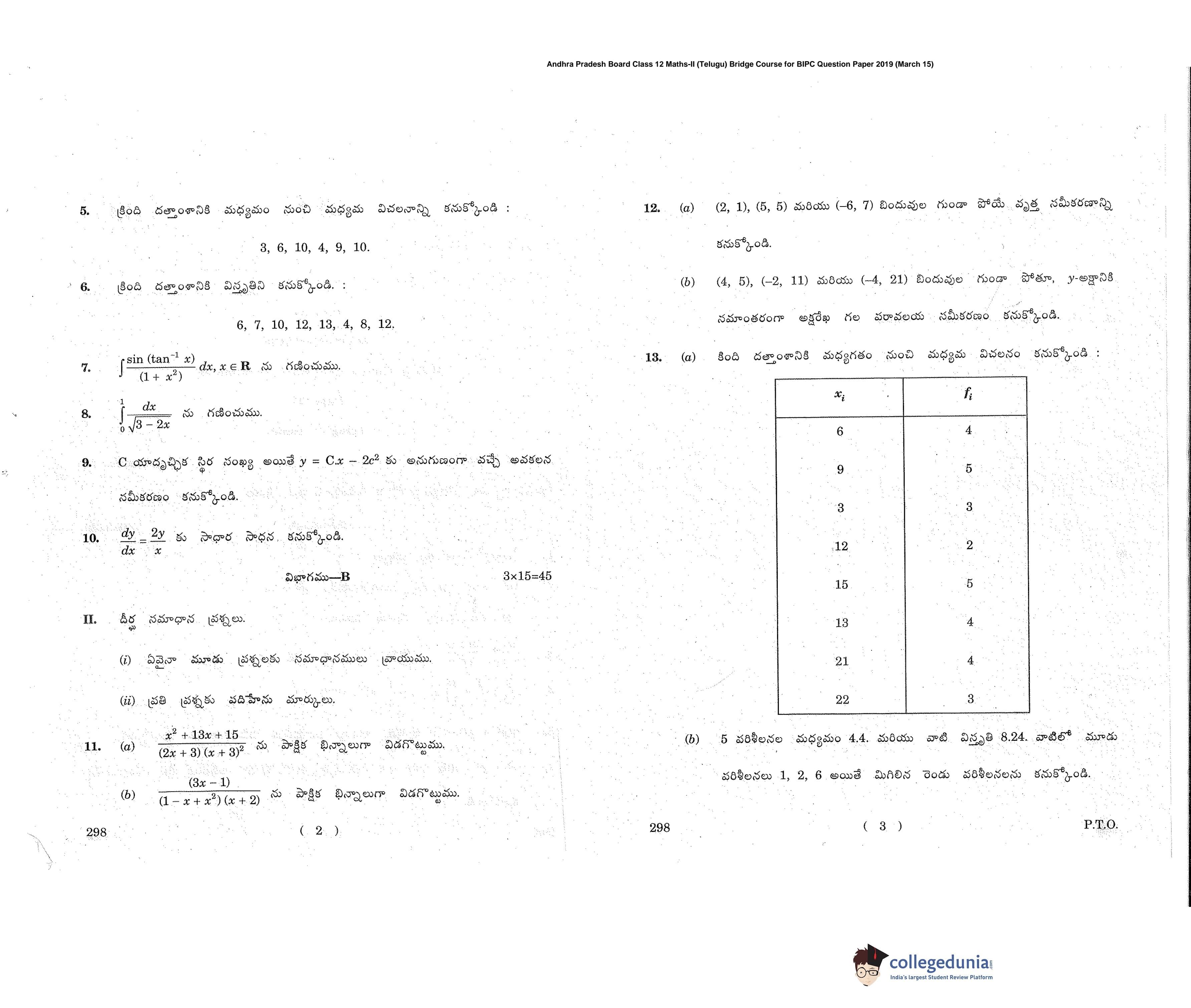 AP Intermediate 2nd year Maths (Telugu) Bridge Course for BIPC Question Paper 2019 with Answer Key 298 is available for download. The exam was conducted by the Andhra Pradesh Board of Intermediate Education (APBIE) on March 15, 2019 in the Morning Session 9 AM to 12 PM. The medium of paper was Telugu.The question paper comprised a total of 15 questions divided among 2 sections.