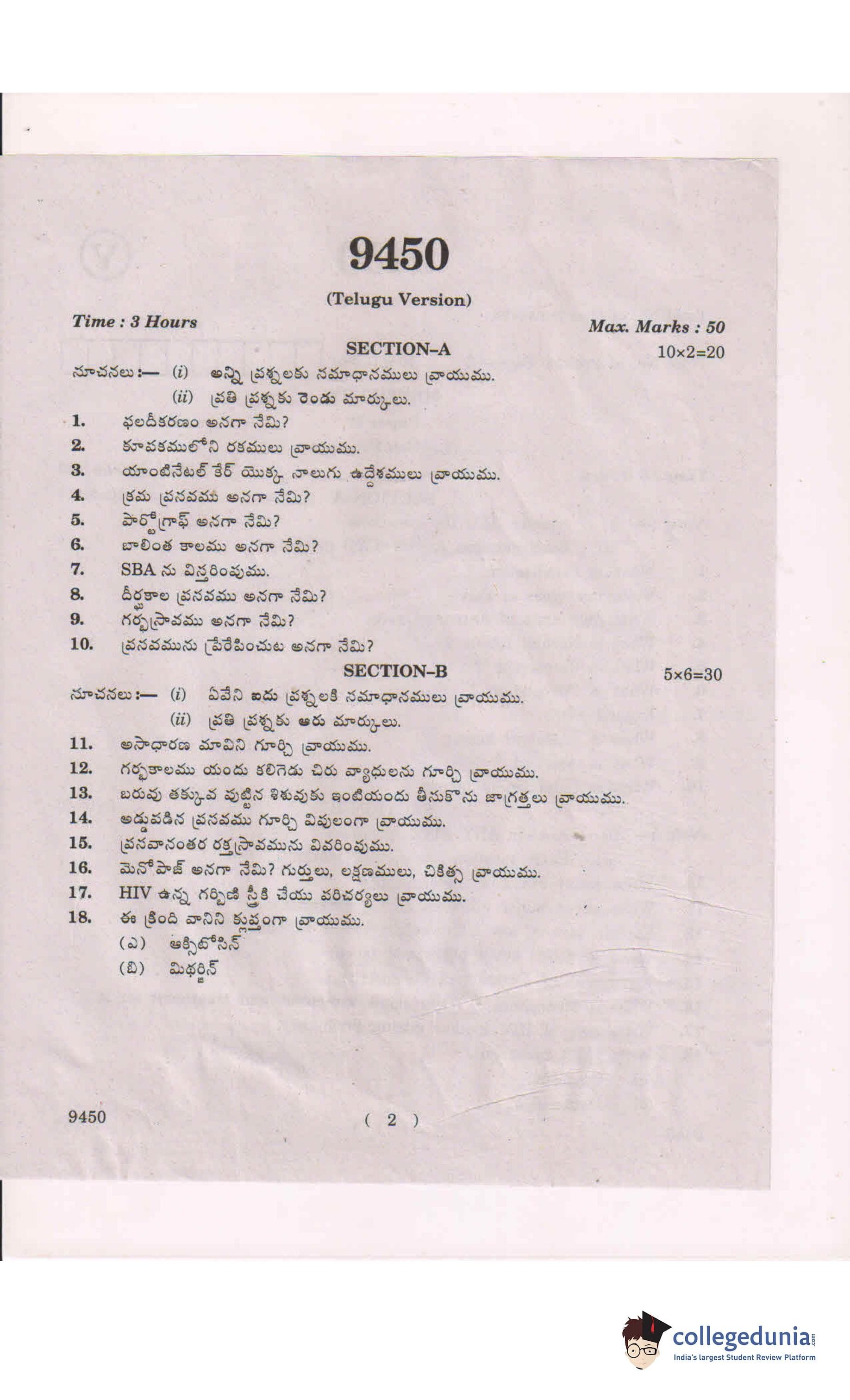 AP Intermediate 2nd year Midwifery Question Paper 2019 with Answer Key