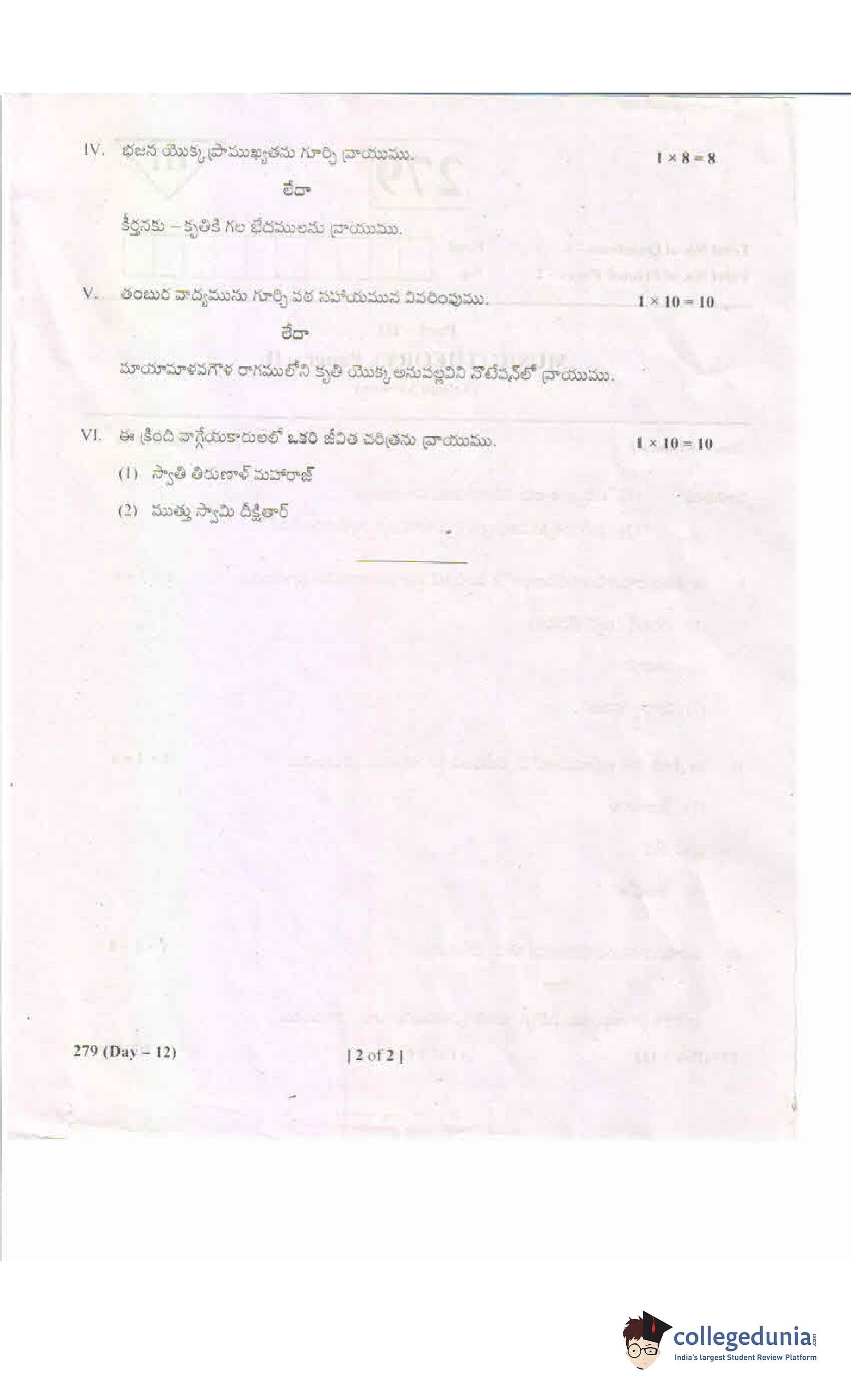 AP Intermediate 2nd year Music (Telugu) 279 Supplementary Question Paper 2019 (May 19)