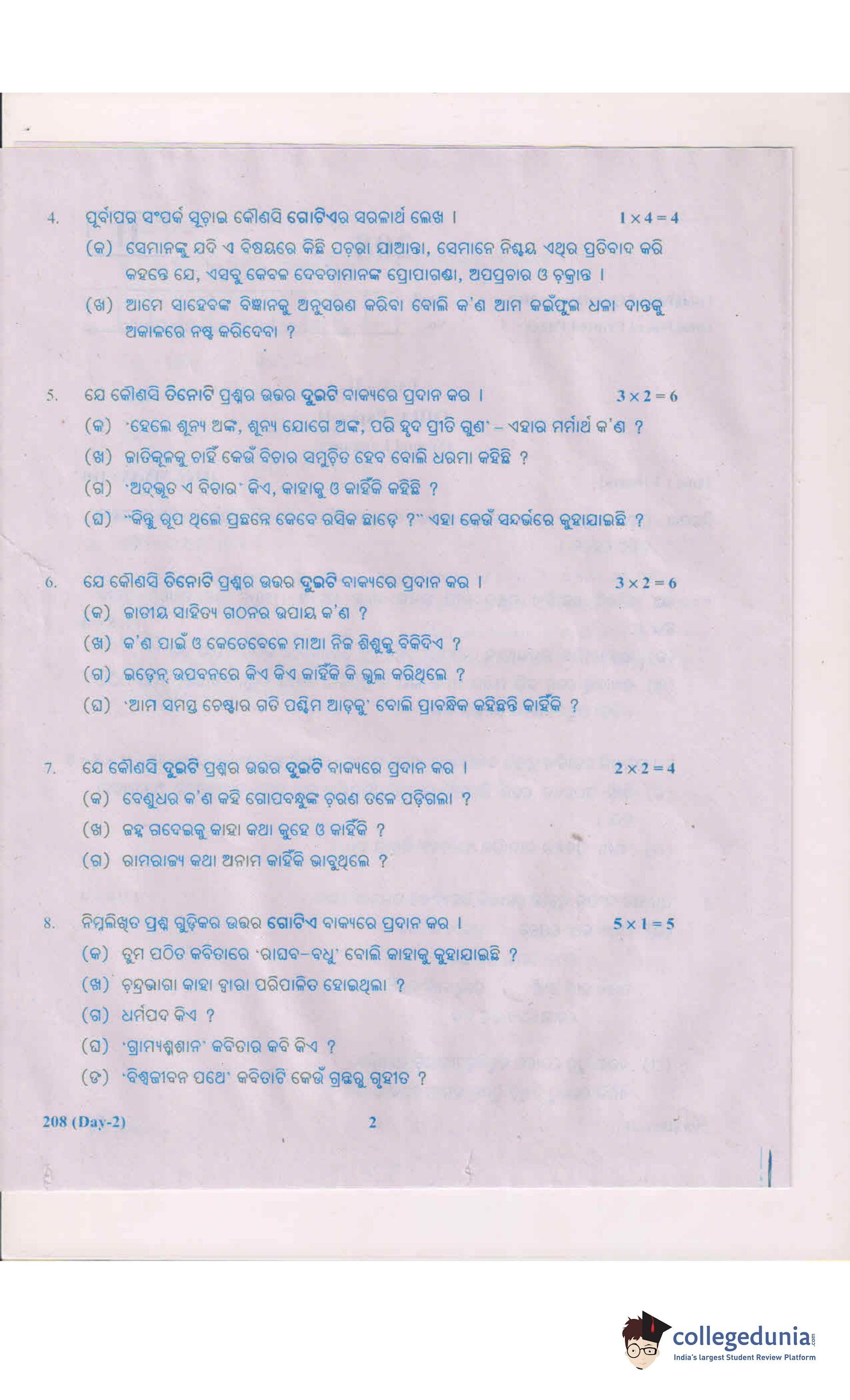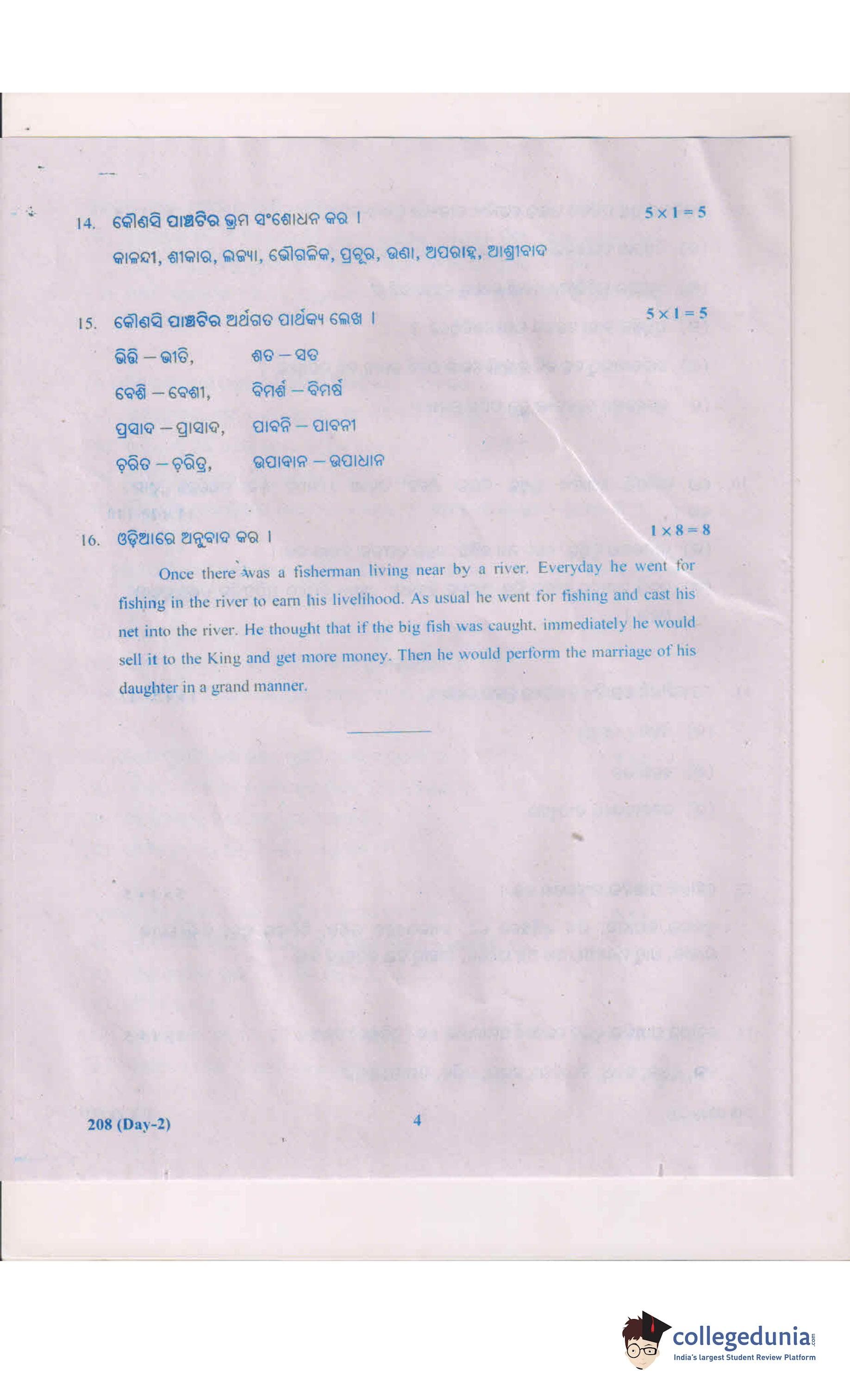 AP Intermediate 2nd year Odiya 208 Question Paper 2019 with Answer Key (February 28)