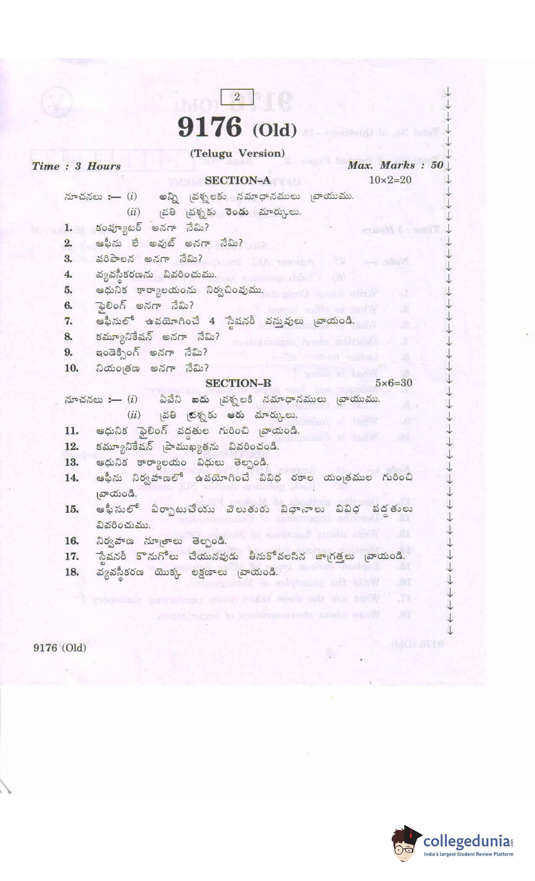 AP Intermediate 2nd year Office Management (Old) Question Paper 2020 with Answer Key (March 16)